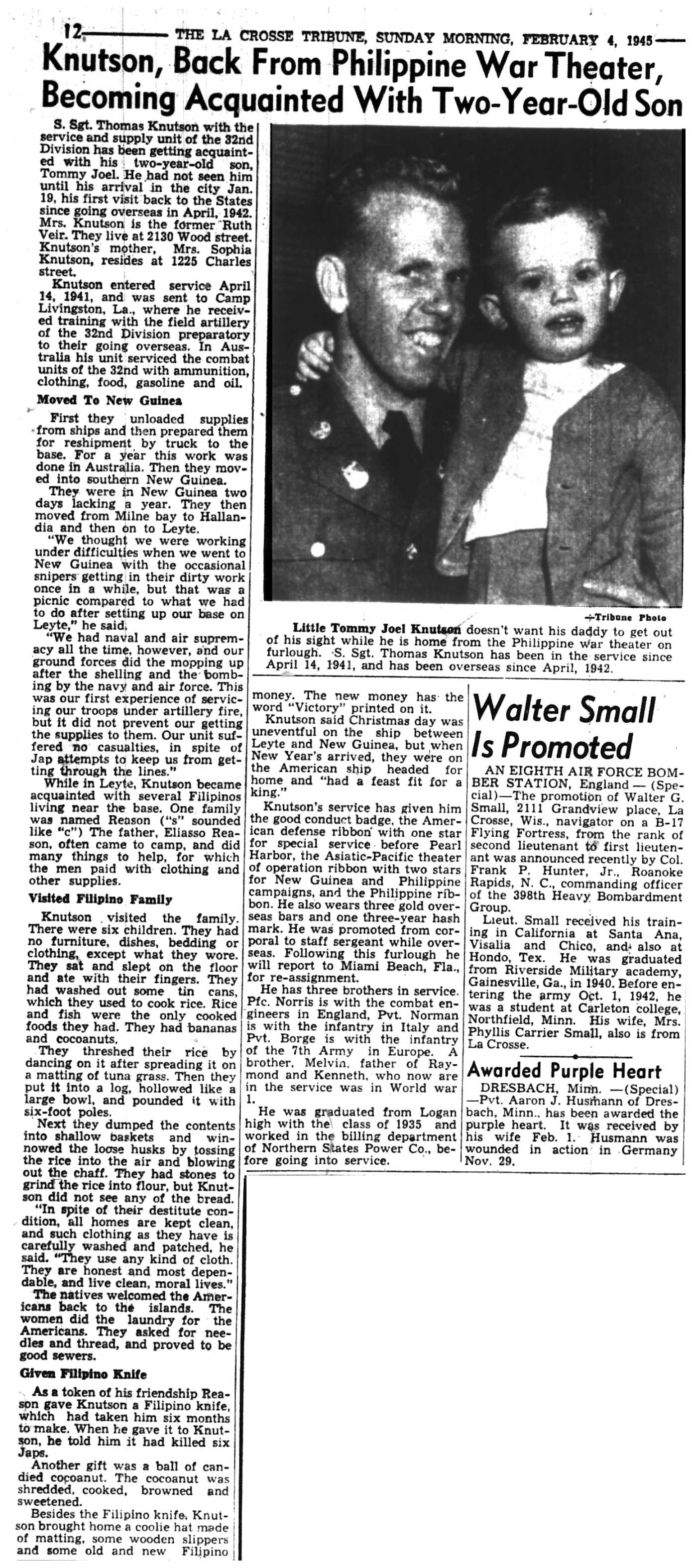 | 1945-2-9 | La Crosse Tribune p7 | |