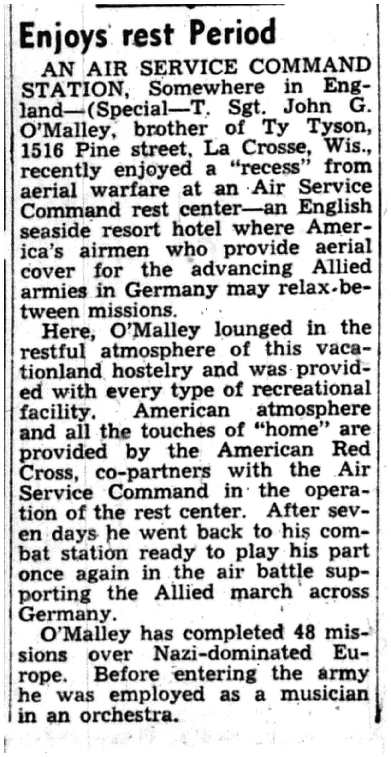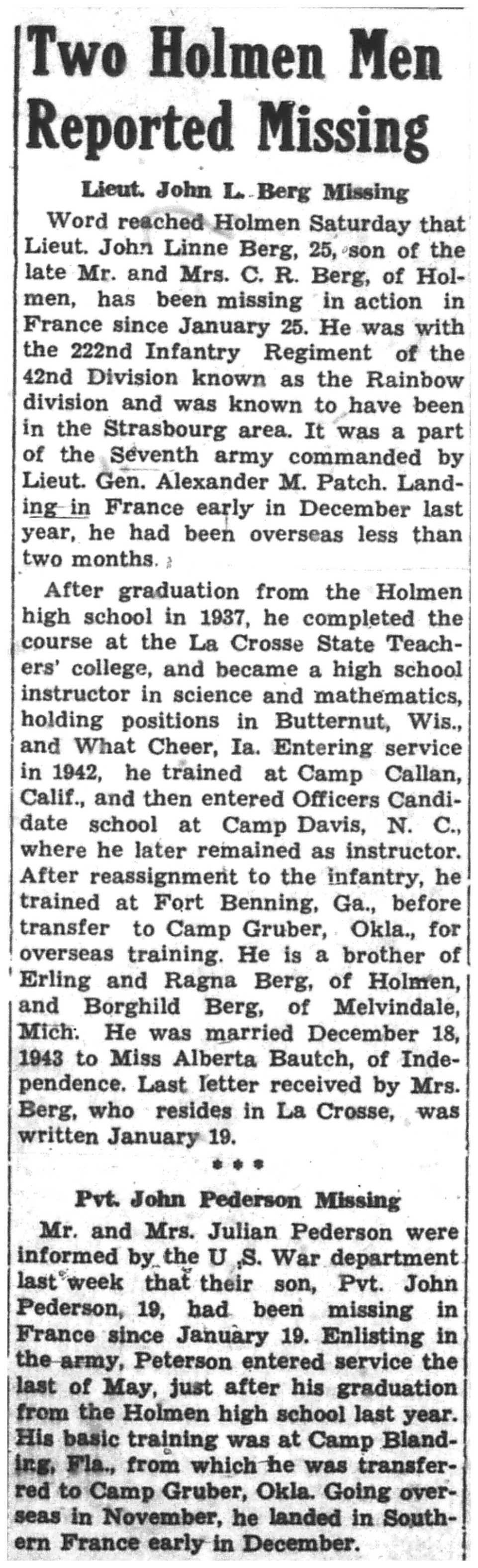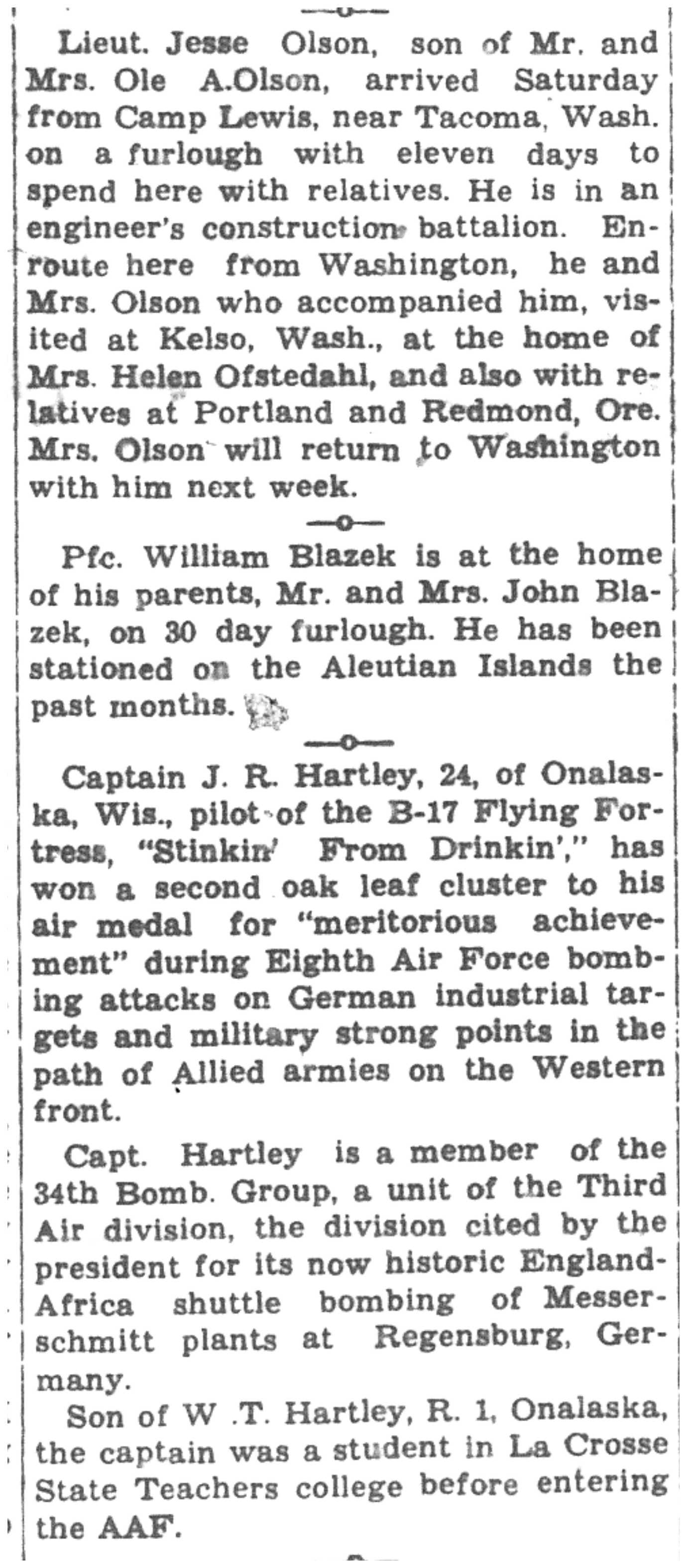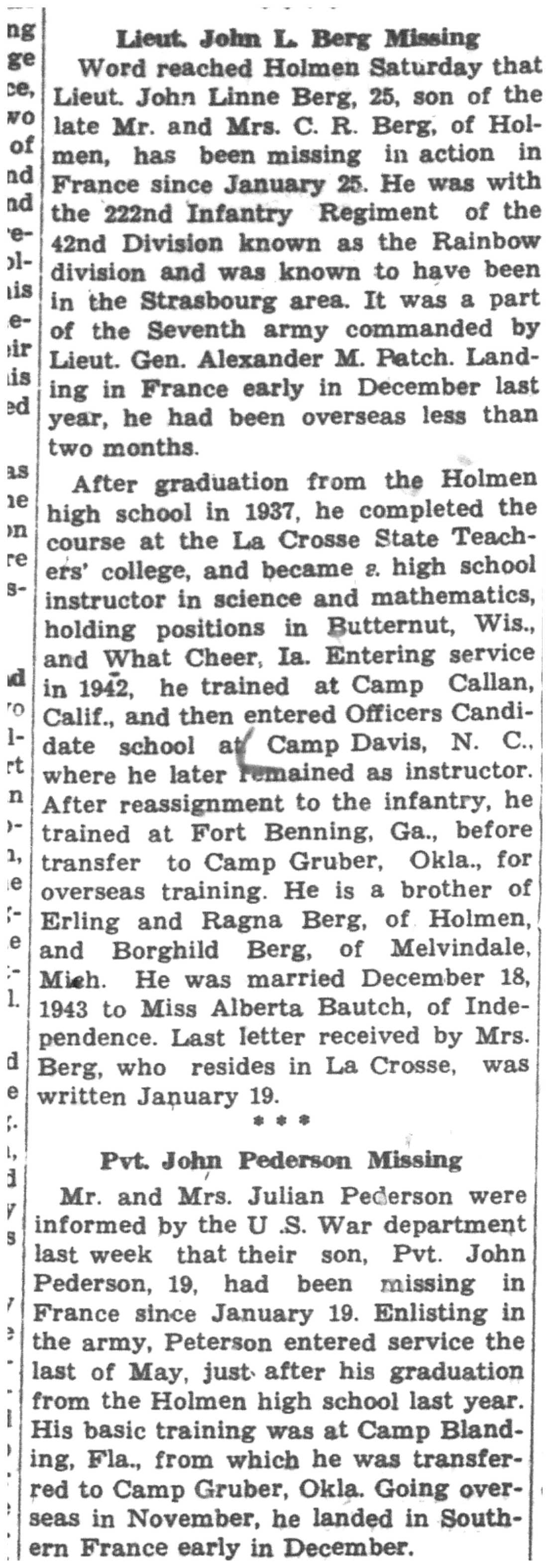 | 1945-2-2 | La Crosse Tribune p5 | |
