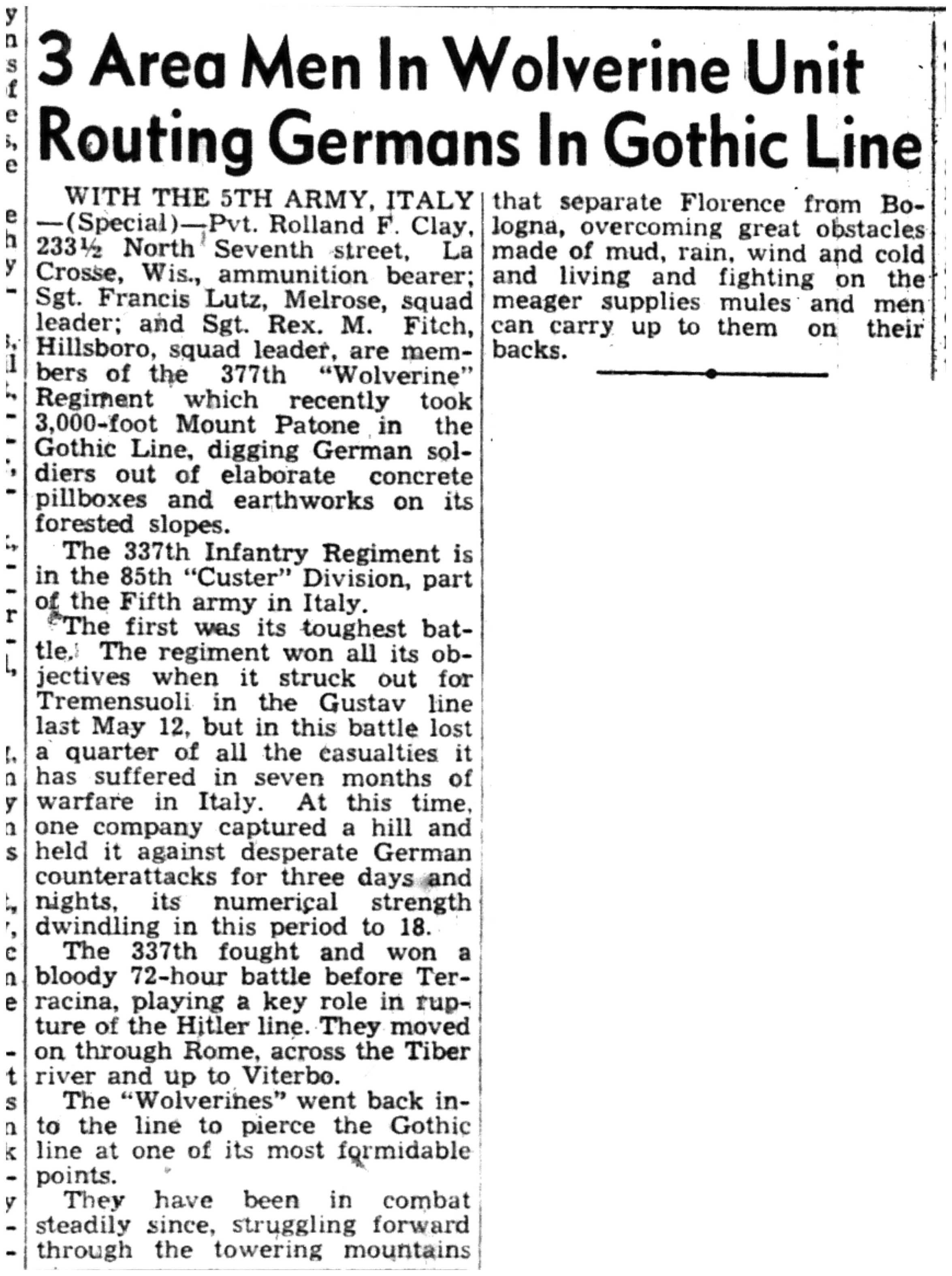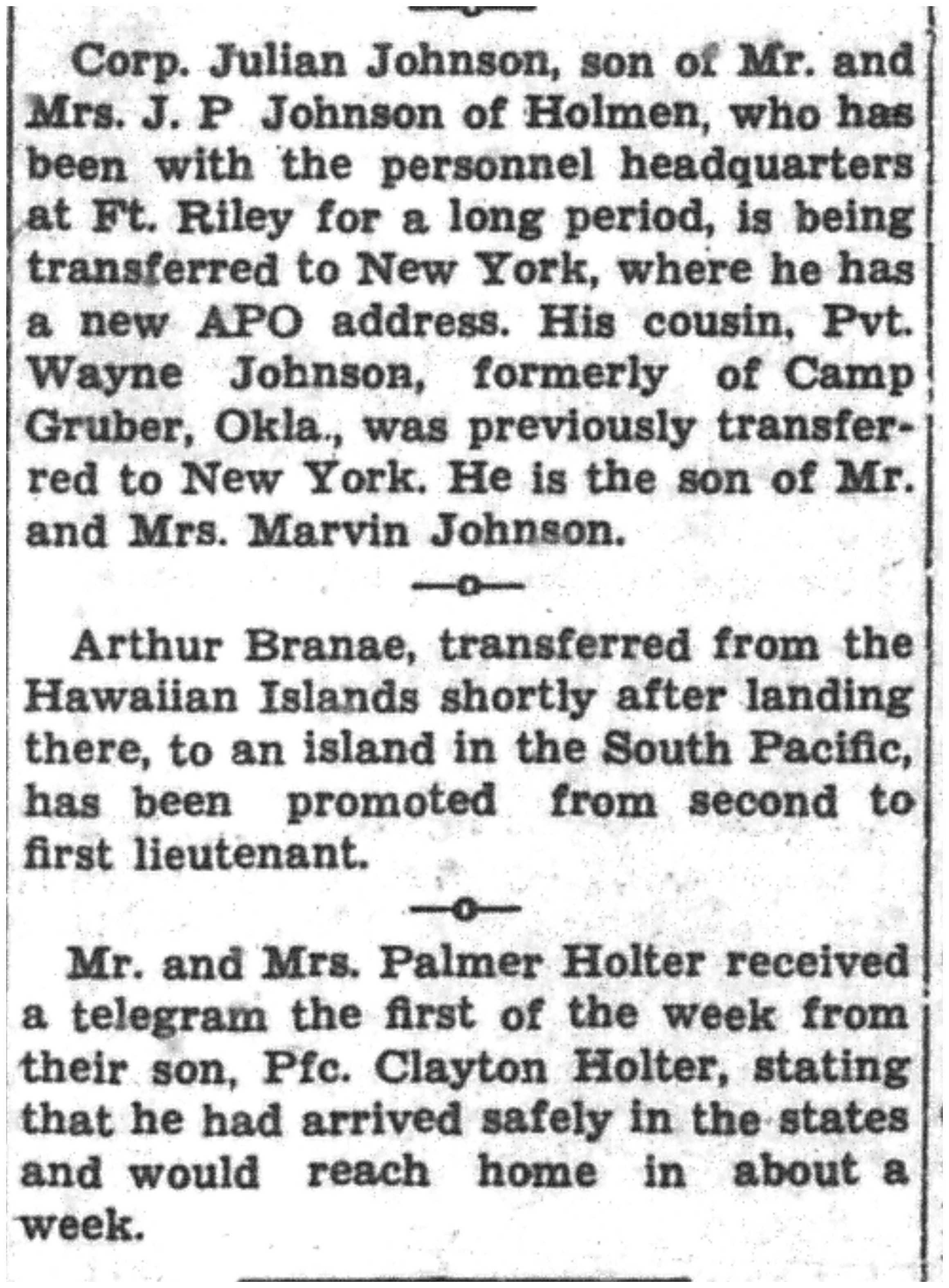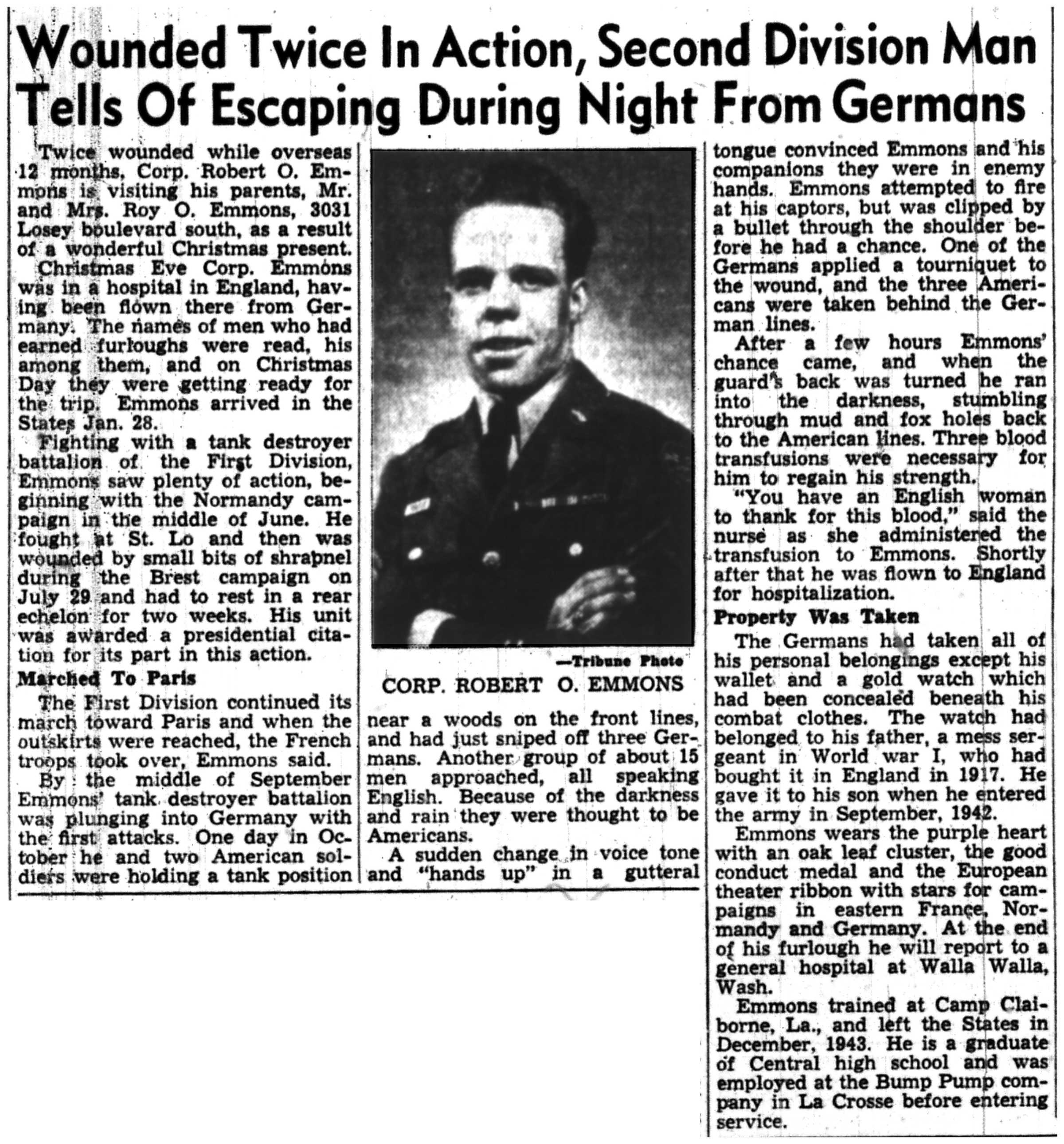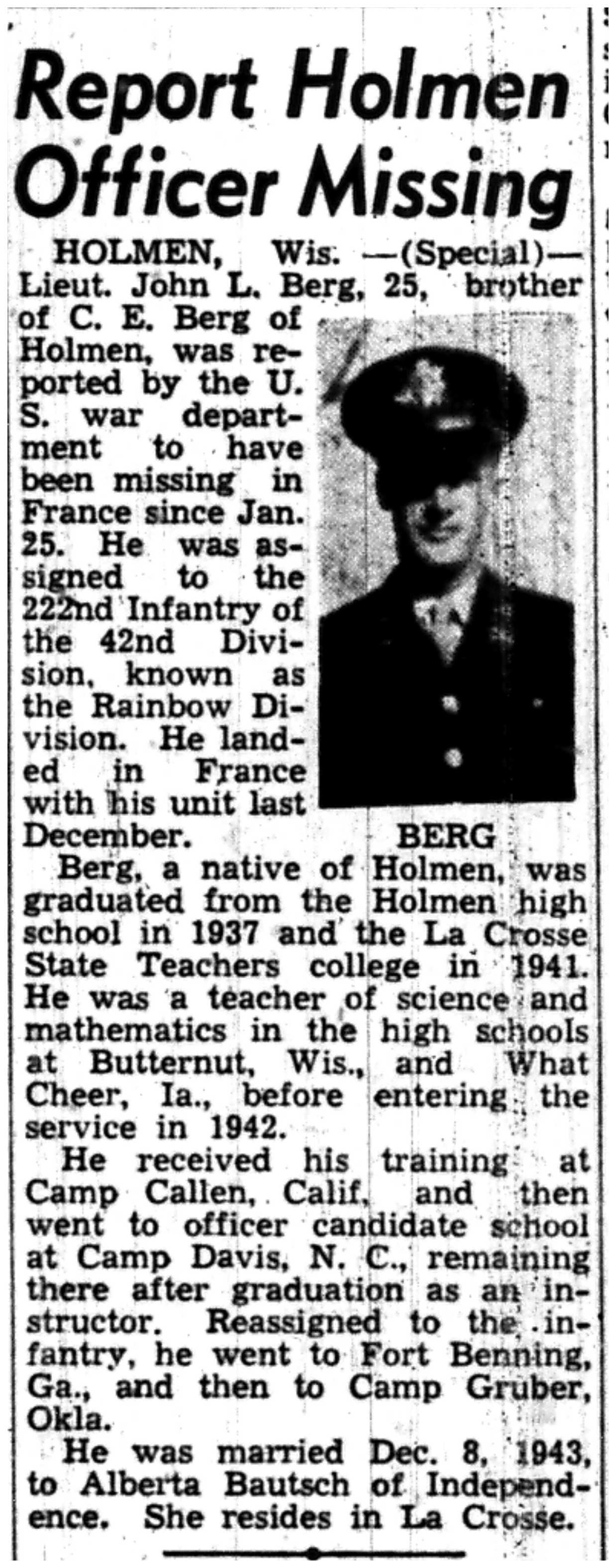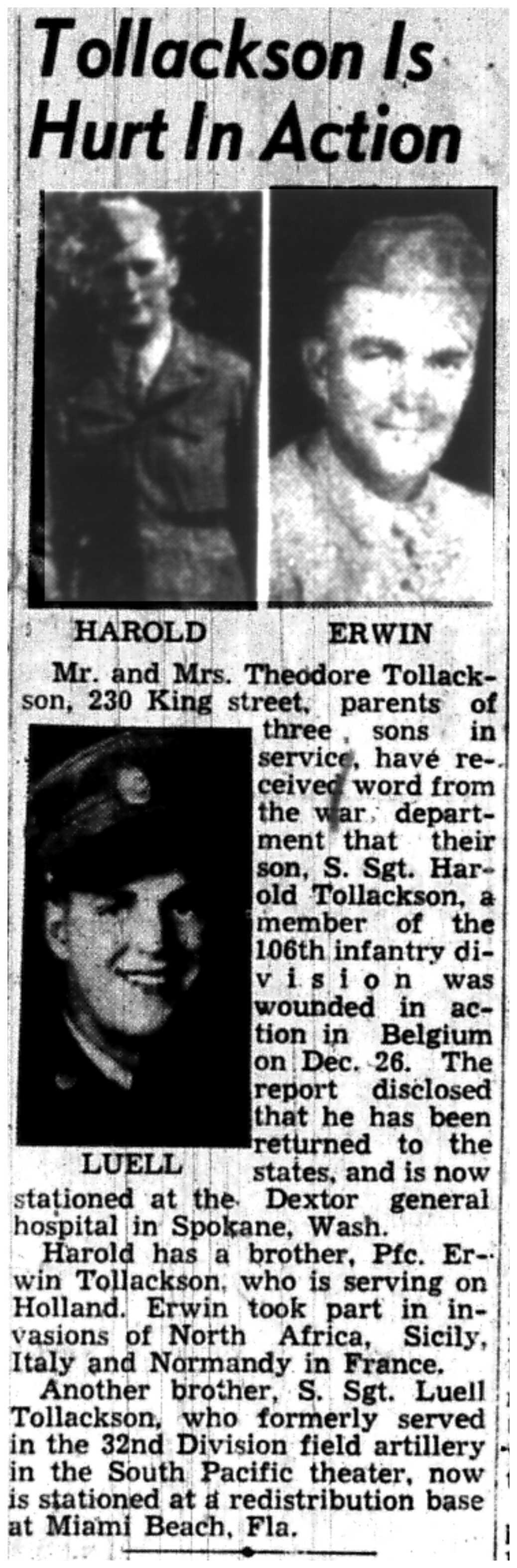 | 1945-2-2 | La Crosse Tribune p5 | |