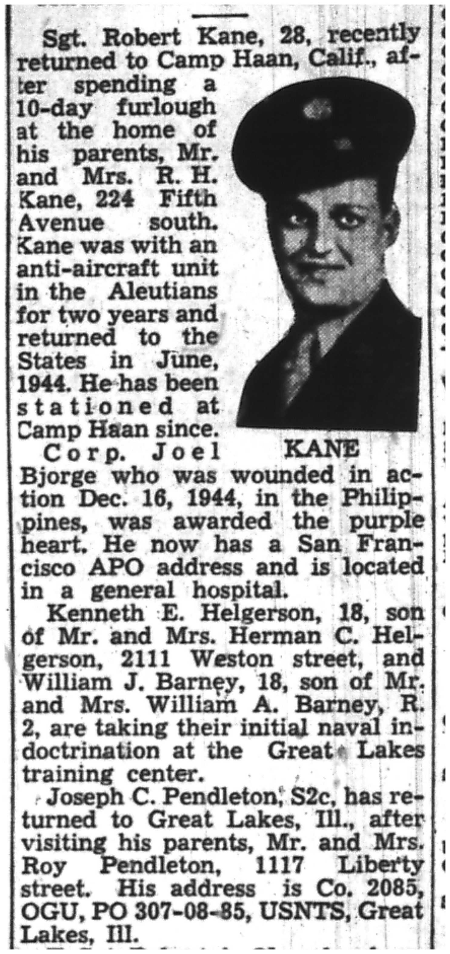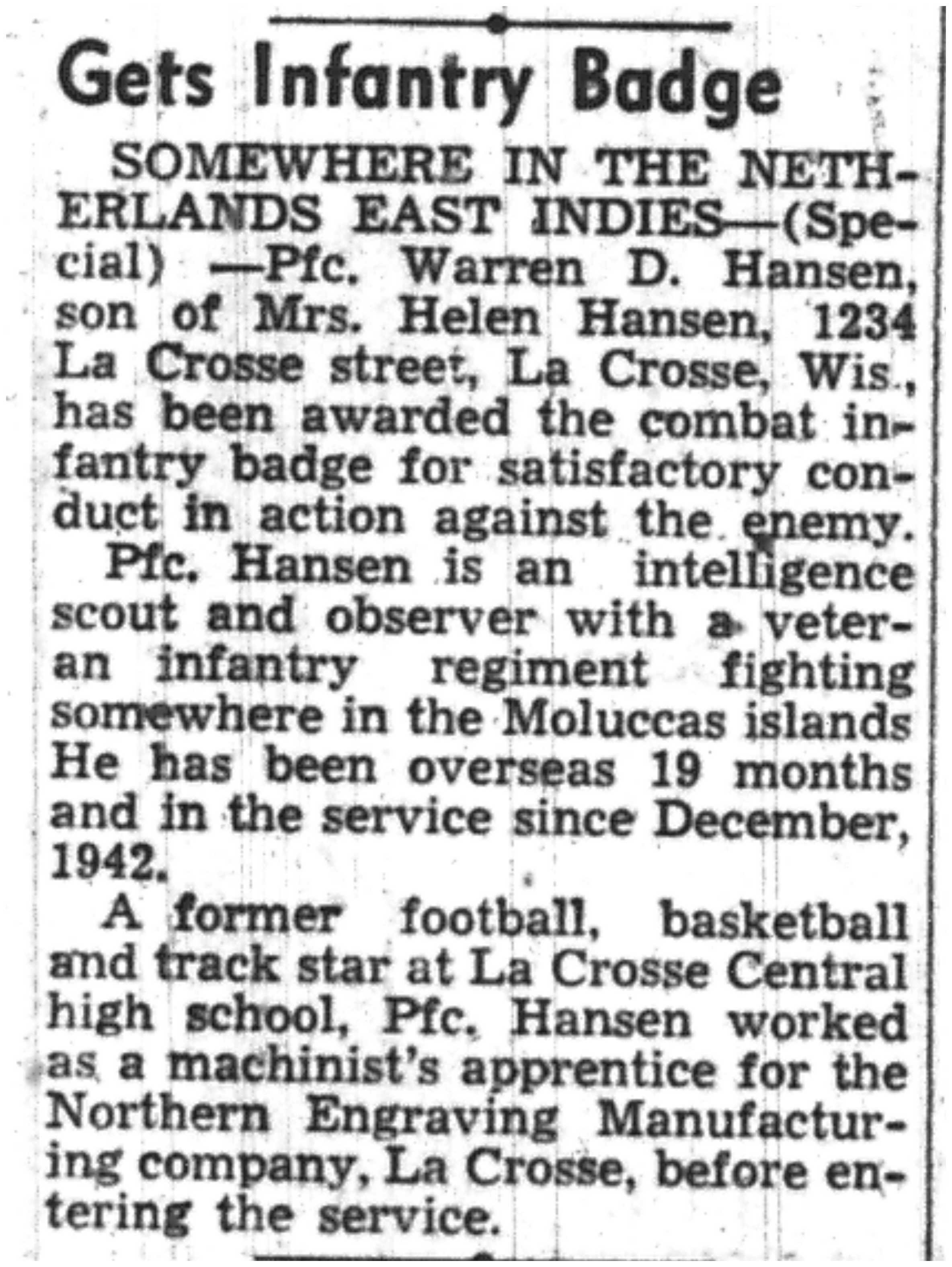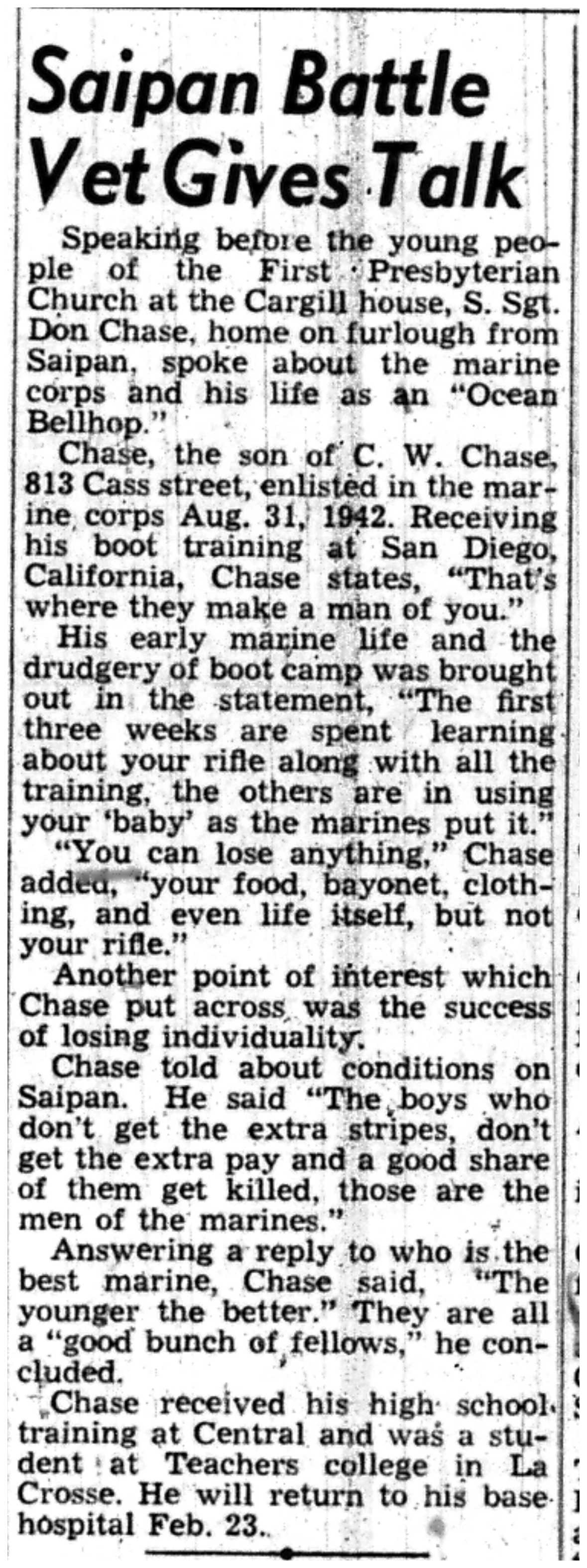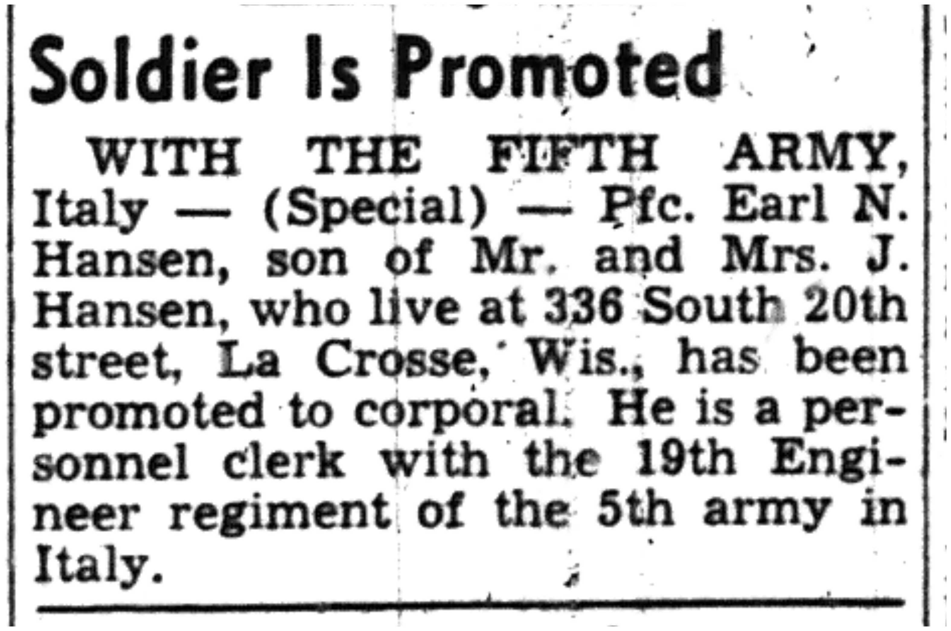 | 1945-2-4 | La Crosse Tribune p12 | |