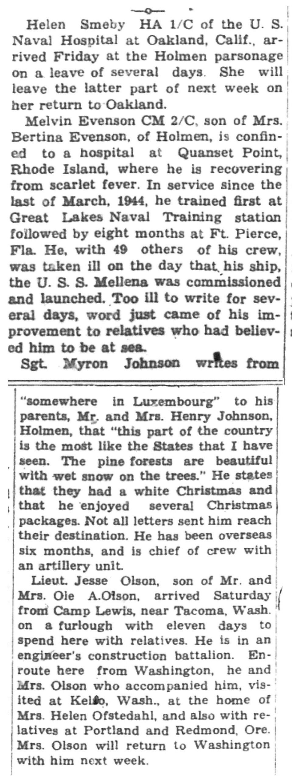 | 1945-2-7 | La Crosse Tribune p5 | |