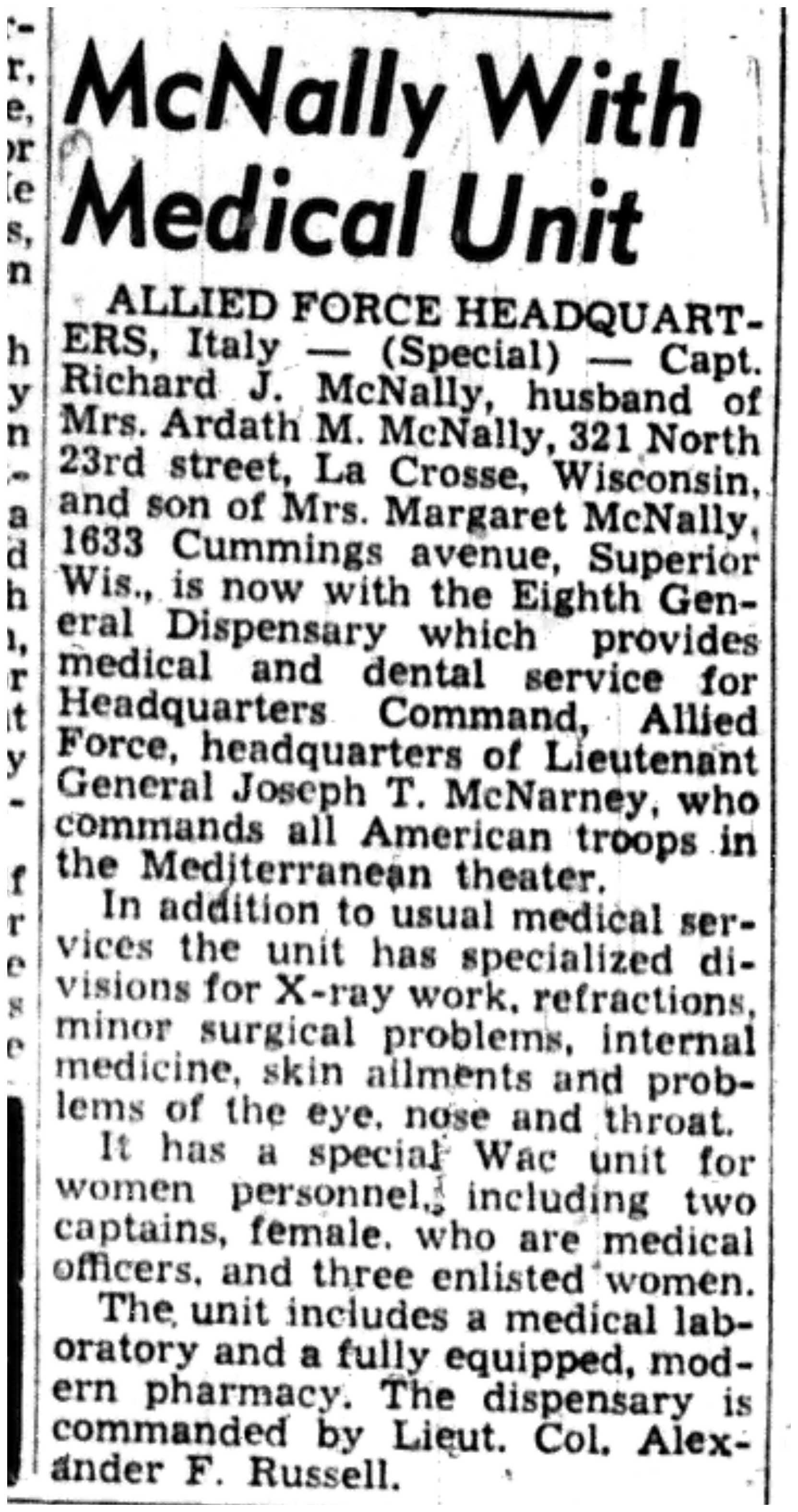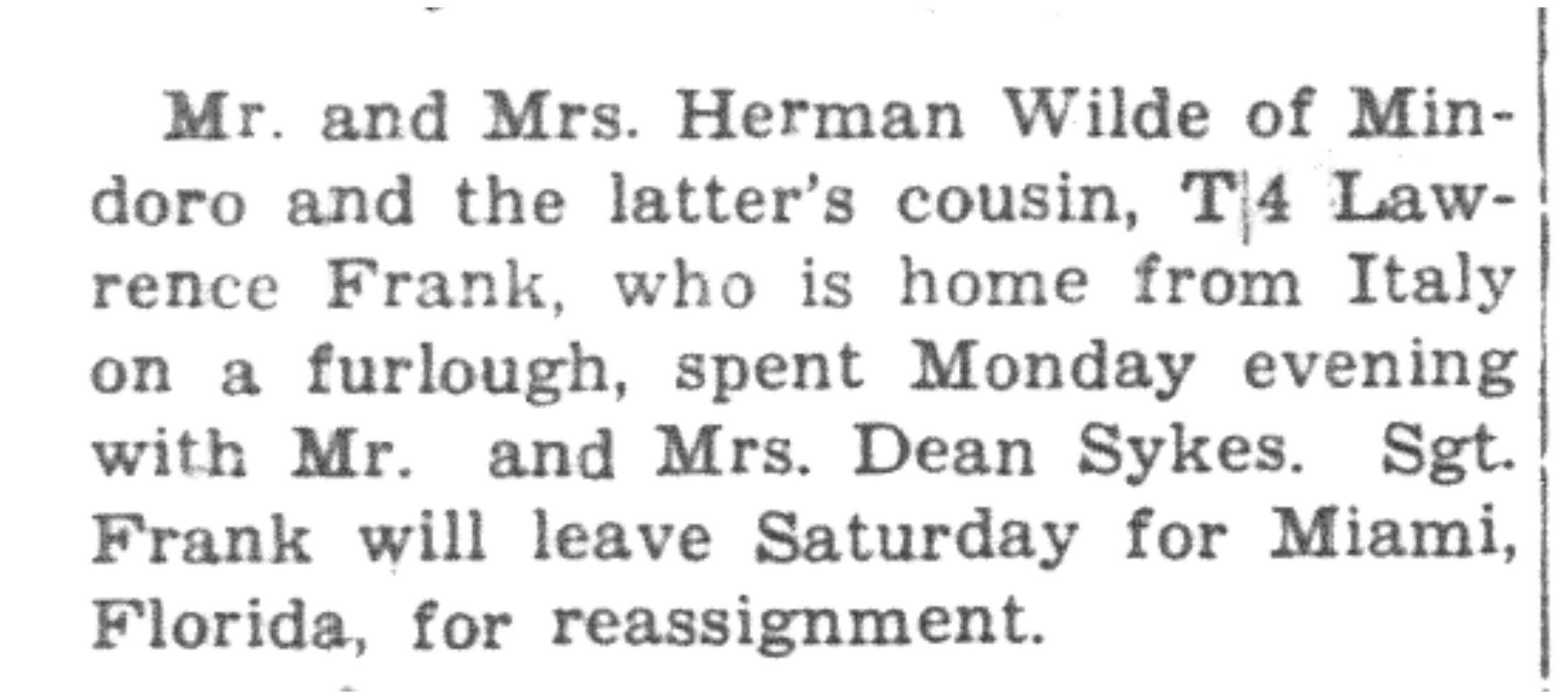 | 1945-2-7 | La Crosse Tribune p10 | |