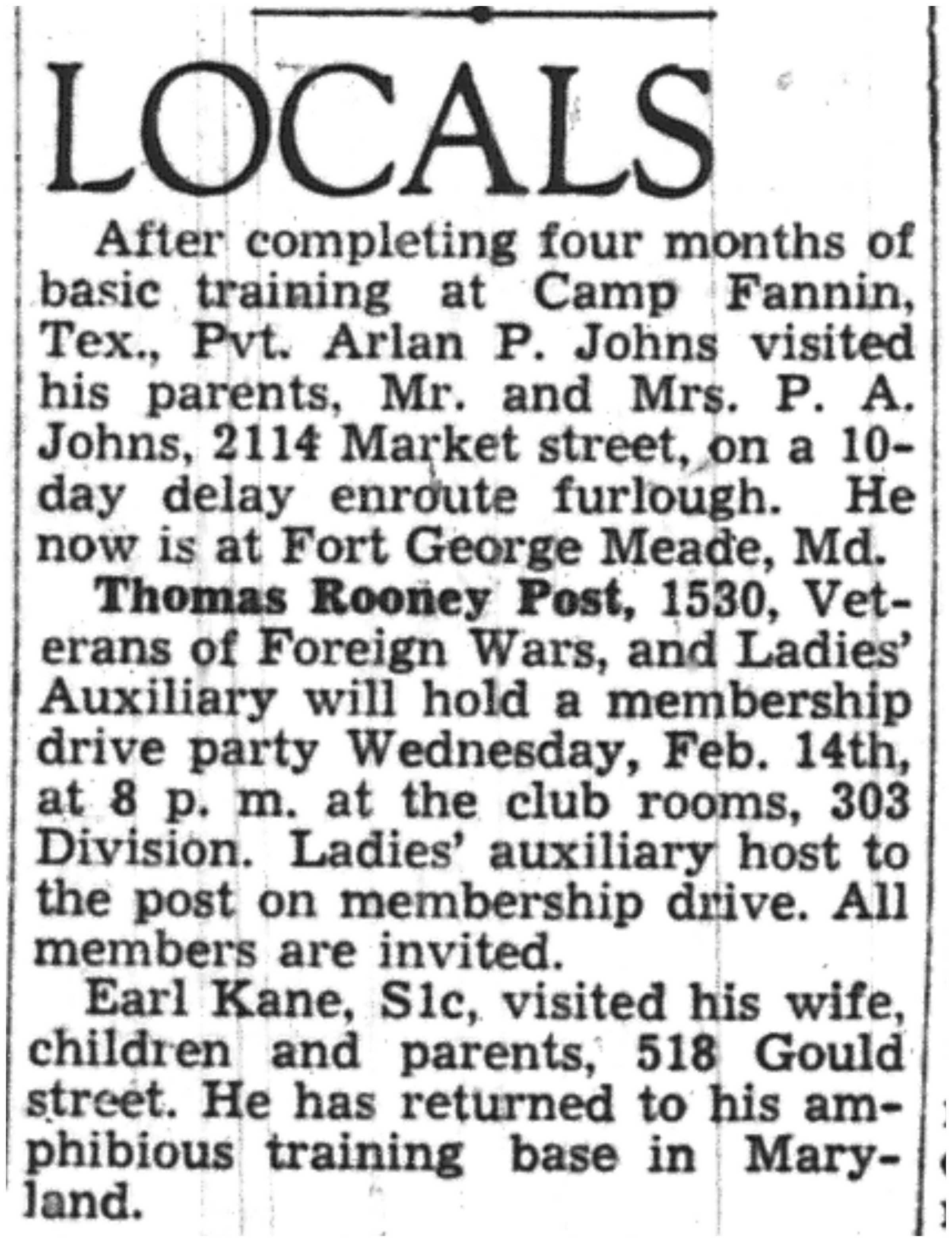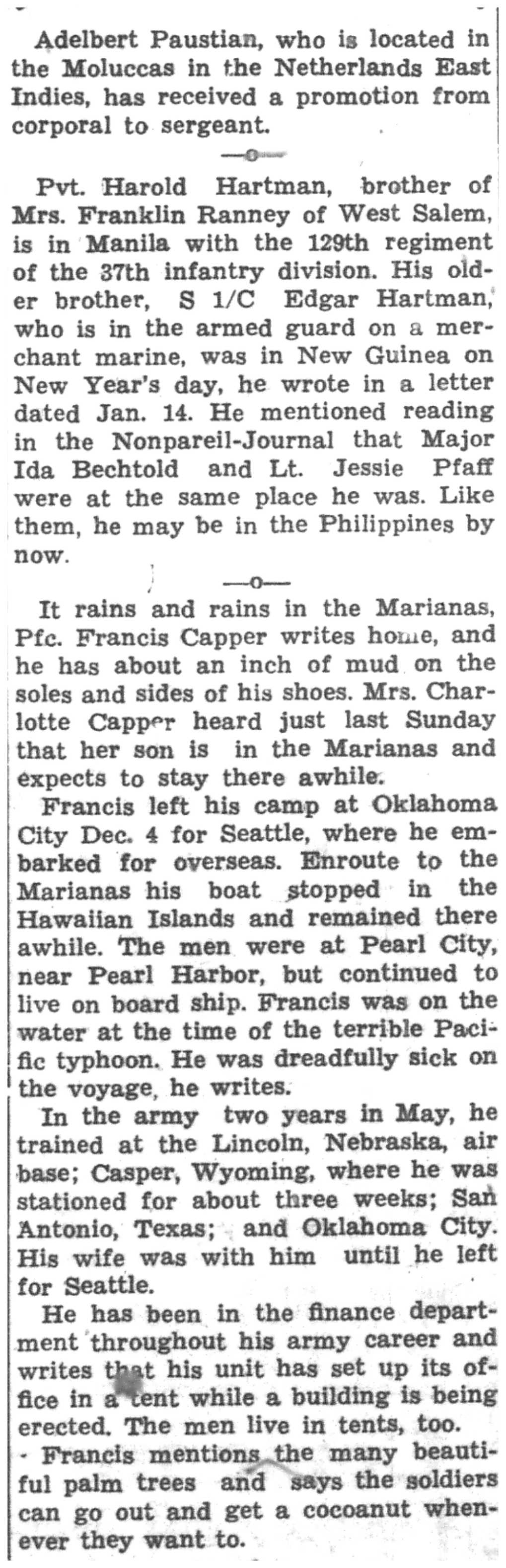 | 1945-2-22 | Non-Pareil Journal p4 | |