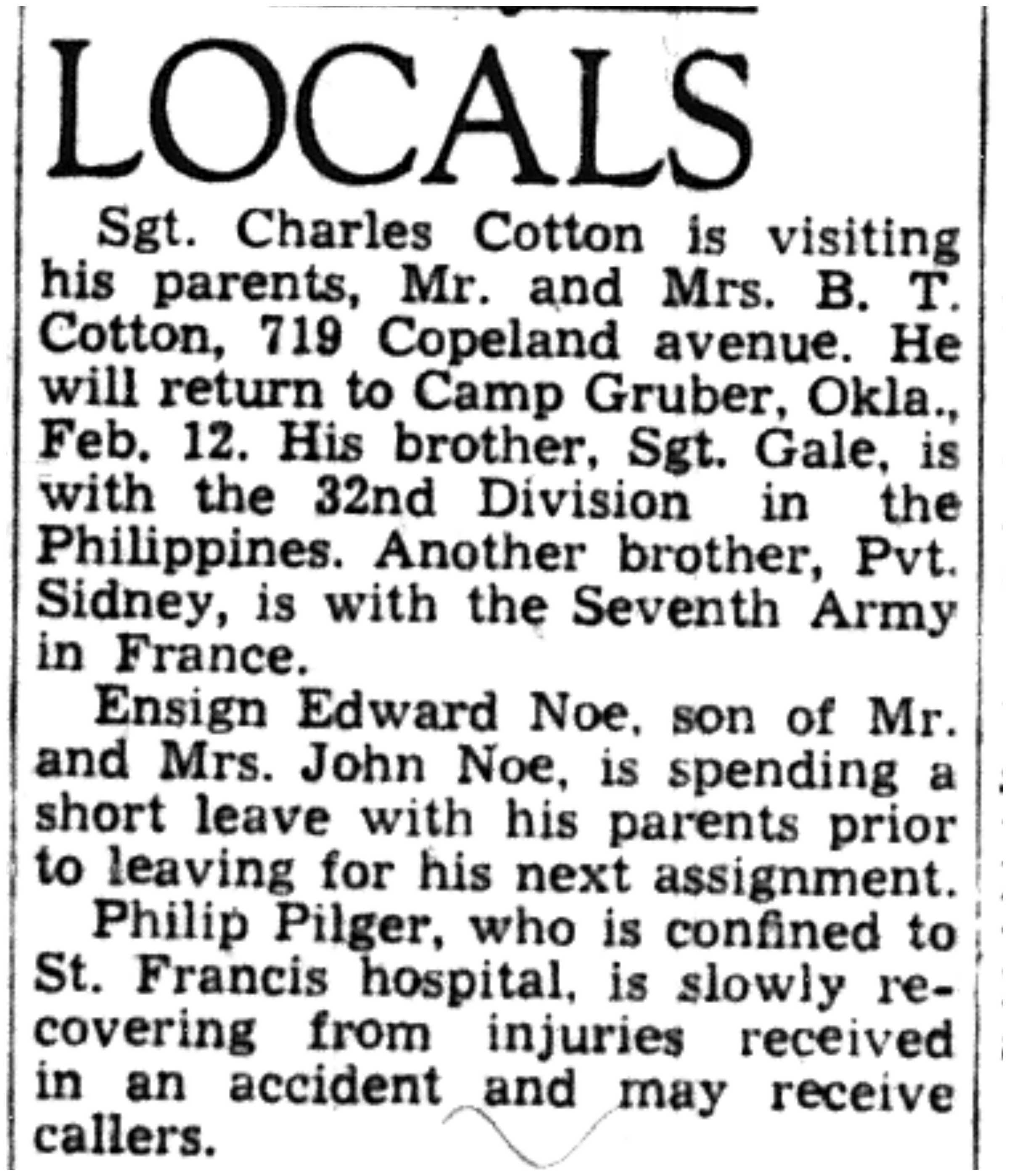 | 1945-2-1 | Non-Pareil Journal p5 | |