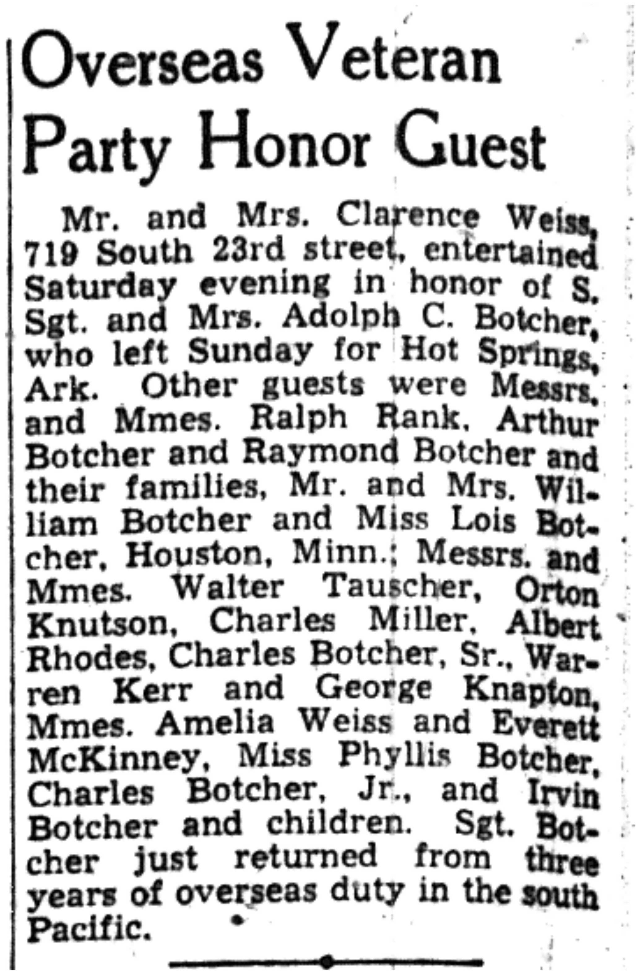 | 1945-2-22 | Non-Pareil Journal p8 | |