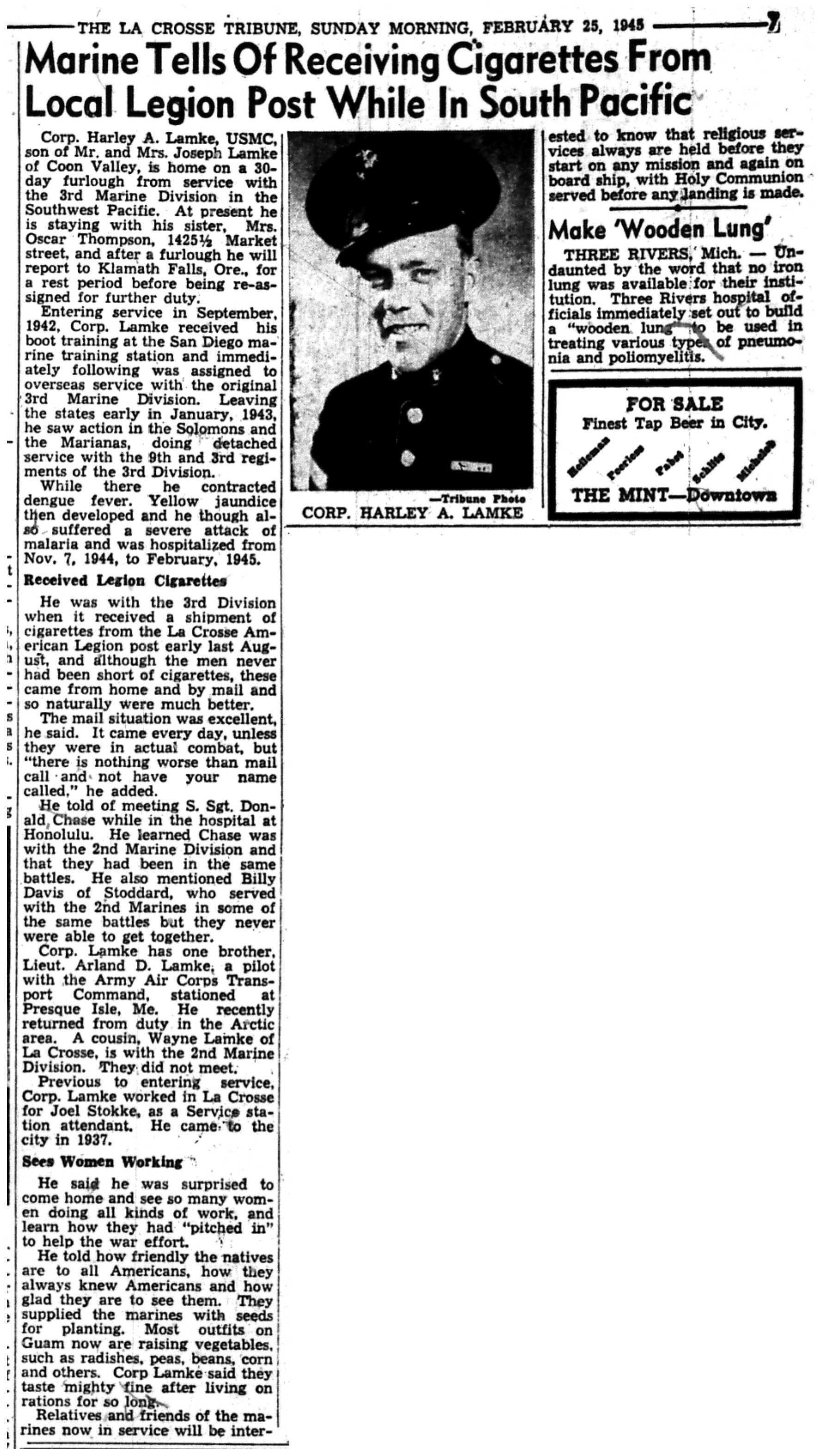 | 1945-2-25 | La Crosse Tribune p3 | |