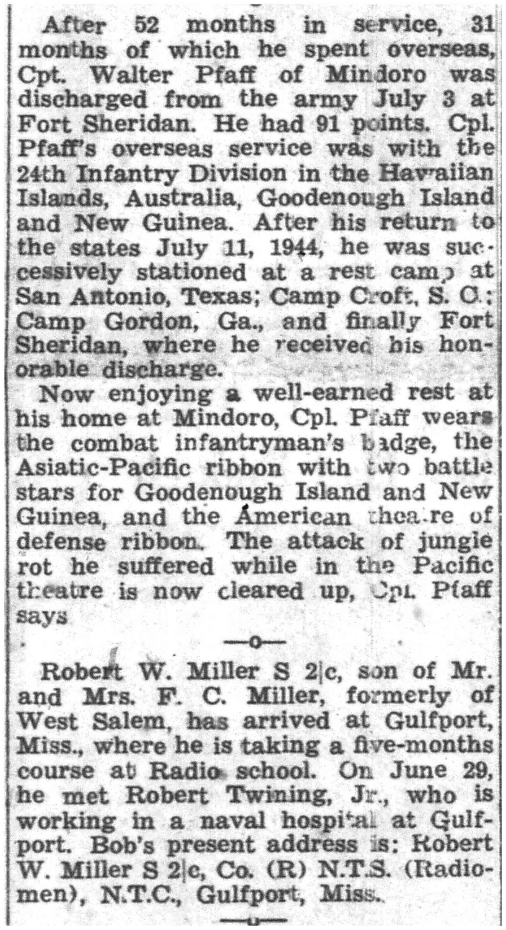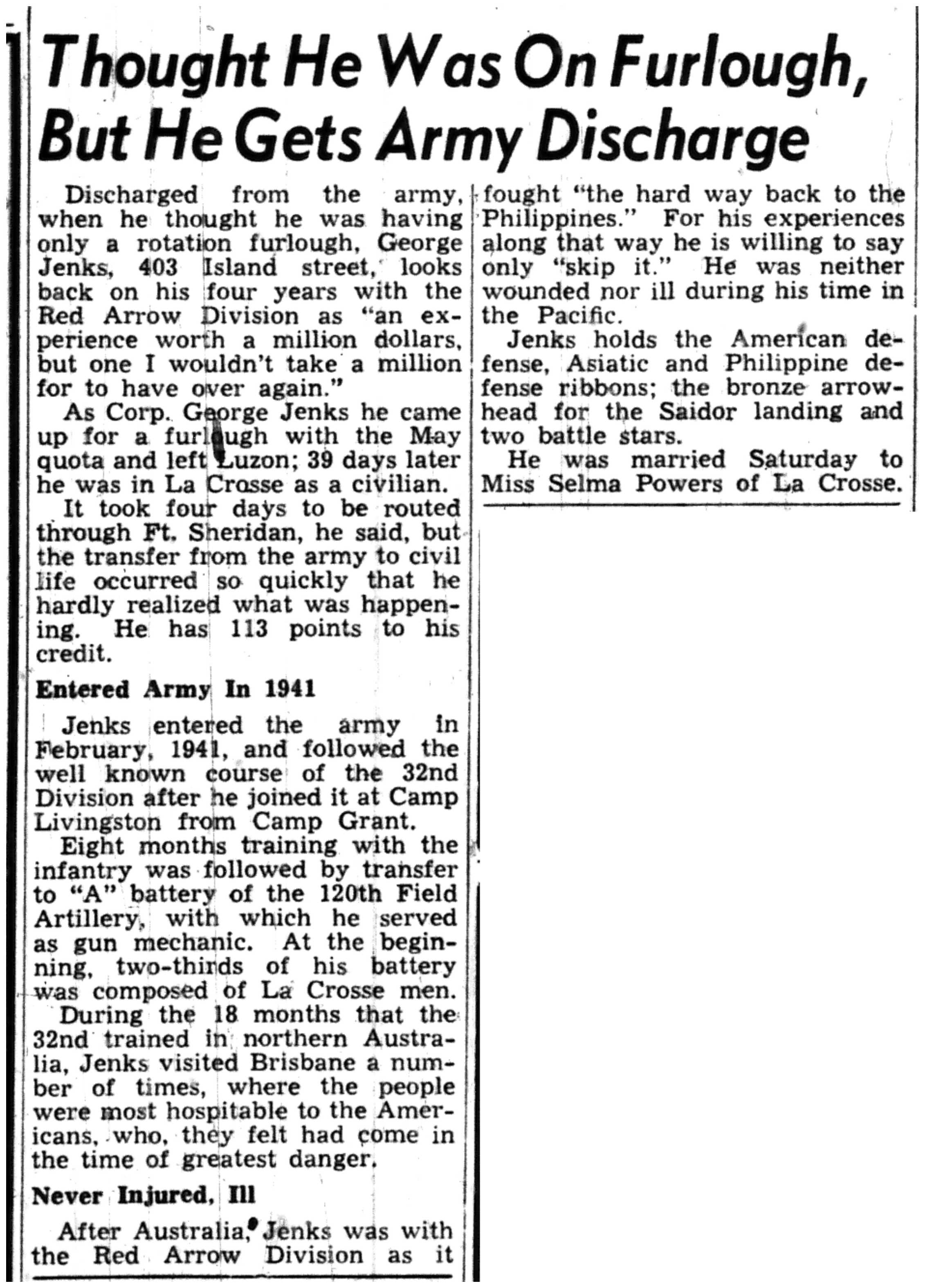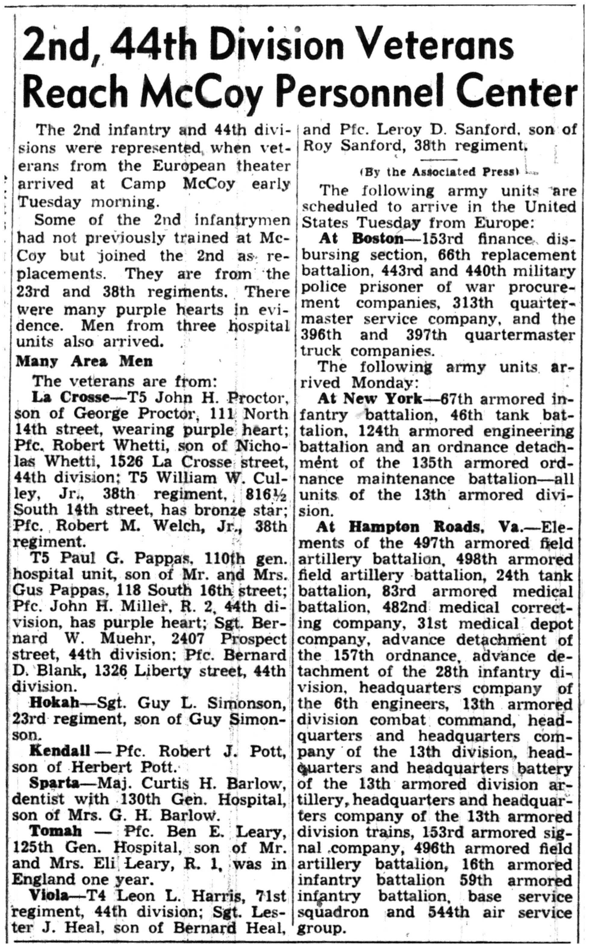 | 1945-7-1 | La Crosse Tribune p4 | |