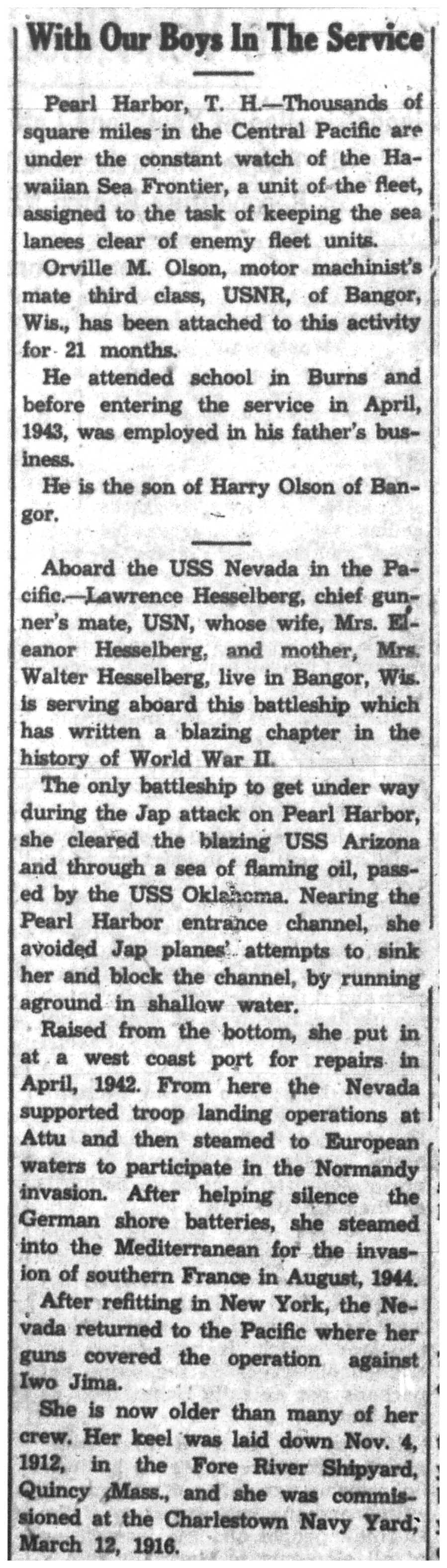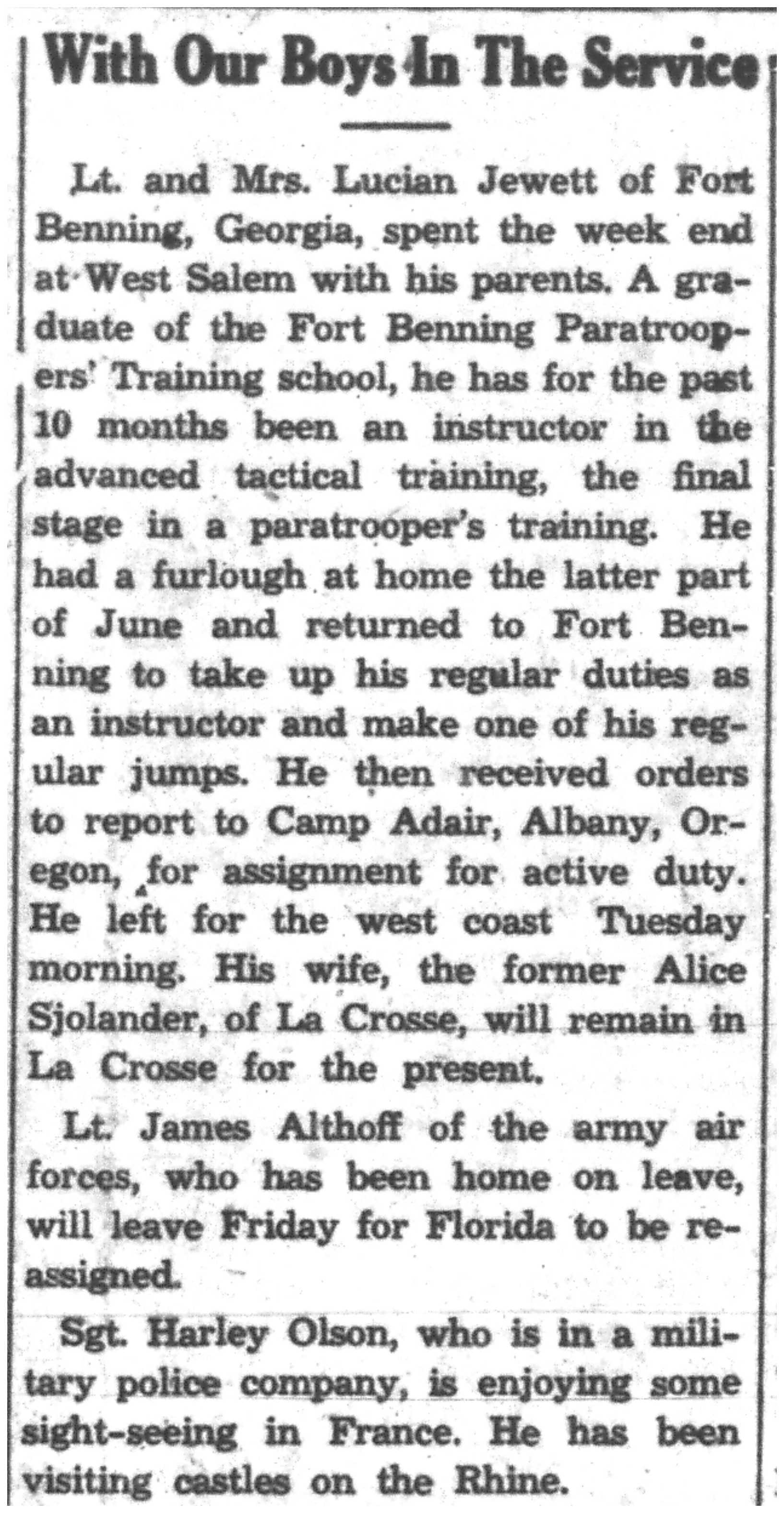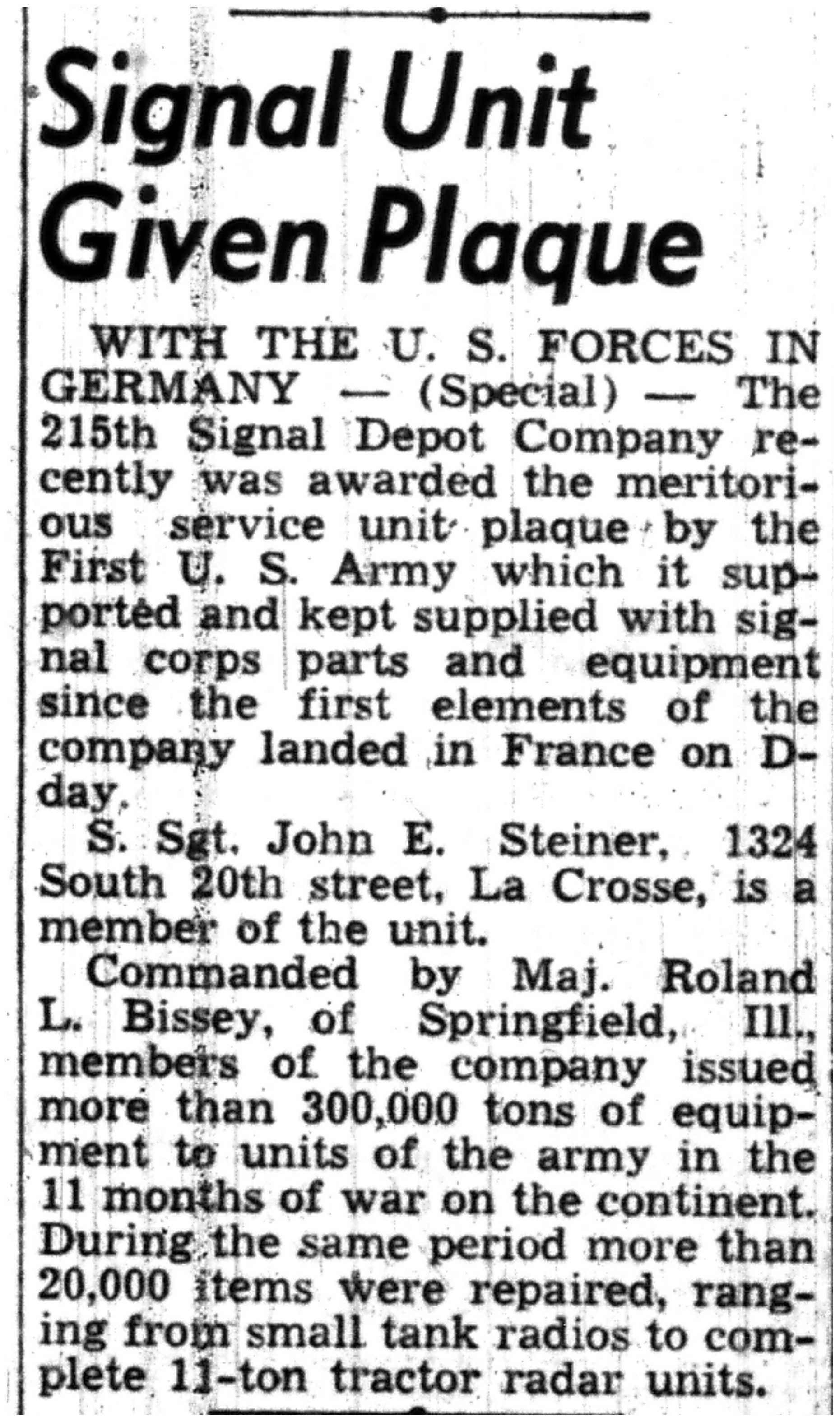 | 1945-7-1 | La Crosse Tribune p4 | |