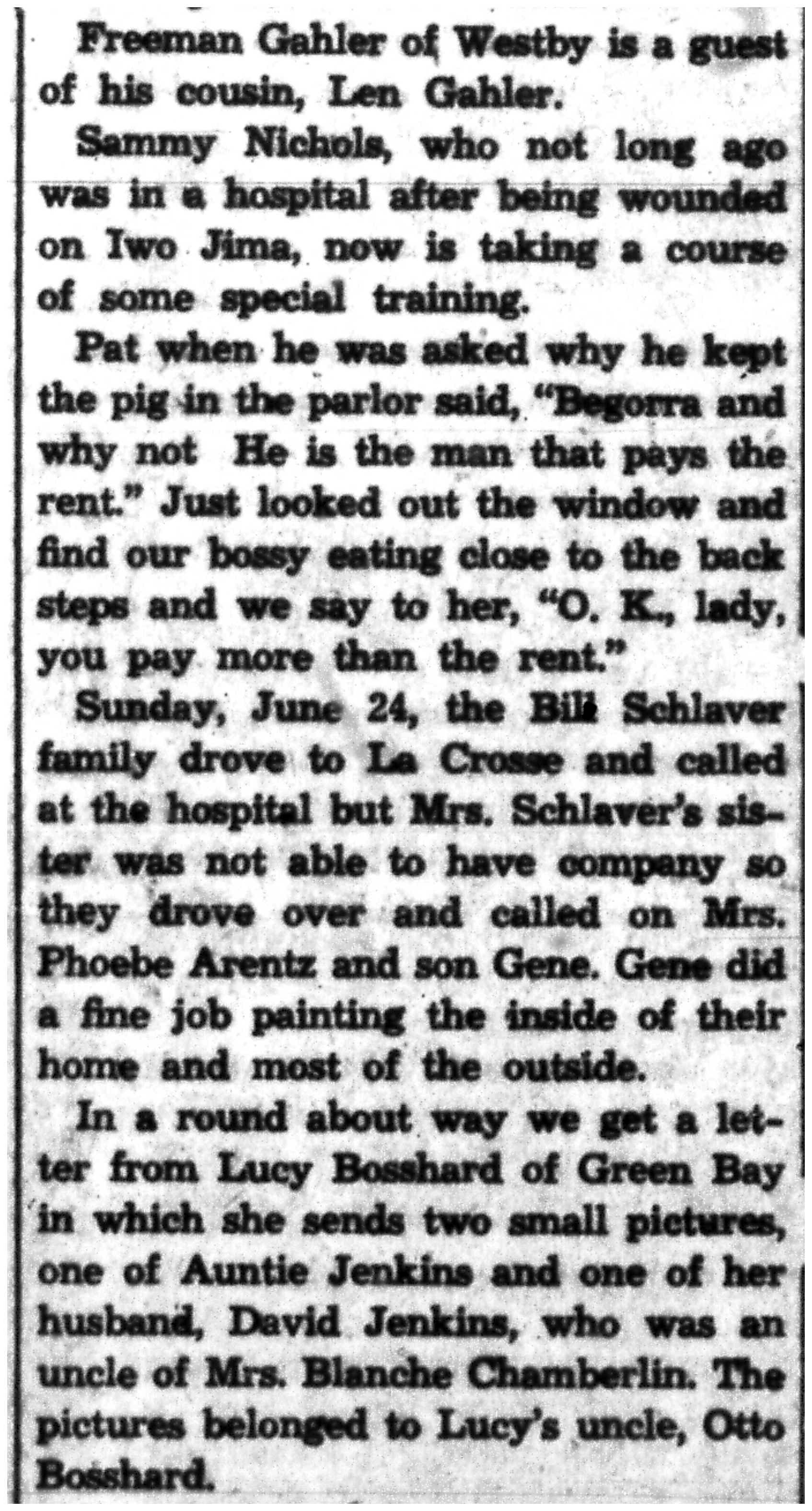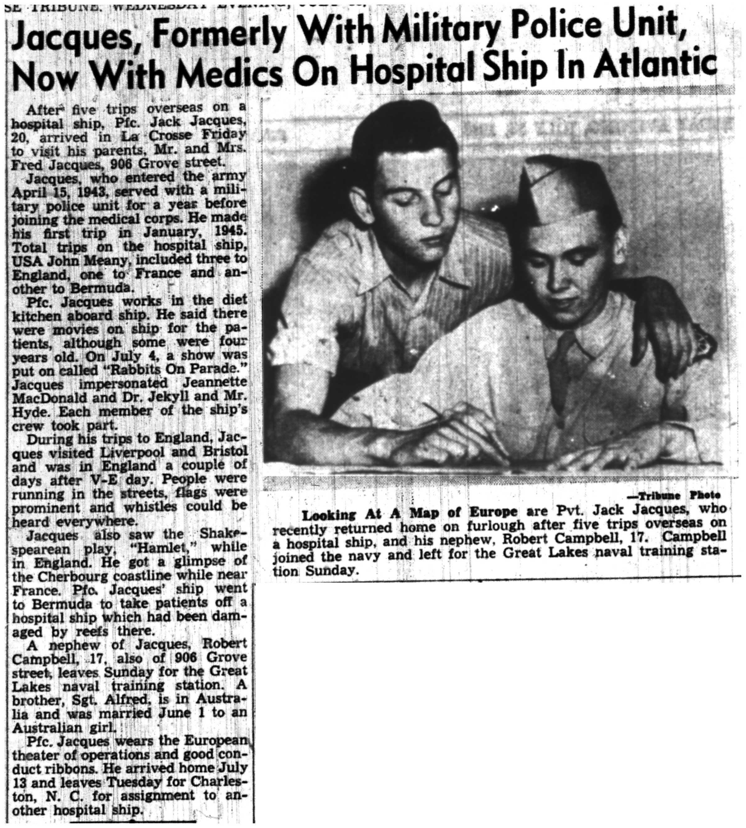 | 1945-7-9 | La Crosse Tribune p5 | |