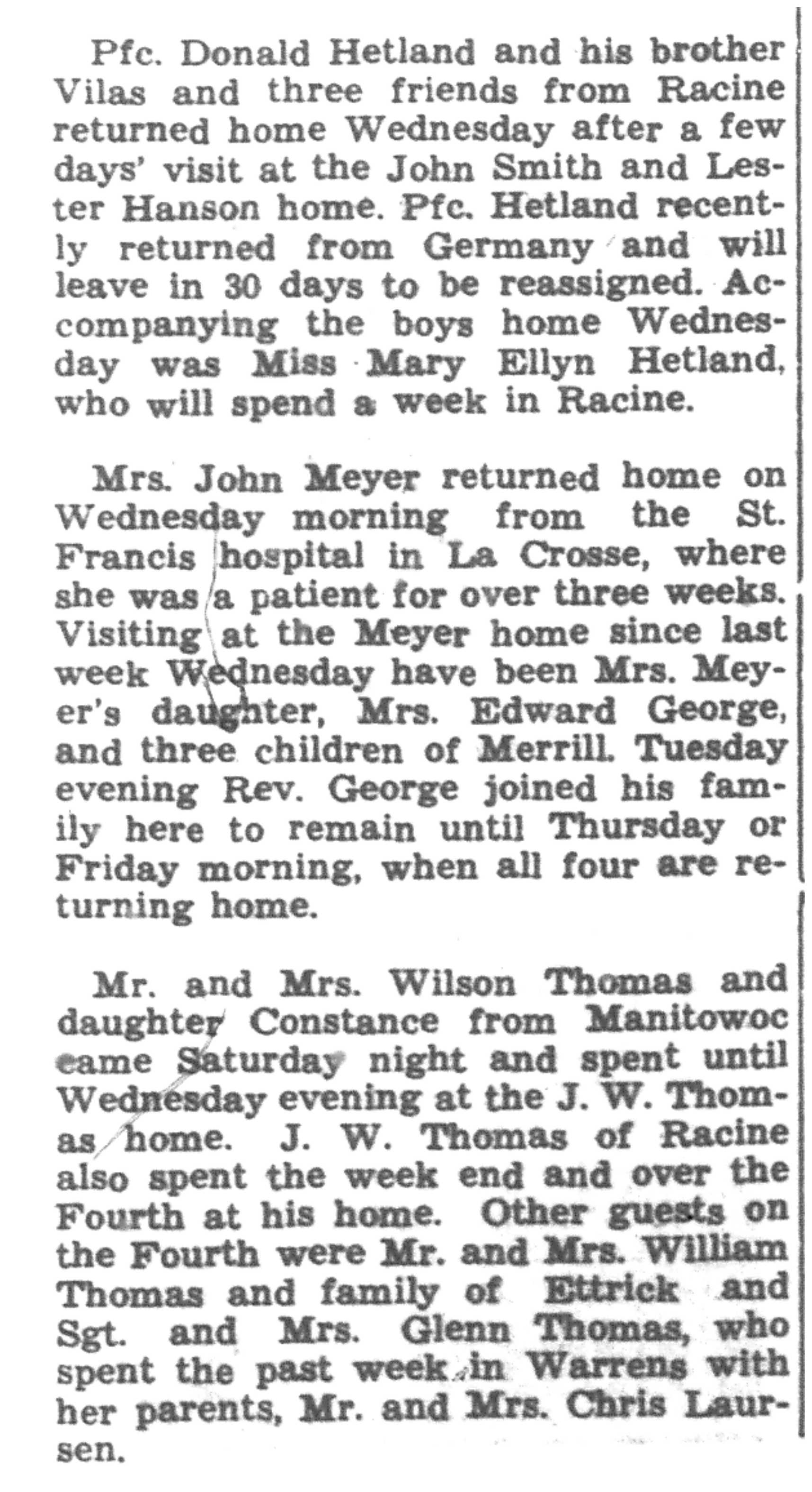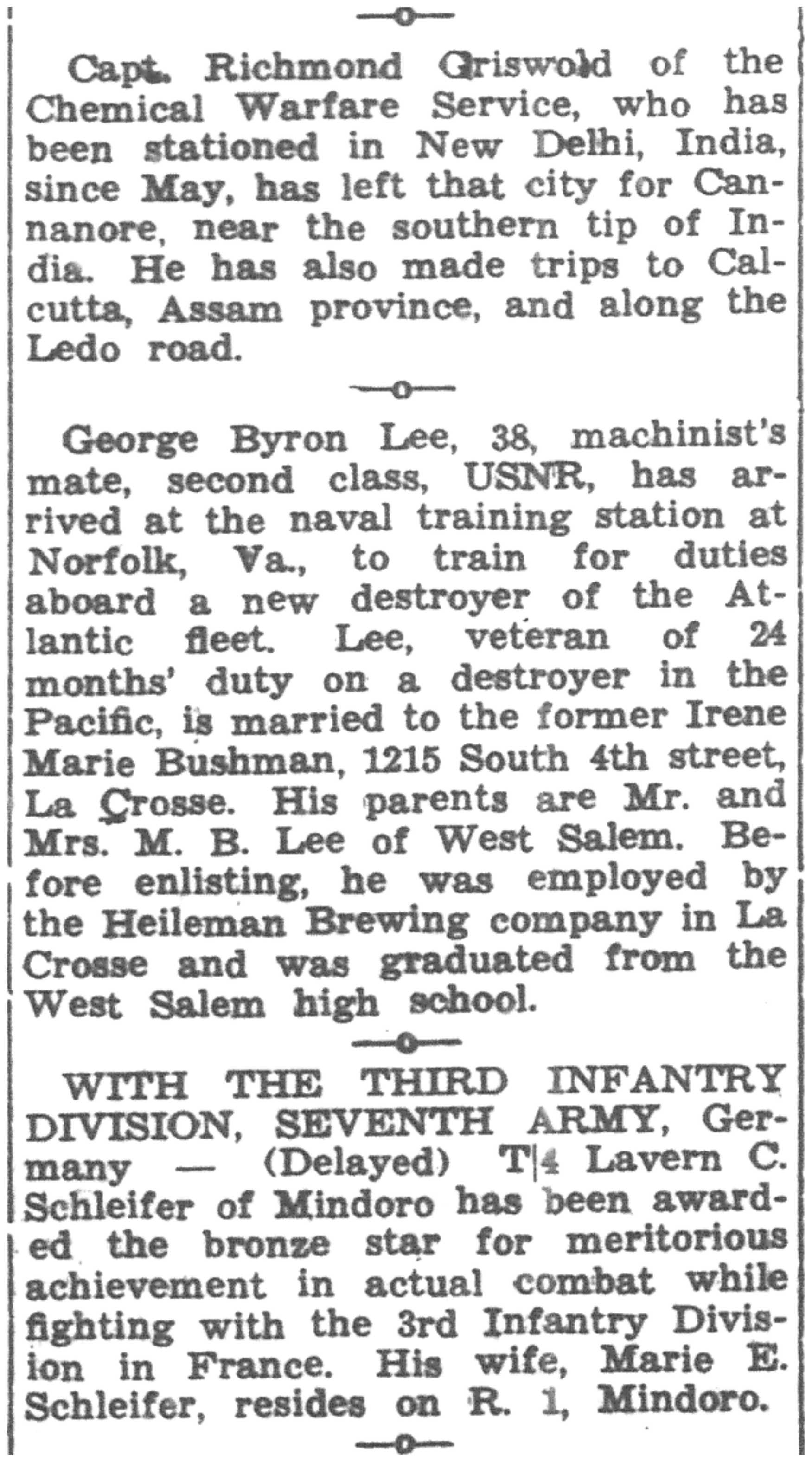 | 1945-7-30 | La Crosse Tribune p3 |