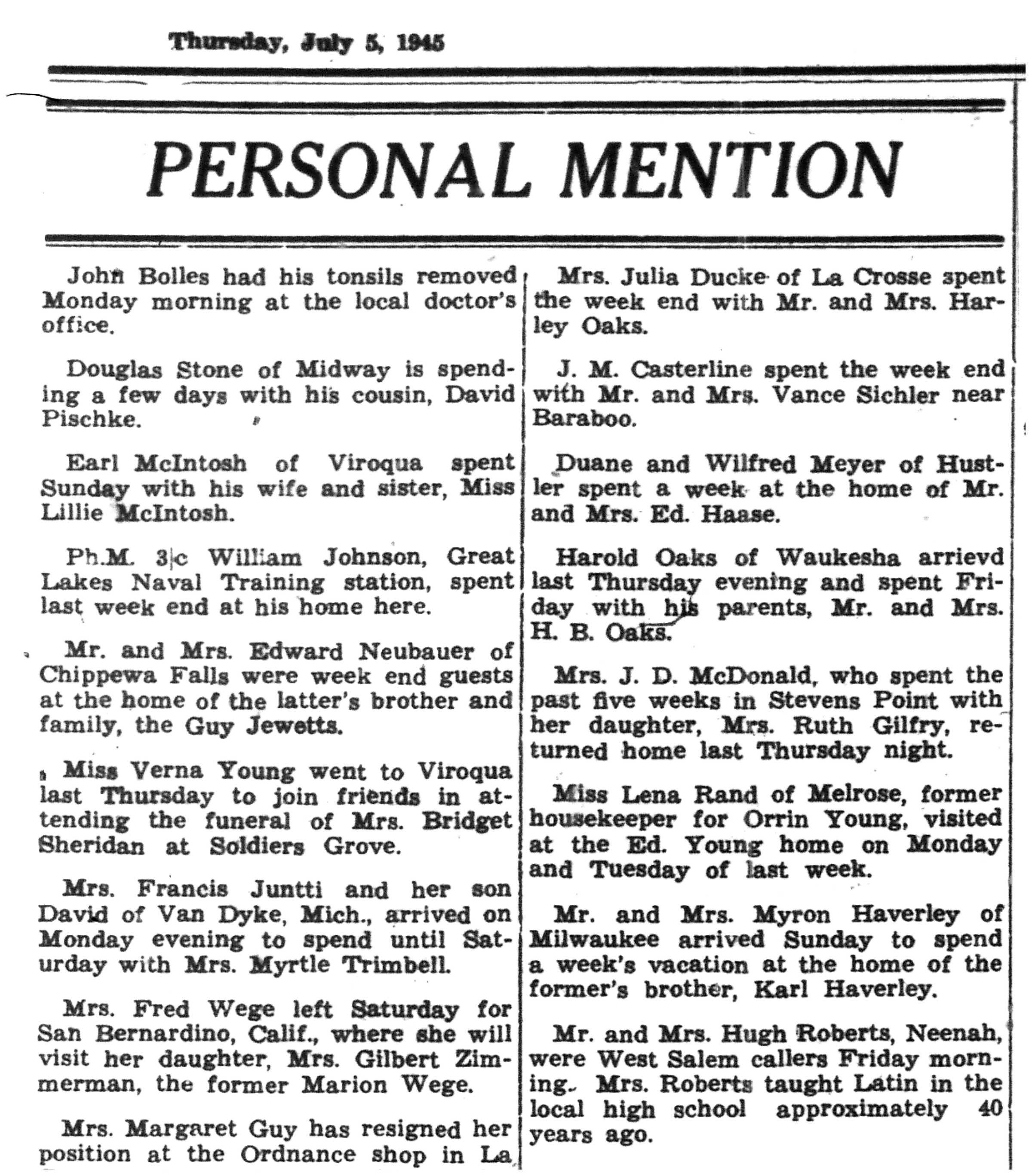| 1945-7-5 | La Crosse County Record p8 |