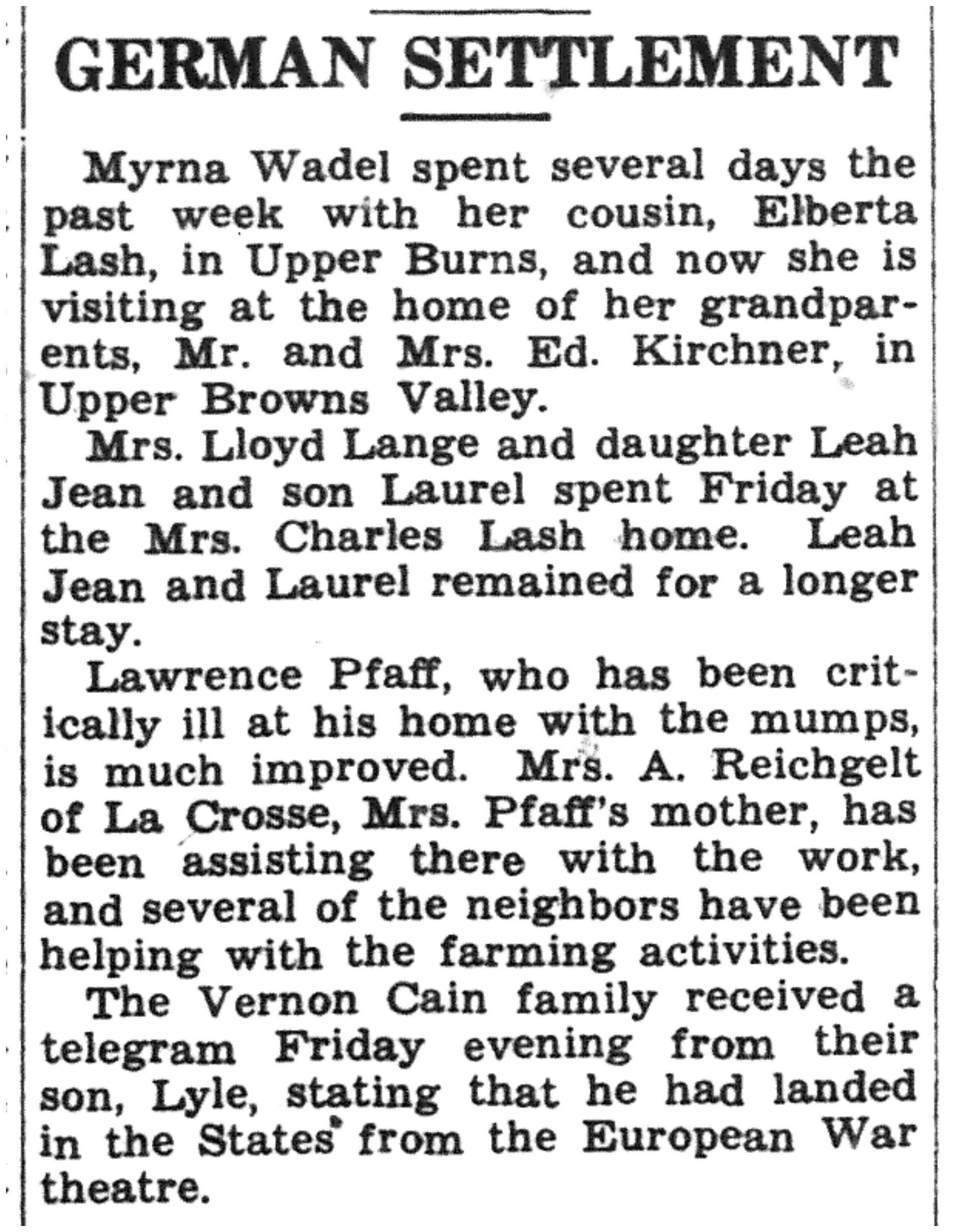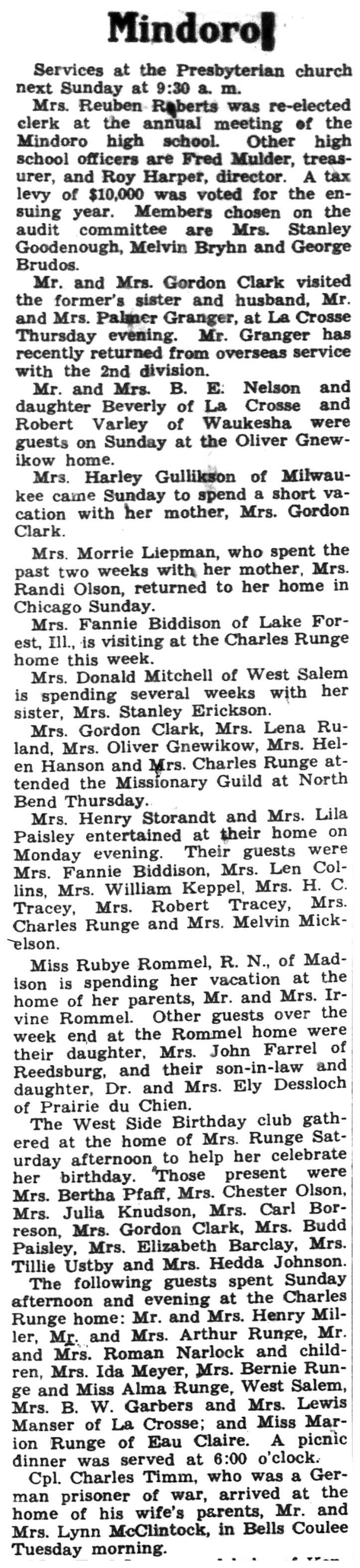| 1945-7-26 | La Crosse County Record p8 | |