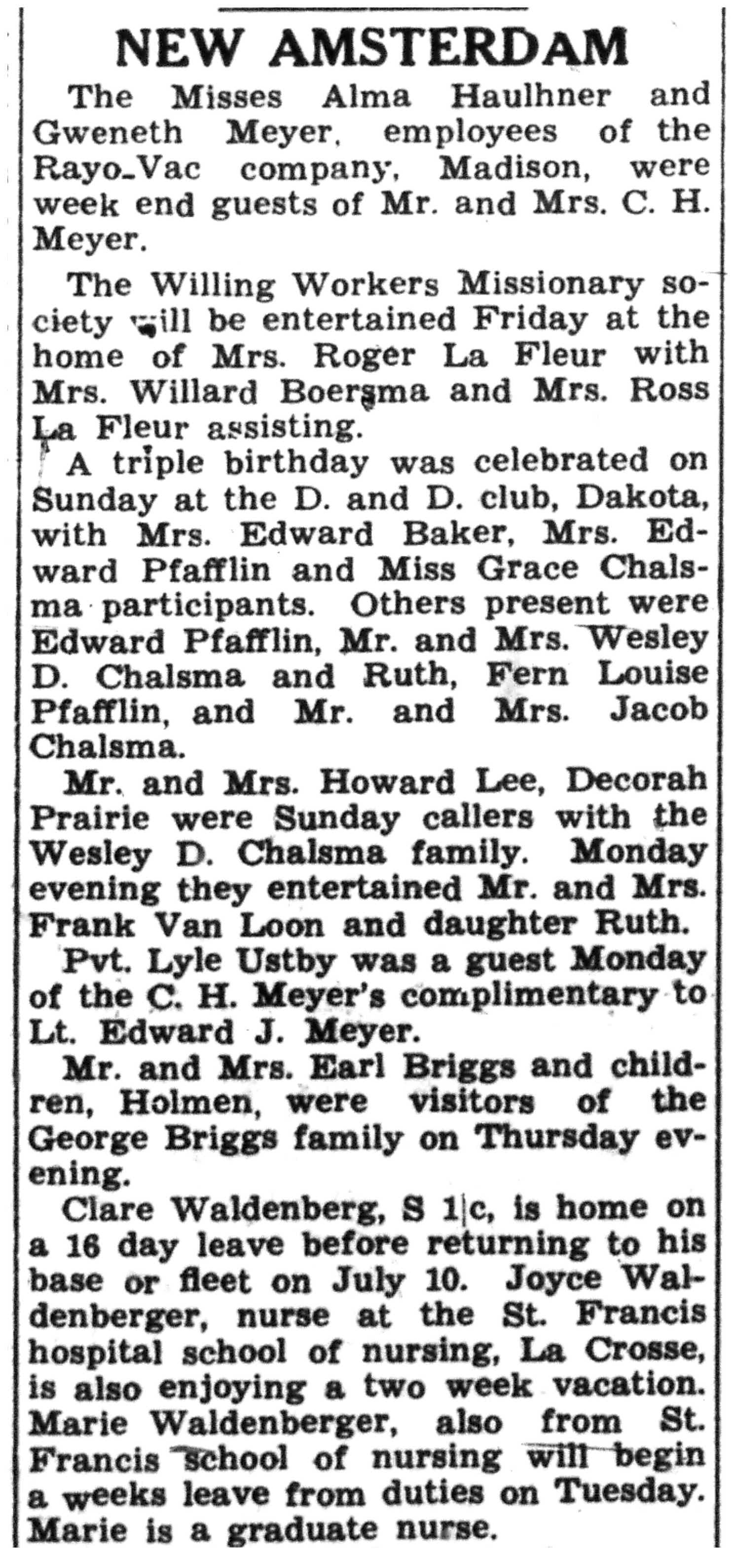 | 1945-7-1 | La Crosse Tribune p12 | |
