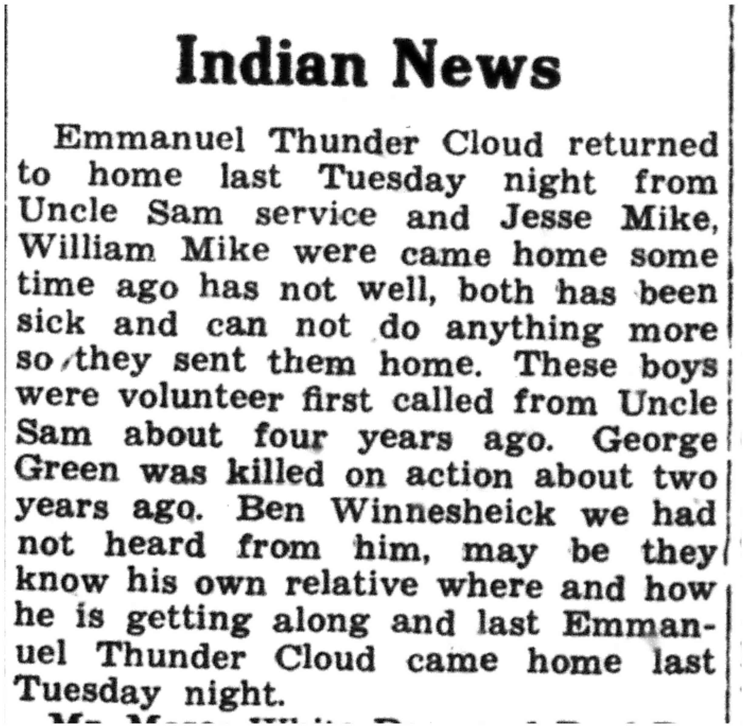Emmanuel Thunder Cloud, Jesse Mike, William Mike, George Green, Ben Winnesheick |