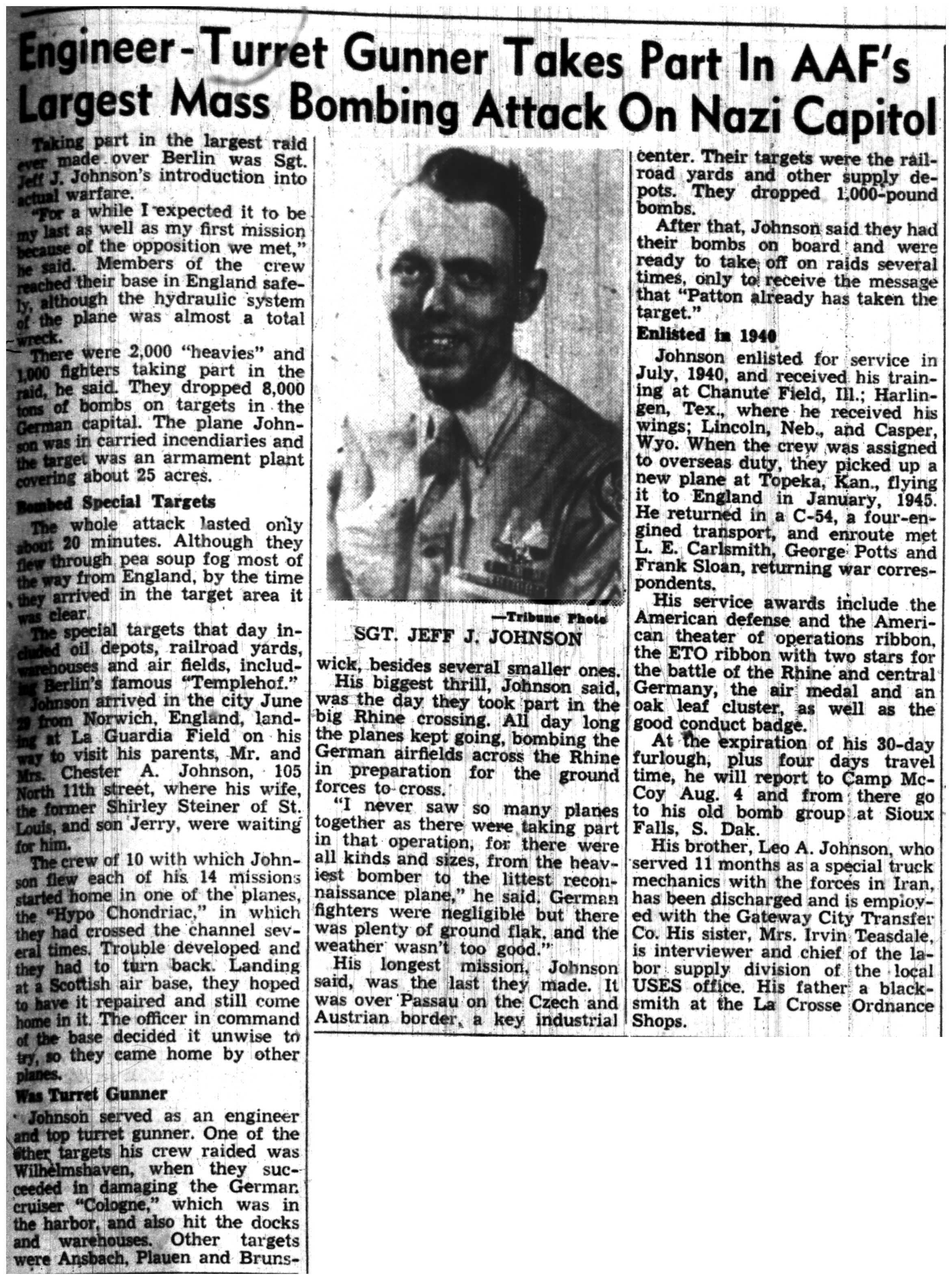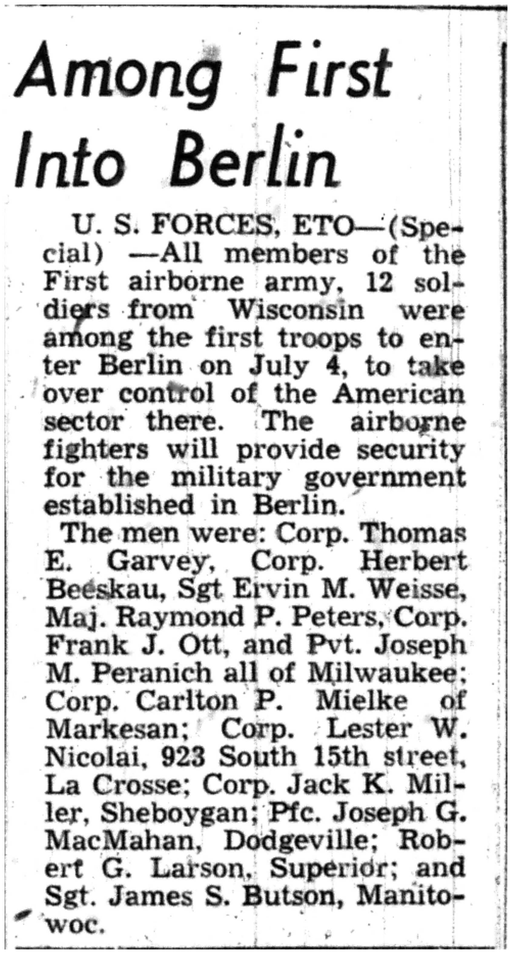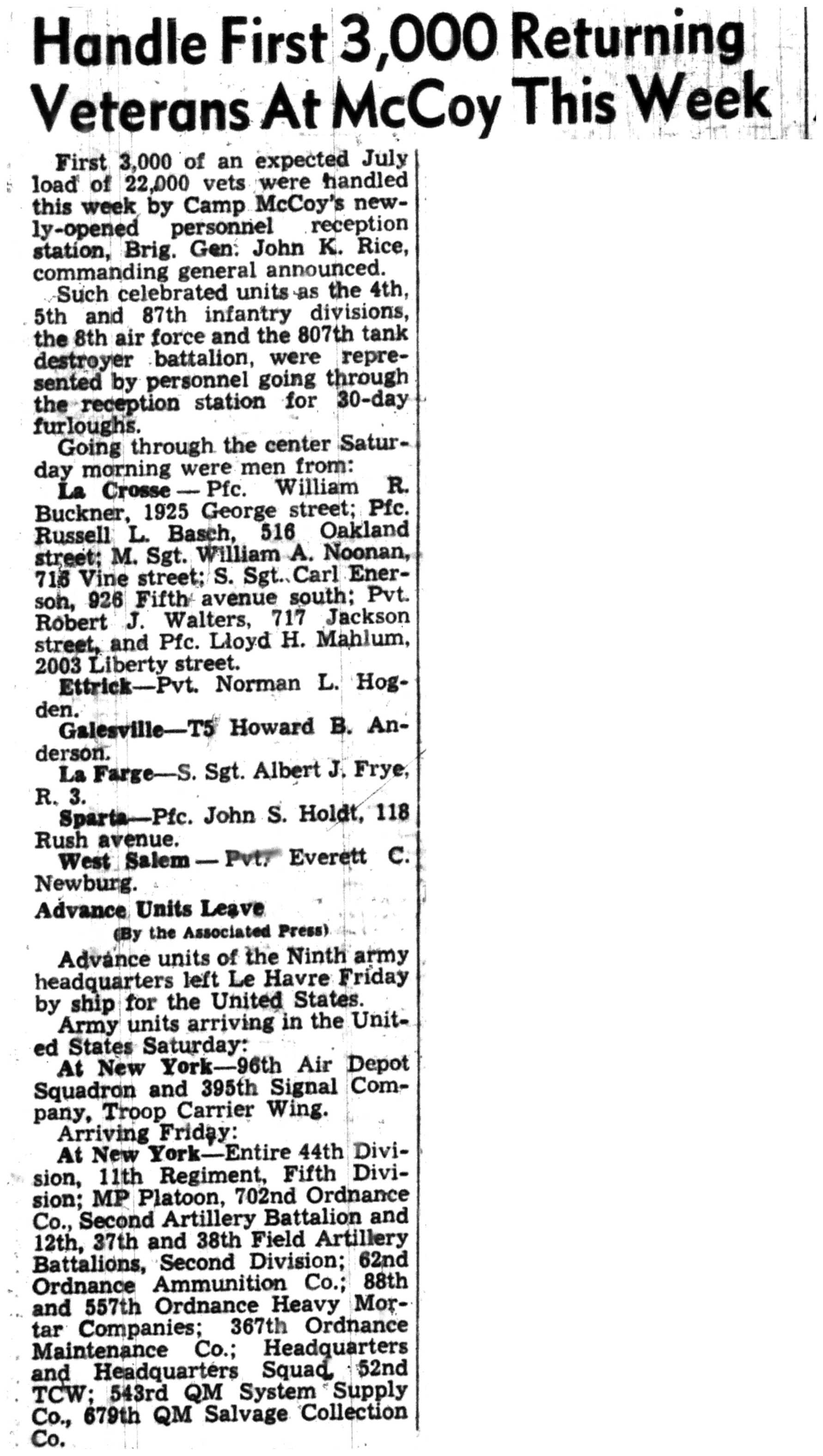 | 1945-7-1 | La Crosse Tribune p3 | |