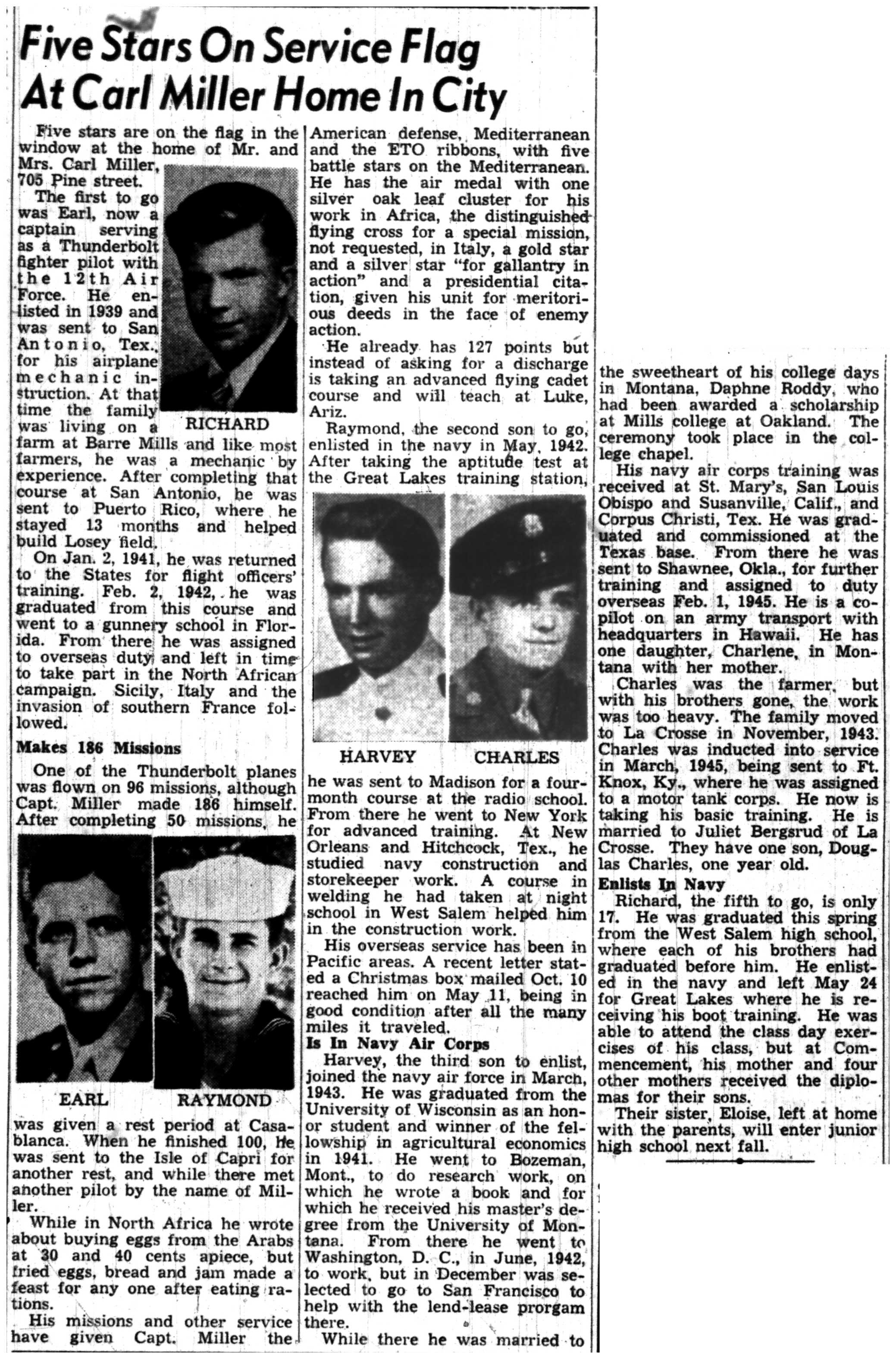 Richard Miller, Earl Miller, Raymond Miller, Harvey Miller, Charles Miller FEATURE STORY - Blue Star Banners |