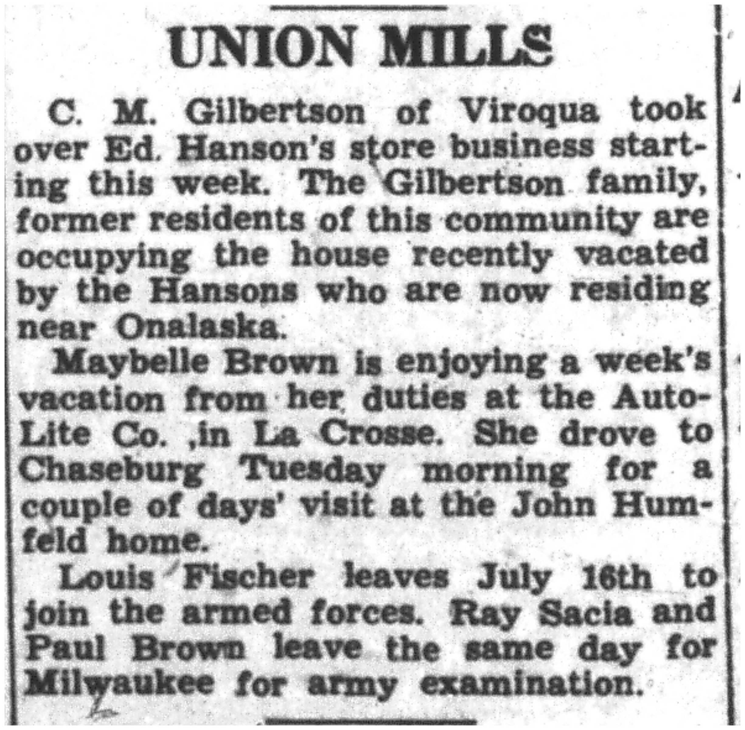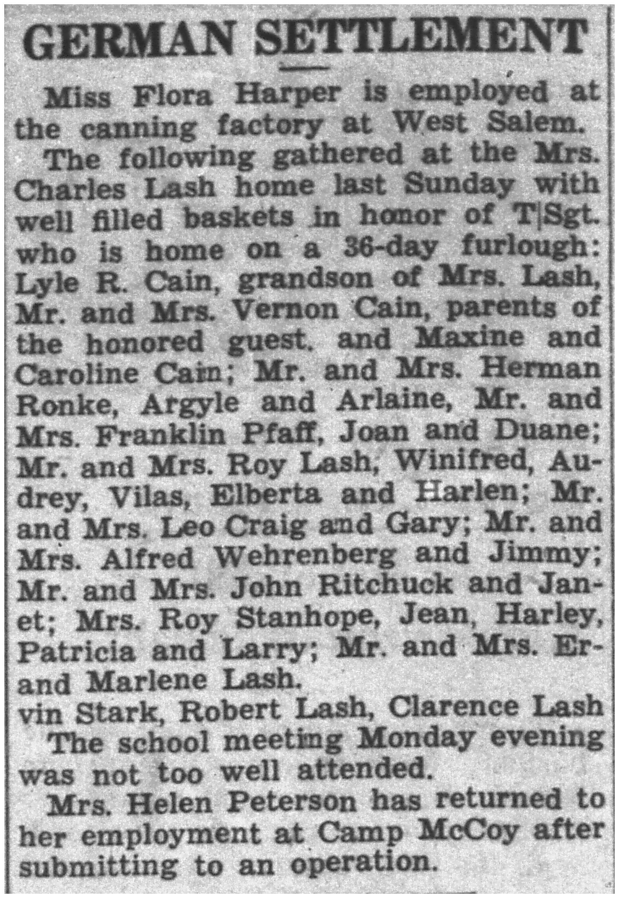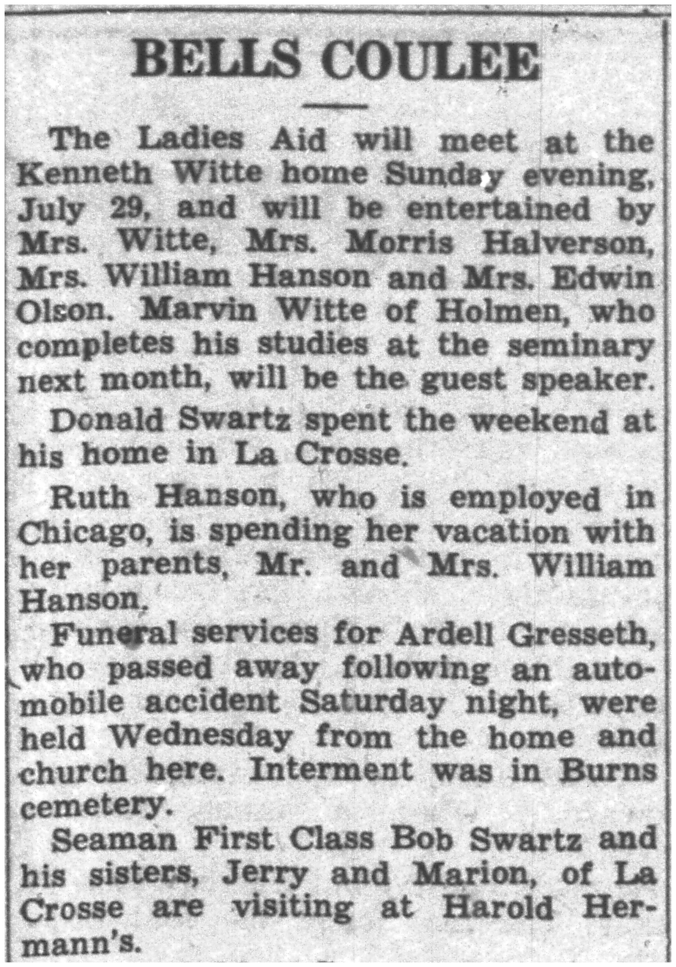 | 1945-7-26 | La Crosse County Record p5 | |