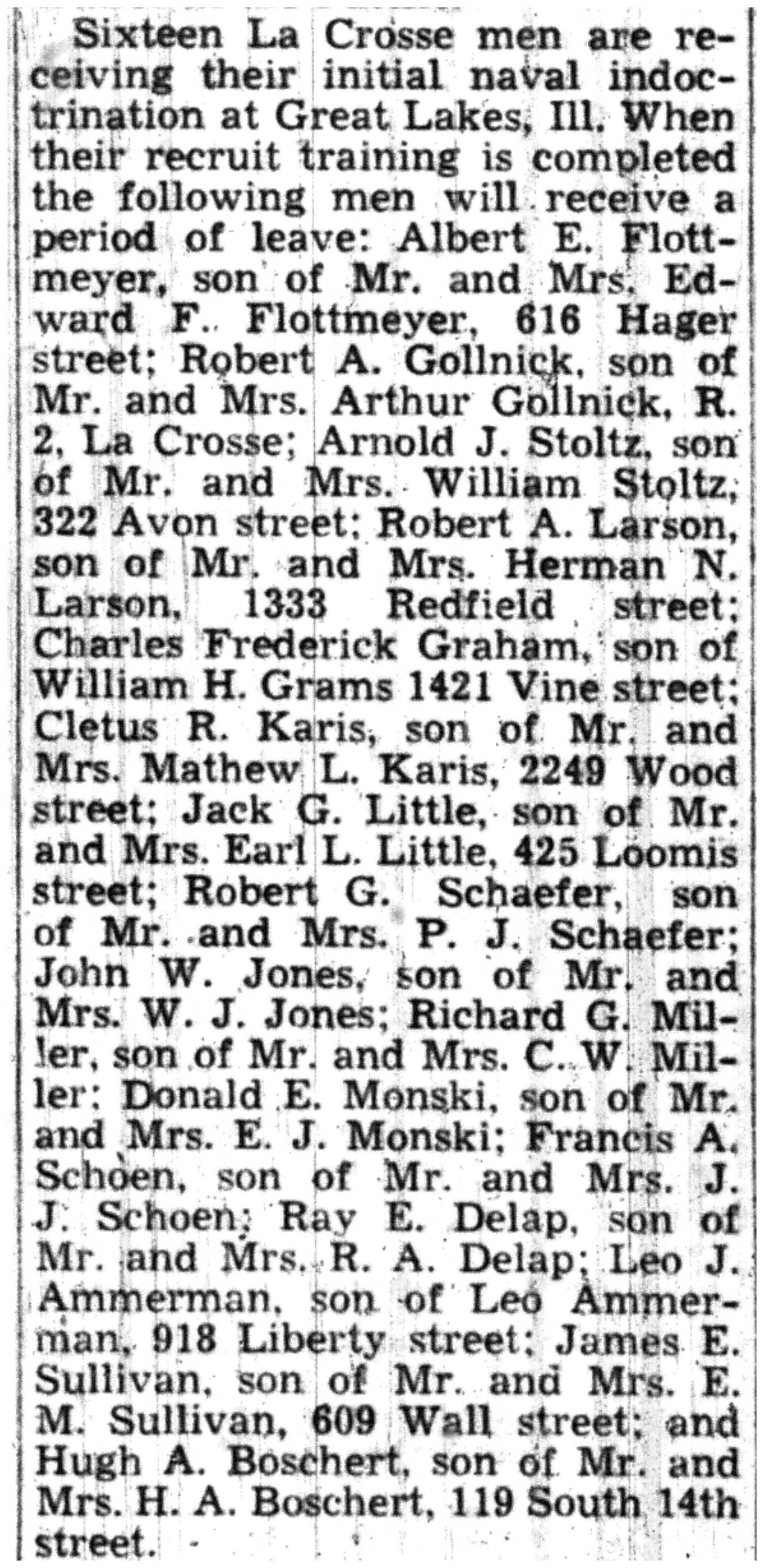 | 1945-7-12 | La Crosse Tribune p14 |