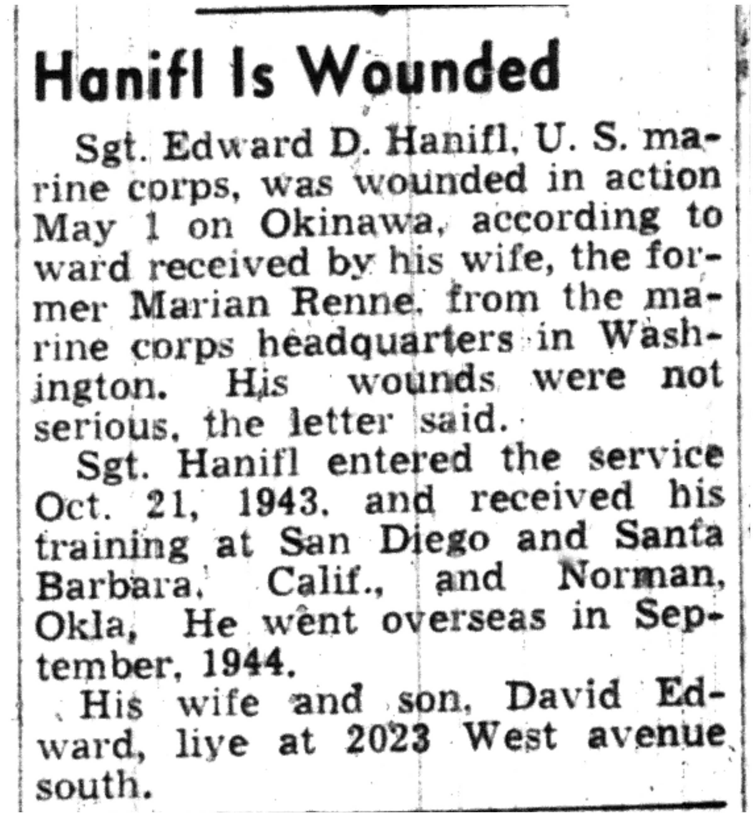 | 1945-7-19 | Non-Pareil Journal p8 |