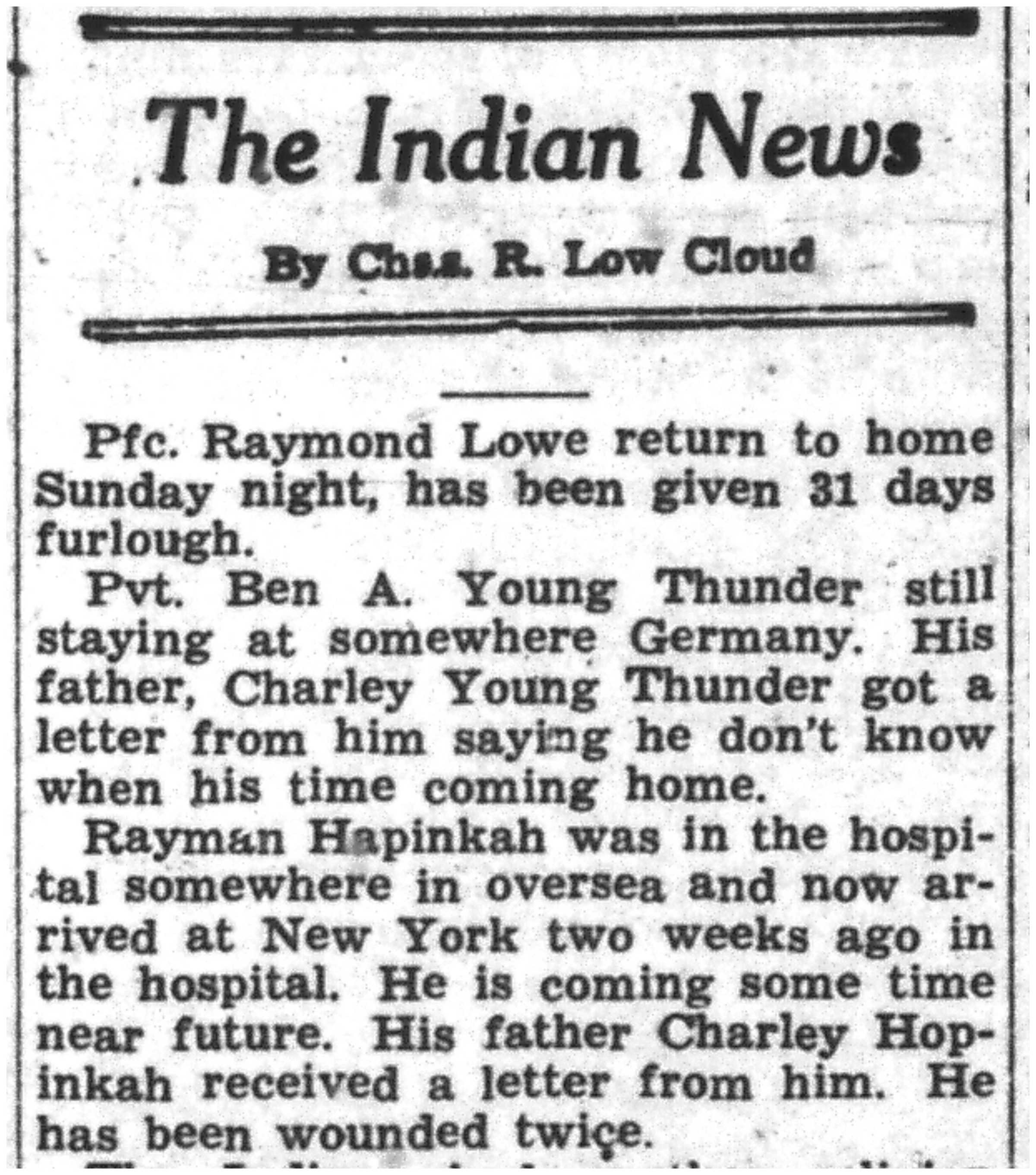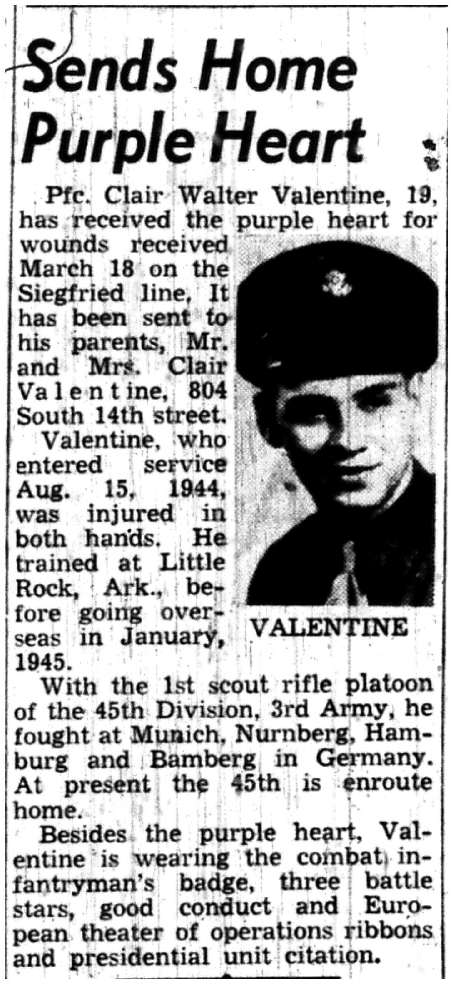 | 1945-7-19 | Non-Pareil Journal p5 | |
