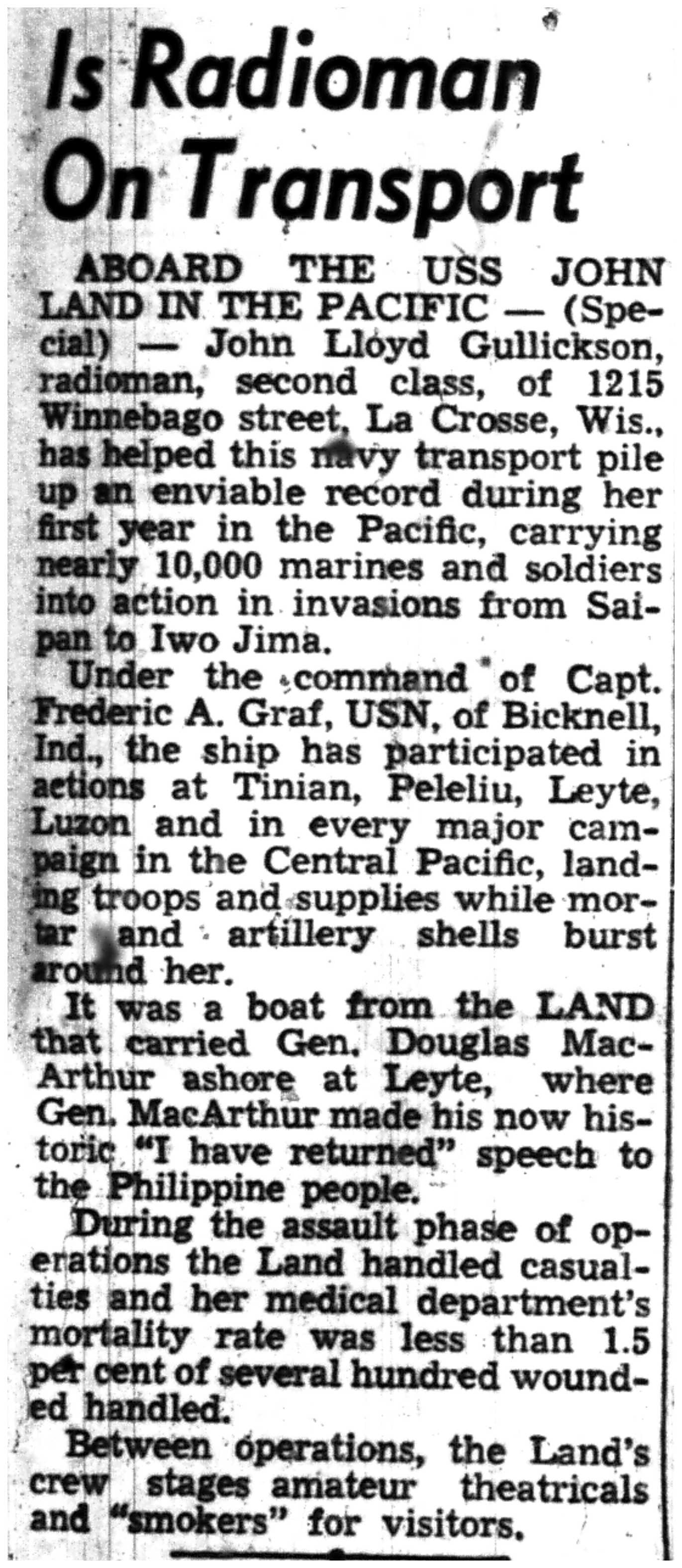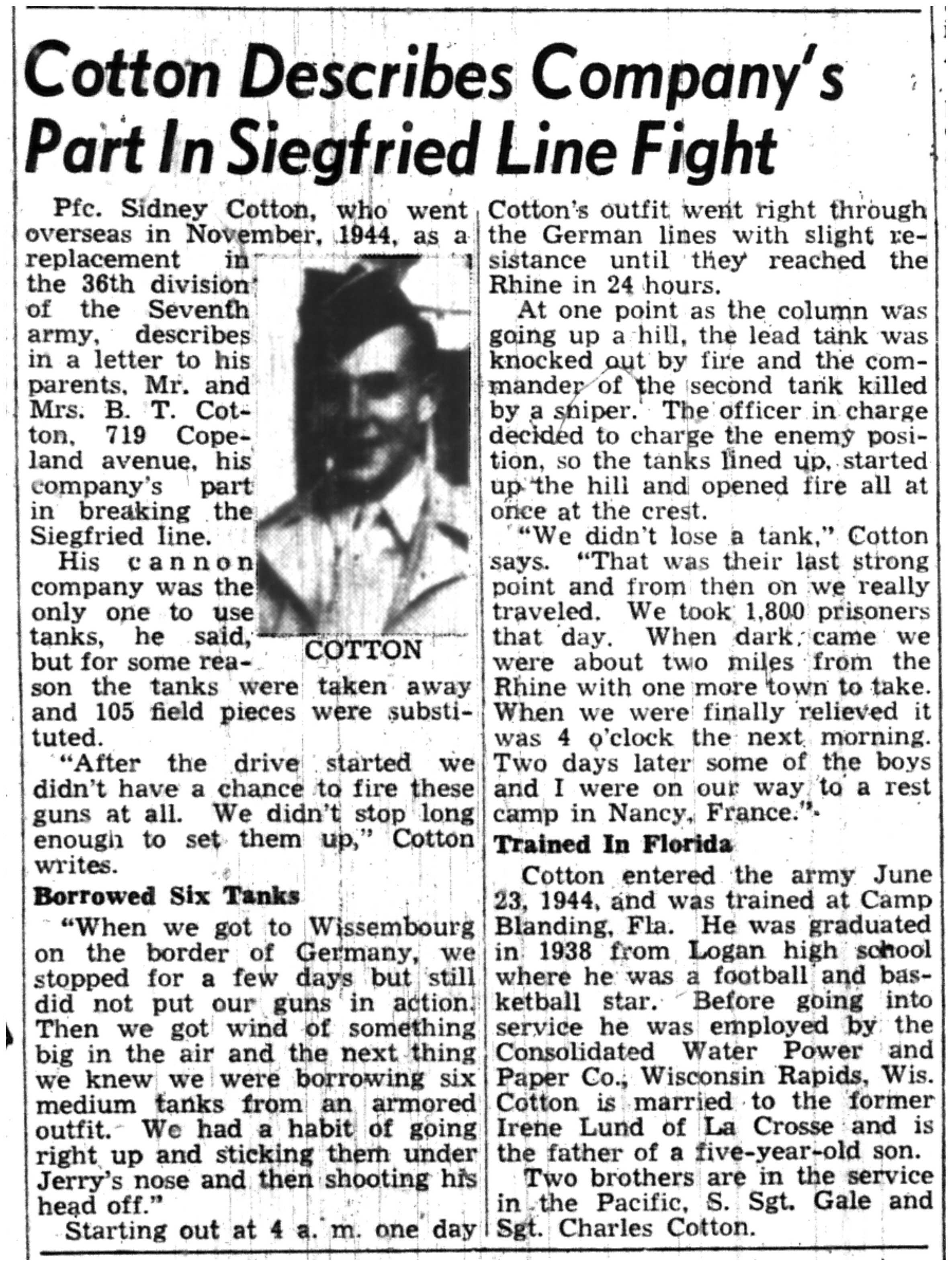 | 1945-7-3 | La Crosse Tribune p2 | |