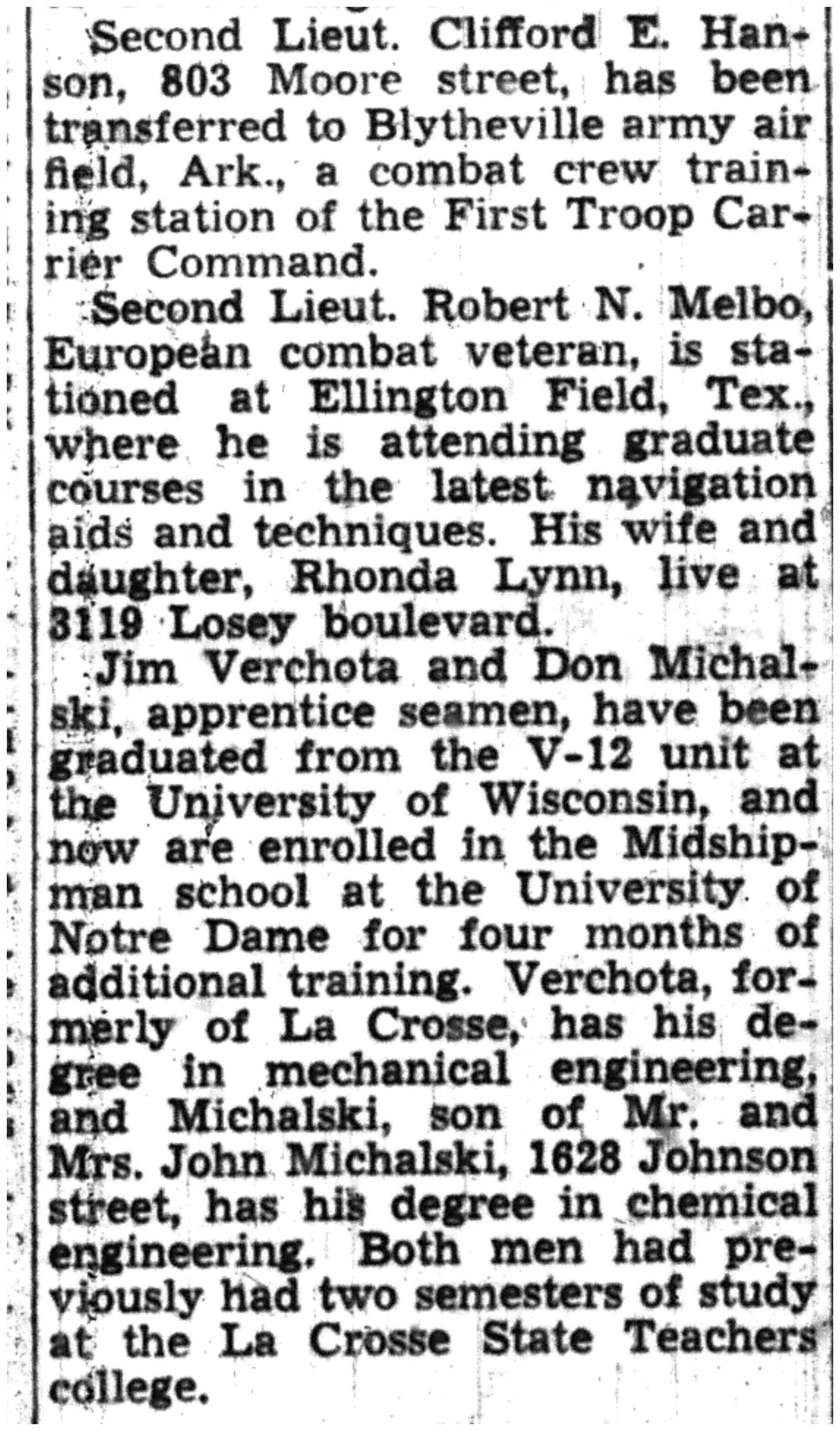 | 1945-7-31 | La Crosse Tribune p8 | |