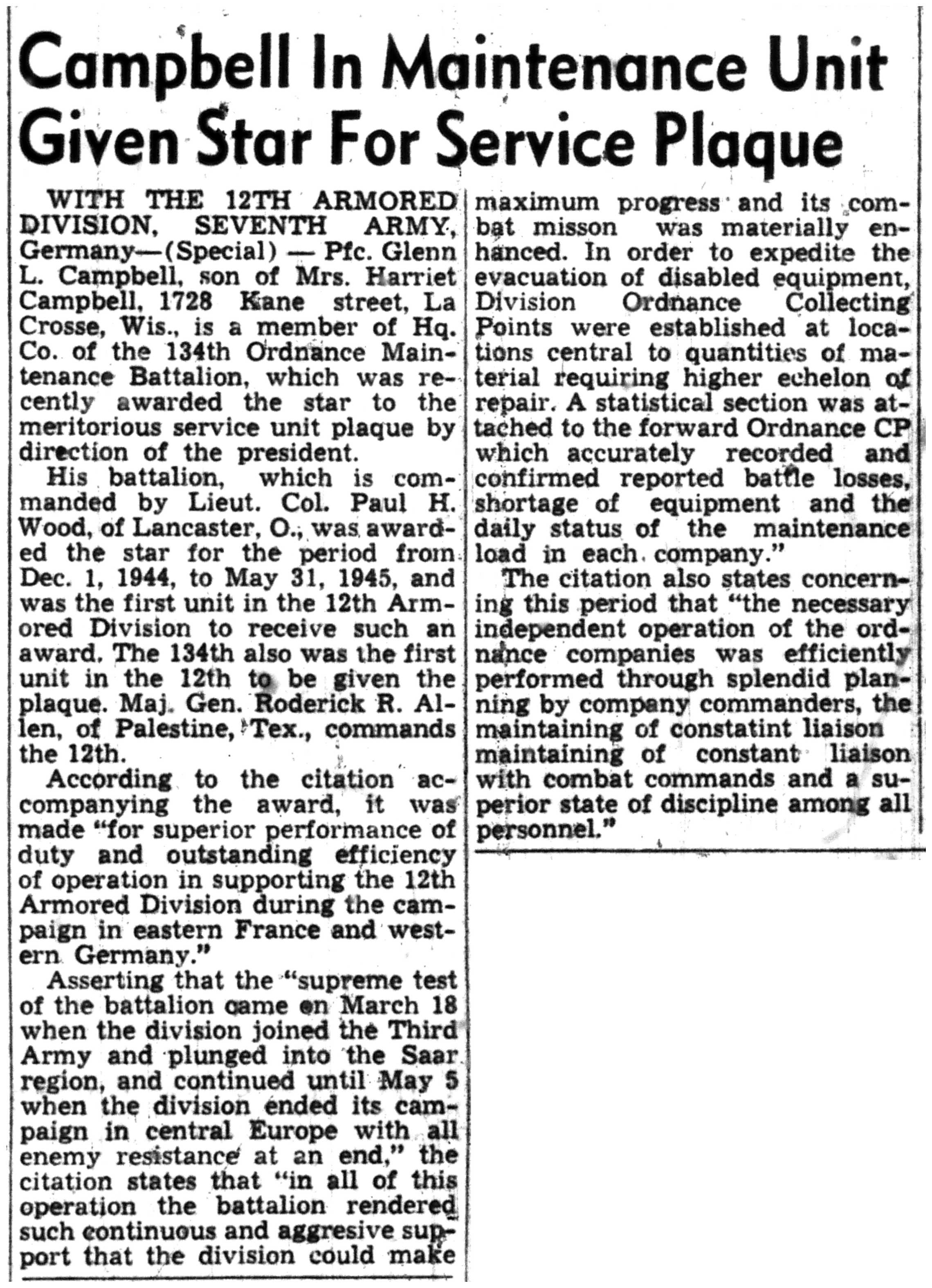 | 1945-7-12 | La Crosse Tribune p10 | |