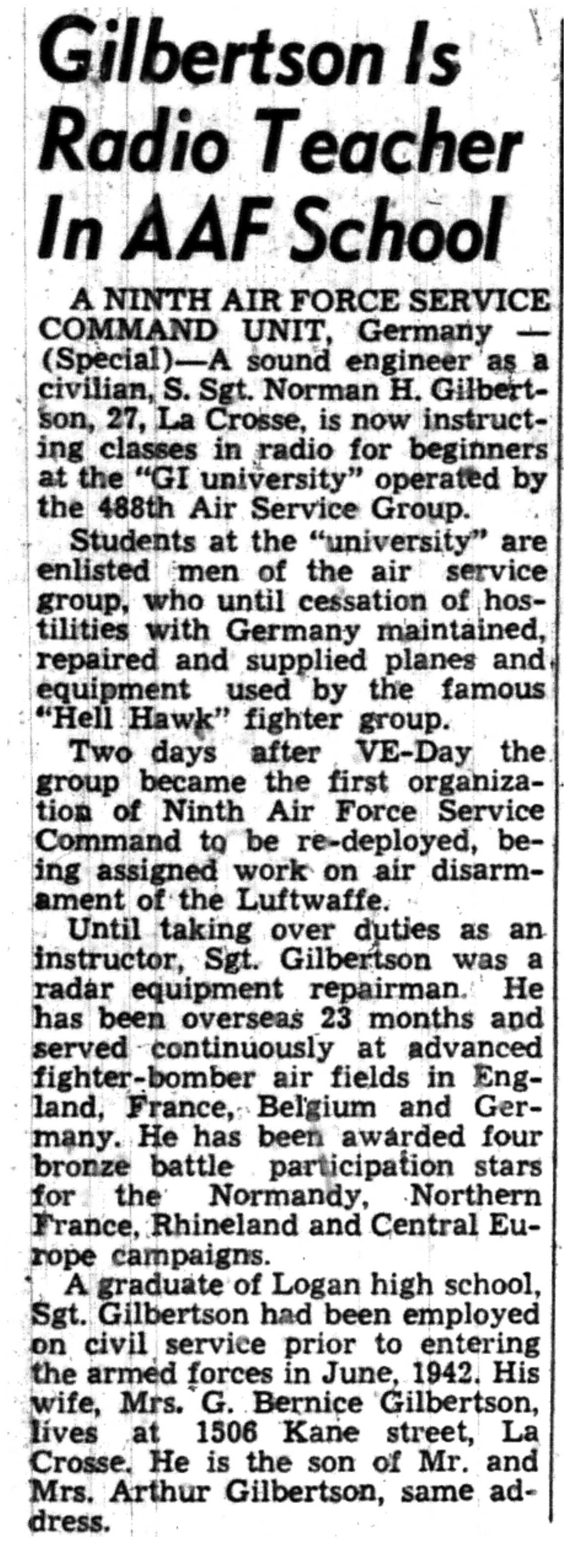 | 1945-7-1 | La Crosse Tribune p10 |
