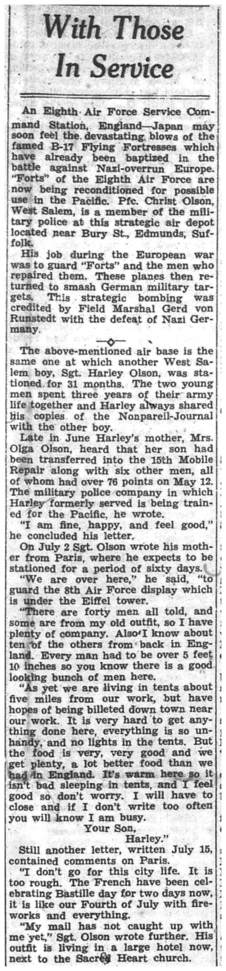 | 1945-7-29 | La Crosse Tribune p9 | |