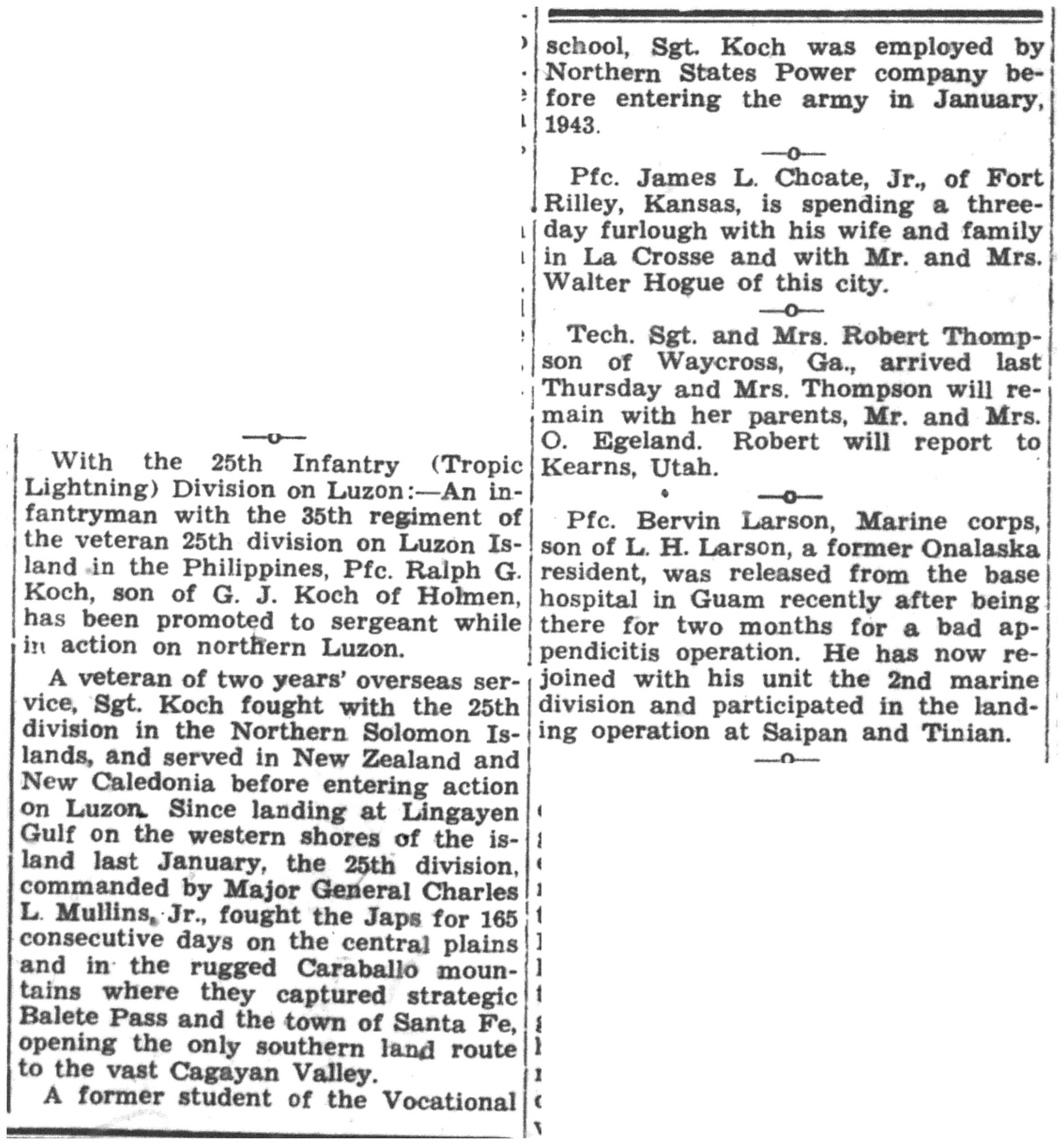 | 1945-7-25 | La Crosse Tribune p10 | |
