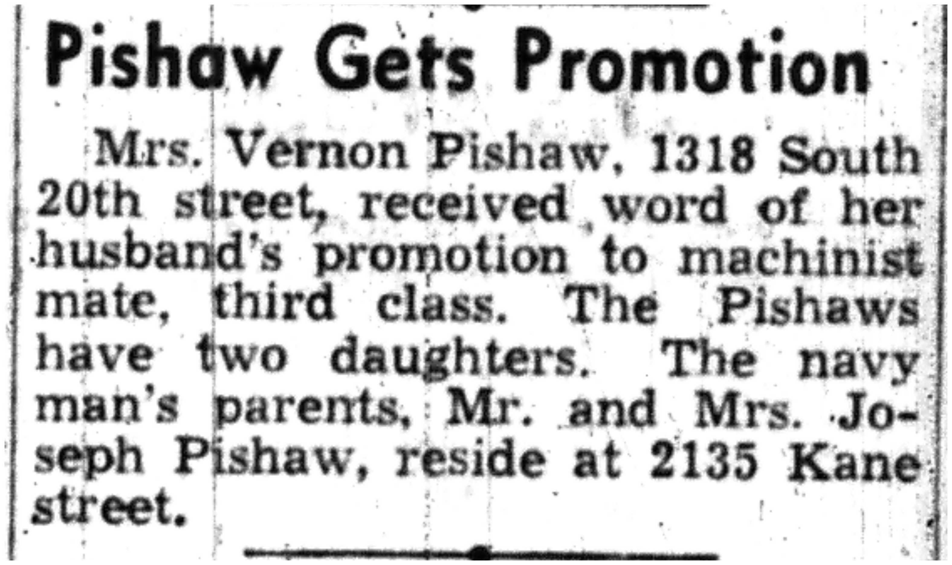 | 1945-7-12 | Non-Pareil Journal p5 | |