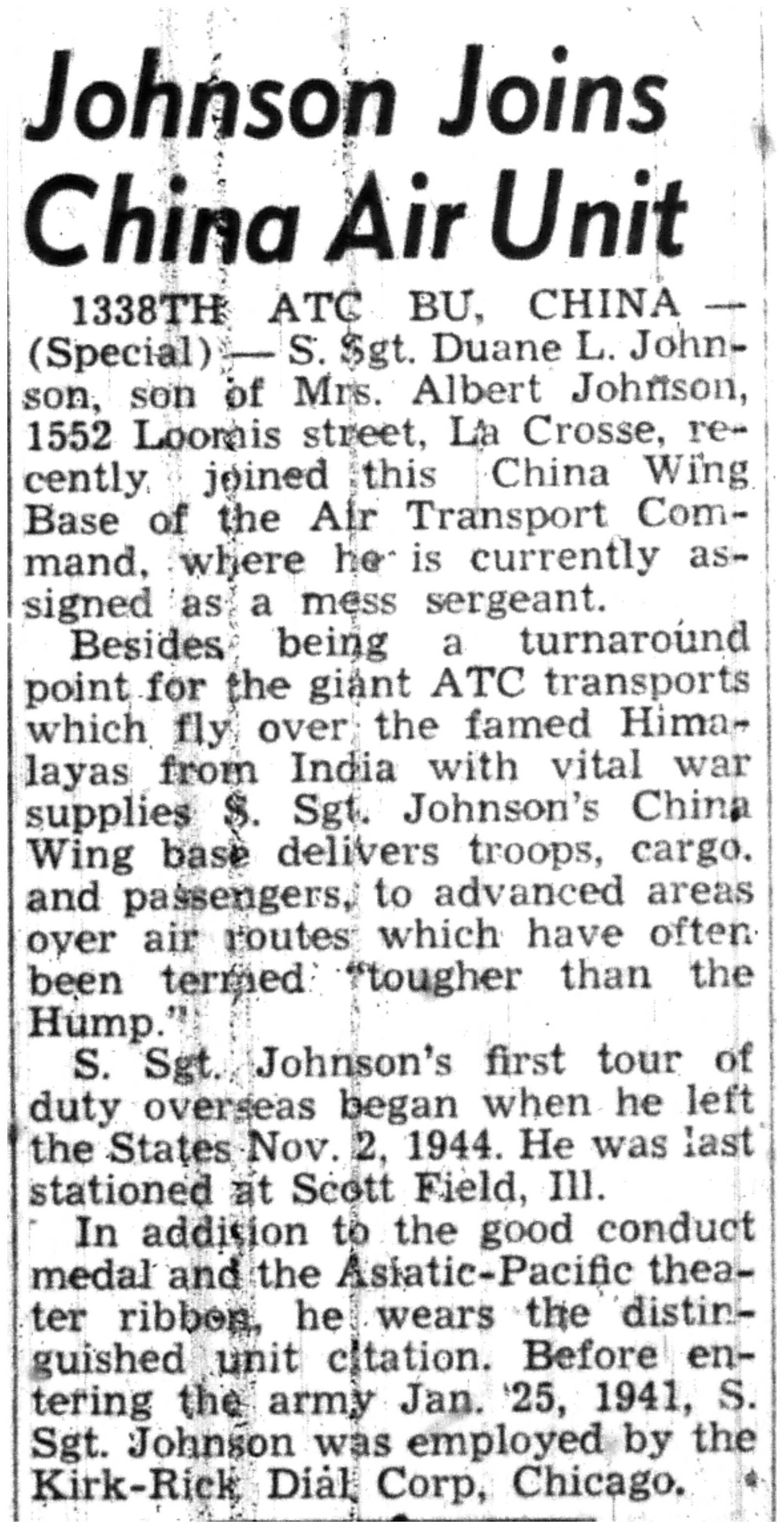 | 1945-7-1 | La Crosse Tribune p5 | |