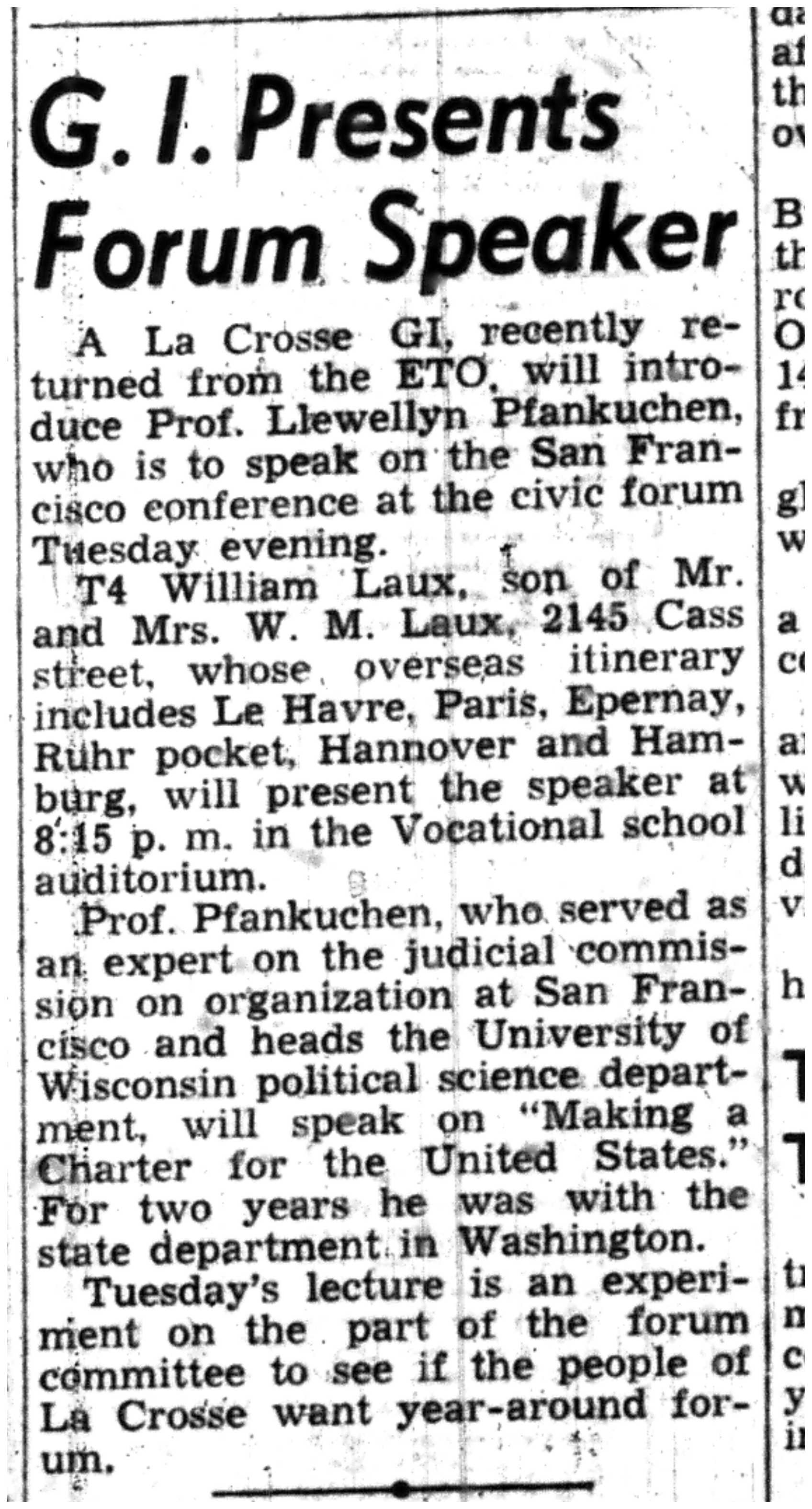 | 1945-7-30 | La Crosse Tribune p1 | |