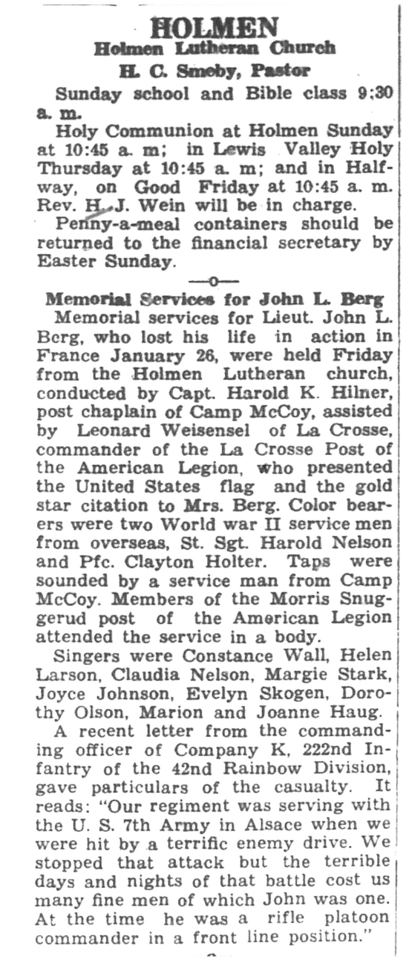 | 1945-3-30 | La Crosse Tribune p4 | |