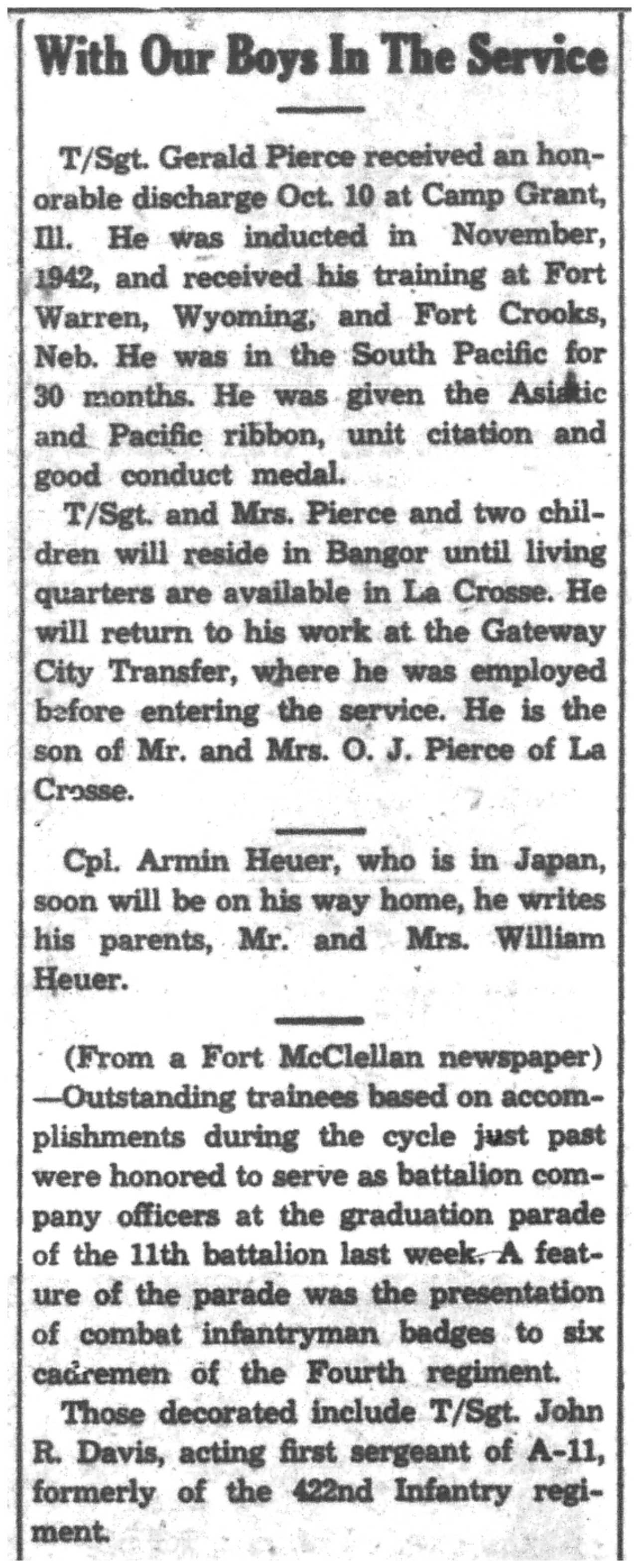 | 1945-11-11 | La Crosse Tribune p4 | |