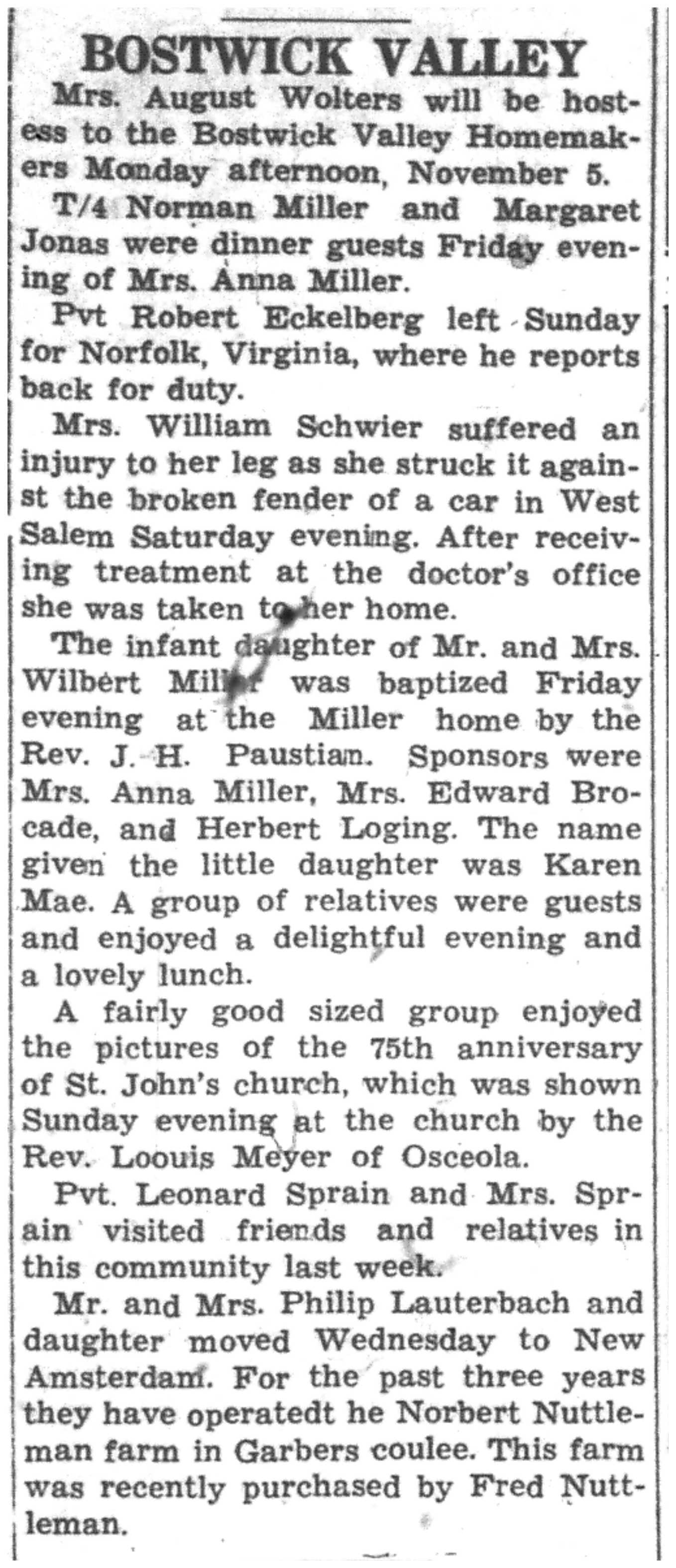 | 1945-11-1 | La Crosse County Record p5 | |