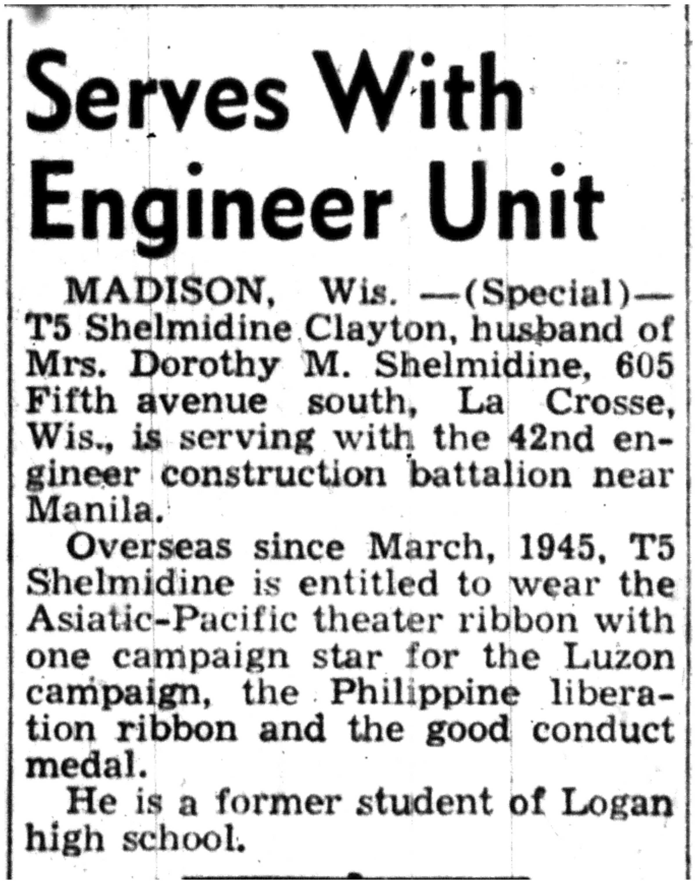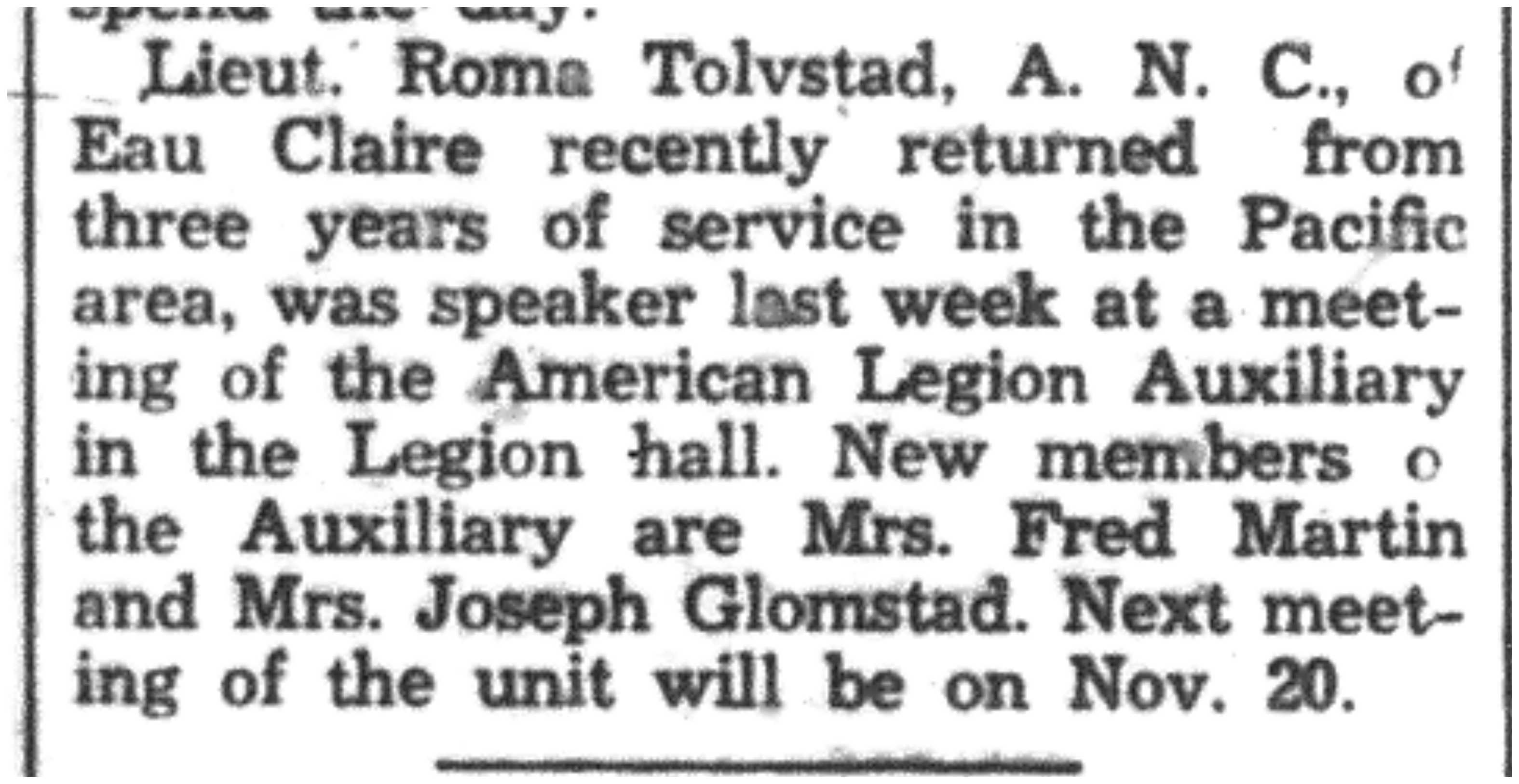 | 1945-11-10 | La Crosse Tribune p8 | |