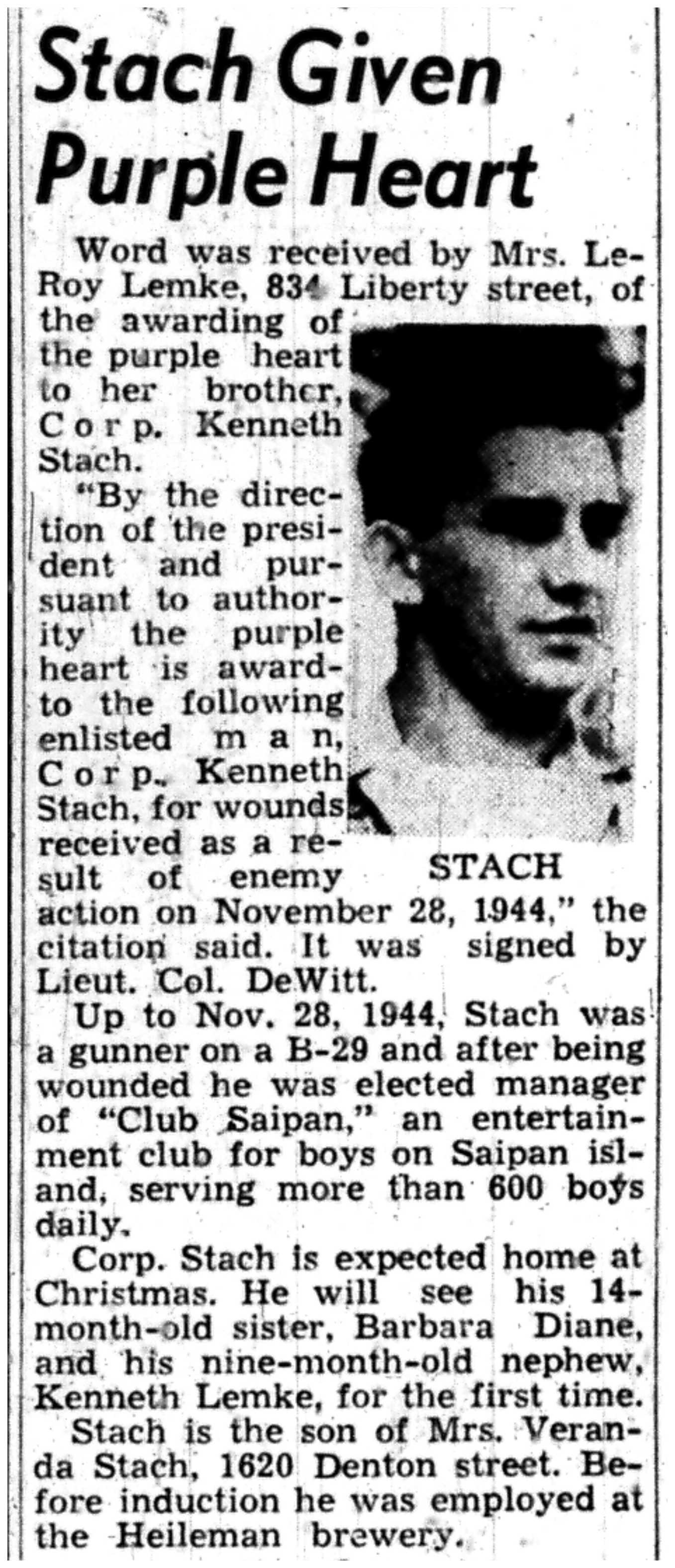 | 1945-11-4 | La Crosse Tribune p14 | |