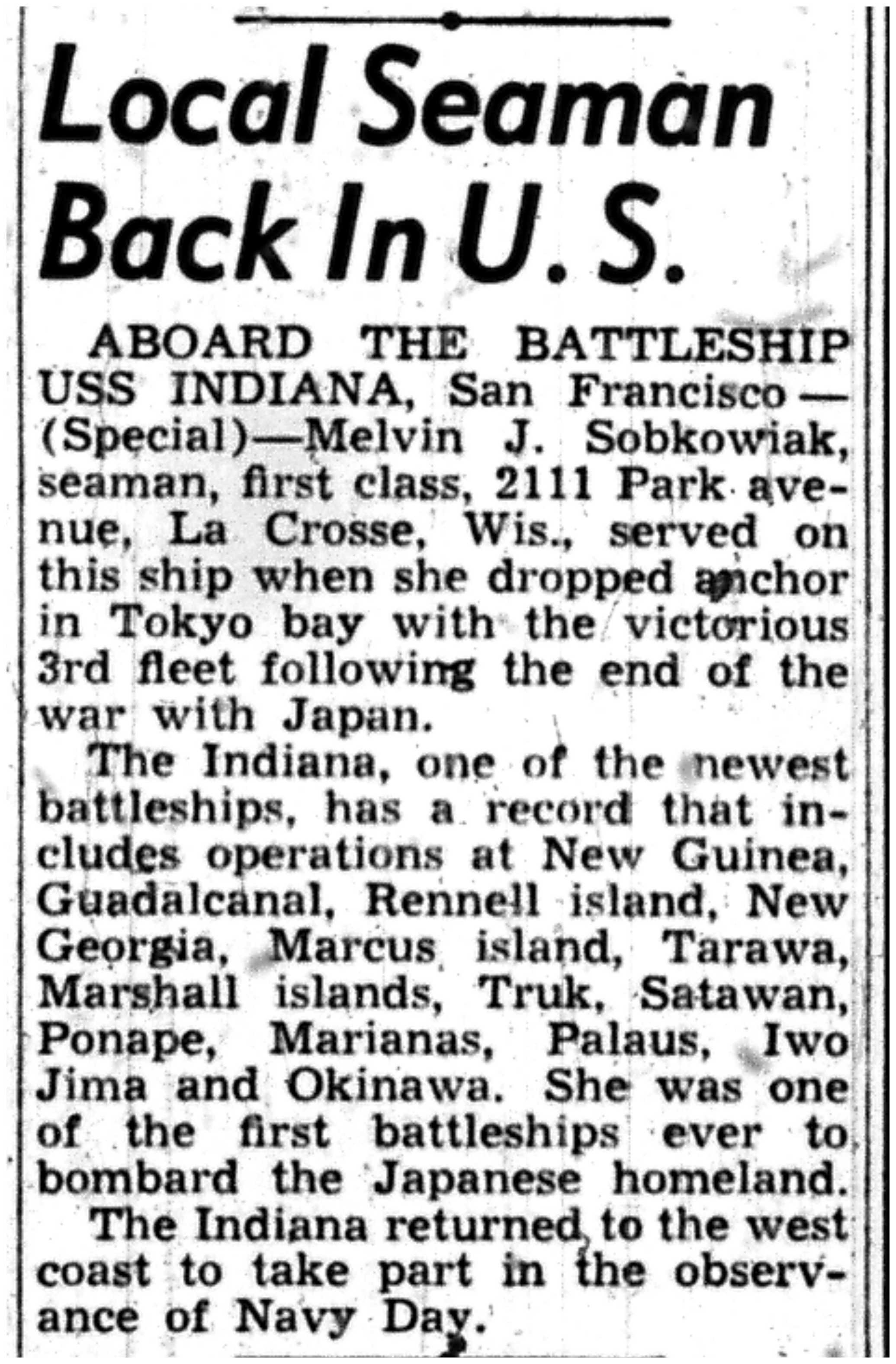 | 1945-11-15 | La Crosse Tribune p2 | |