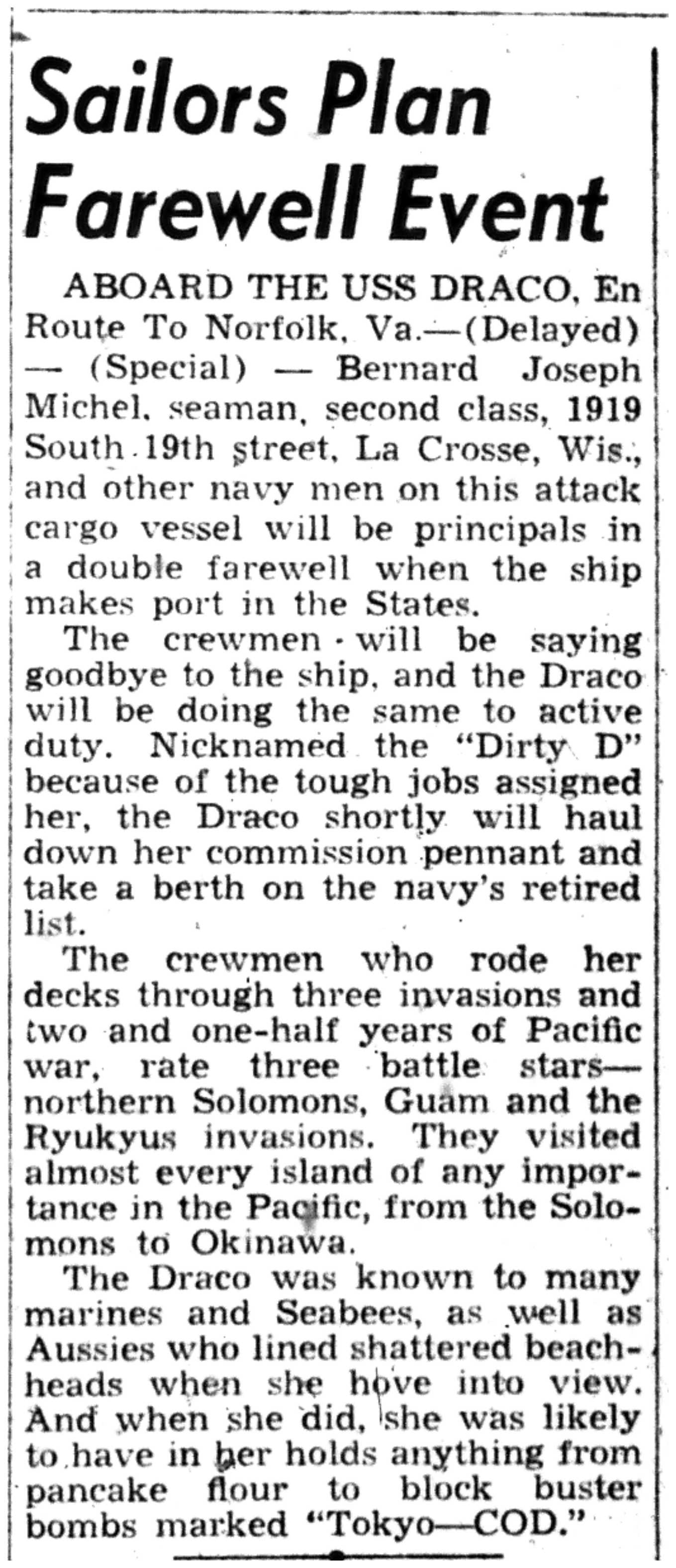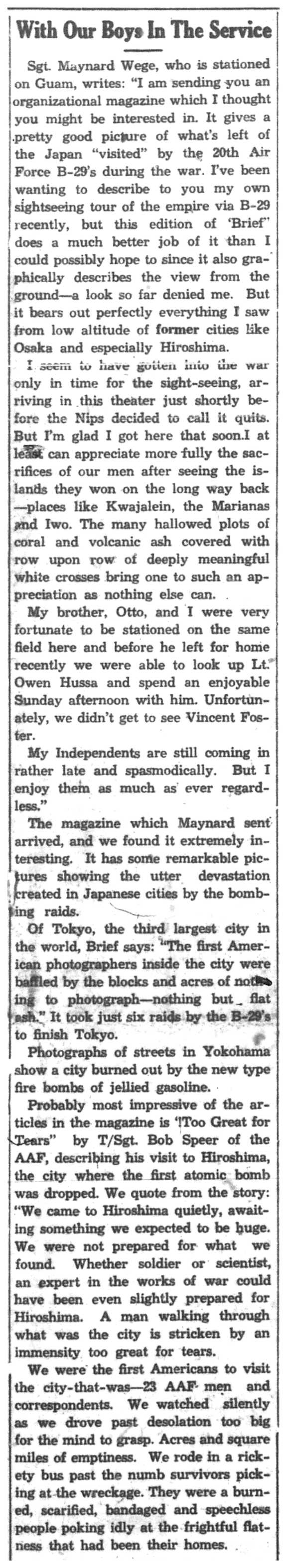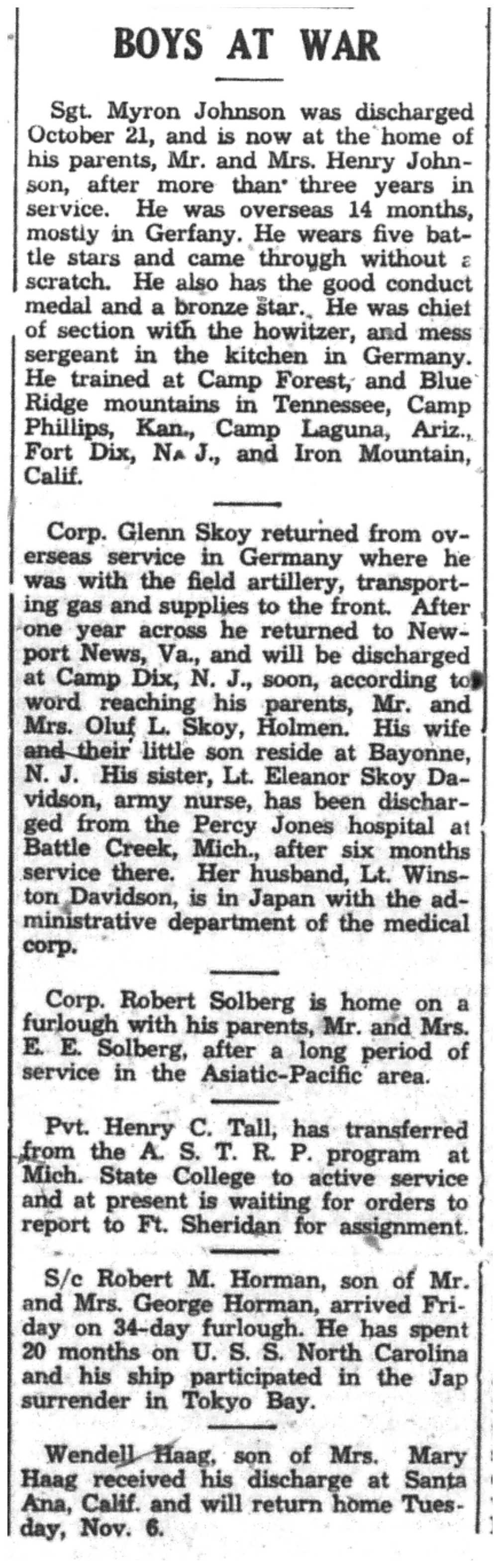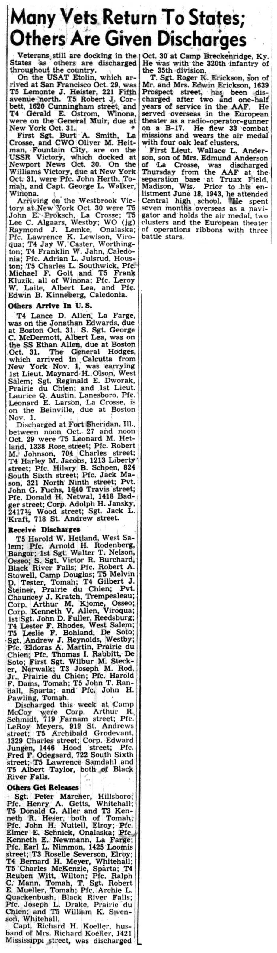 | 1945-11-5 | La Crosse Tribune p6 |