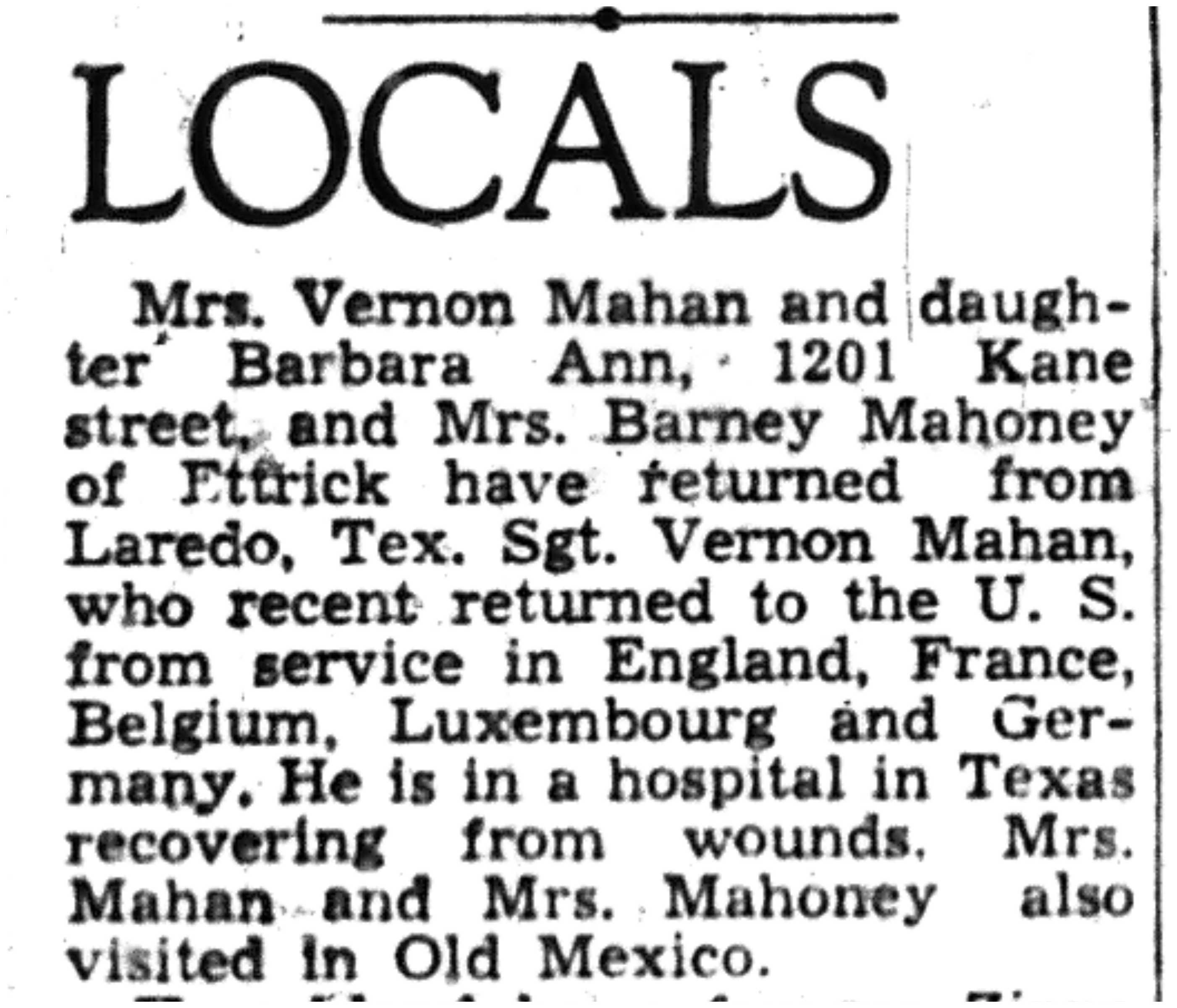 | 1945-11-11 | La Crosse Tribune p8 | |