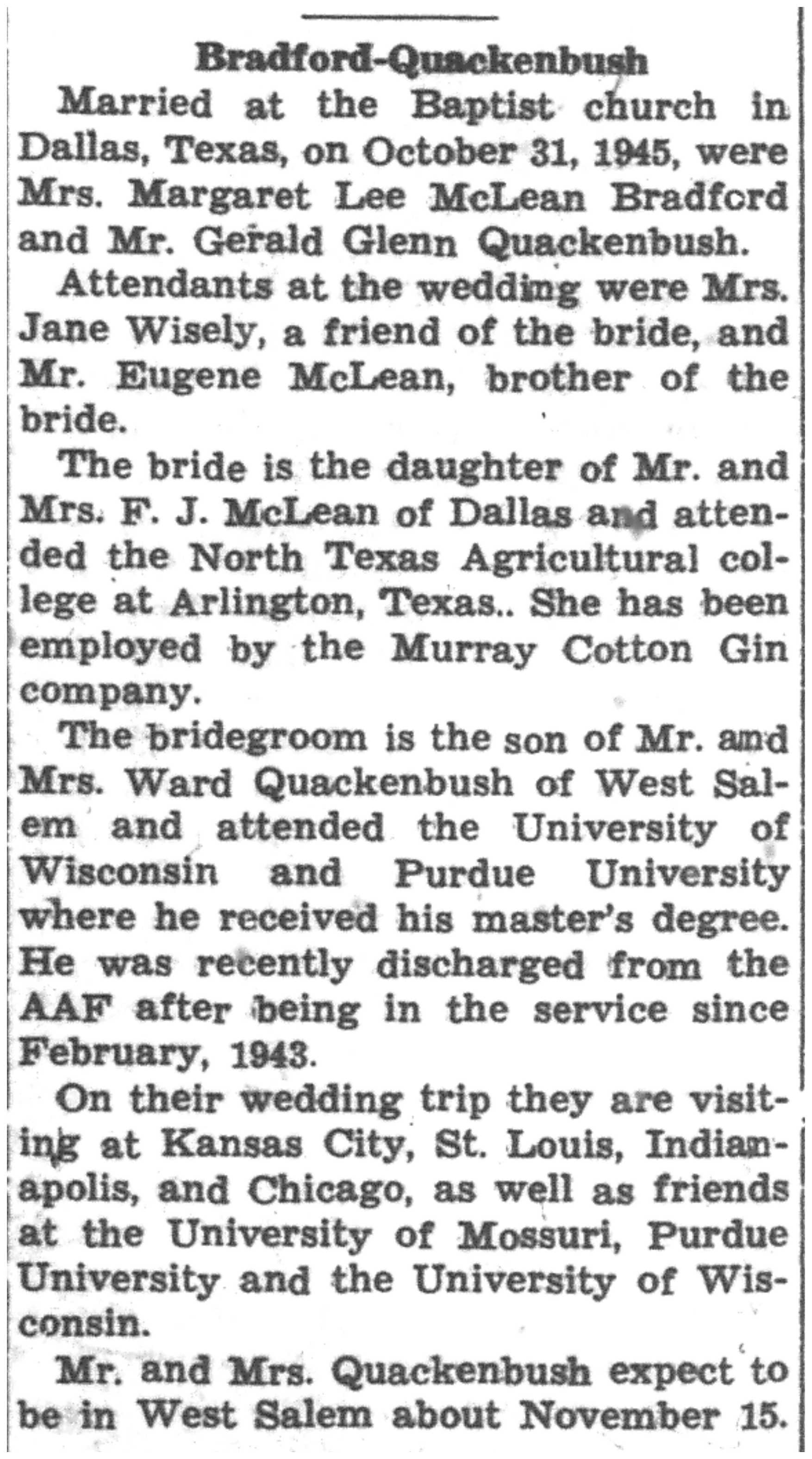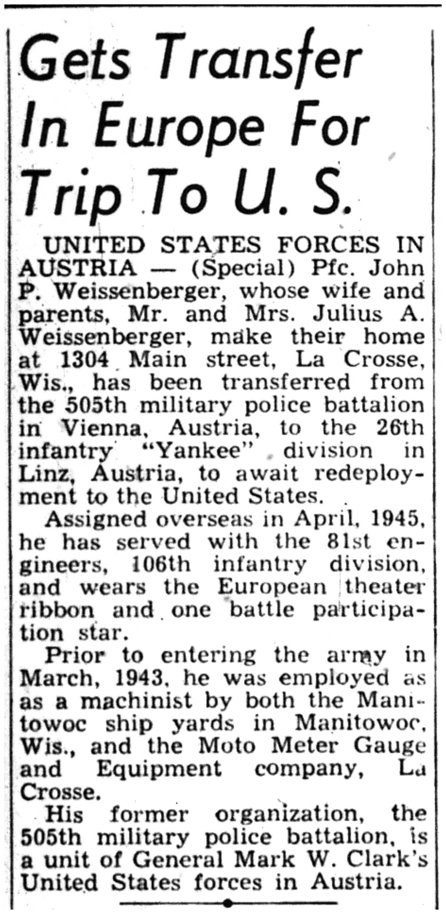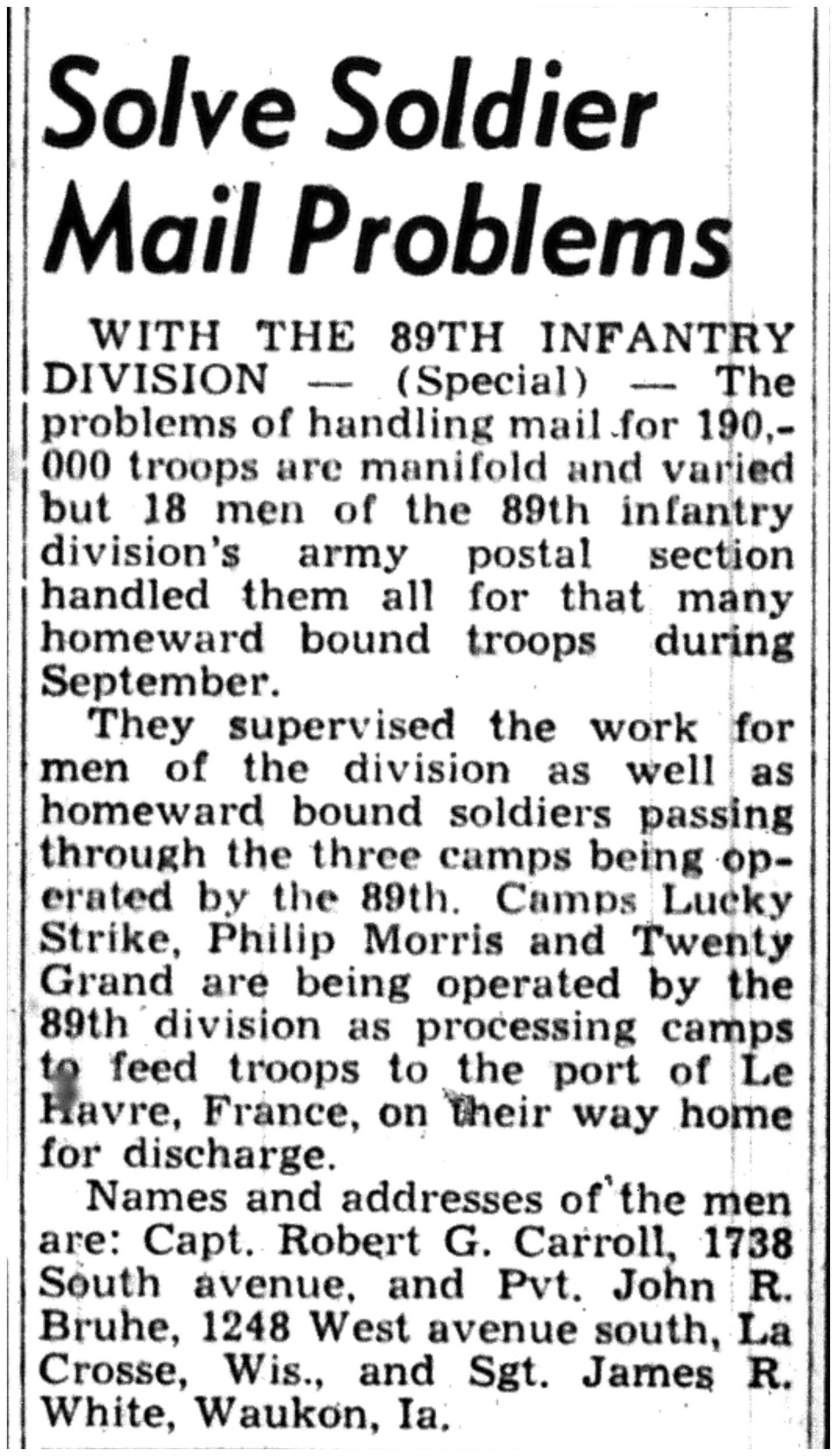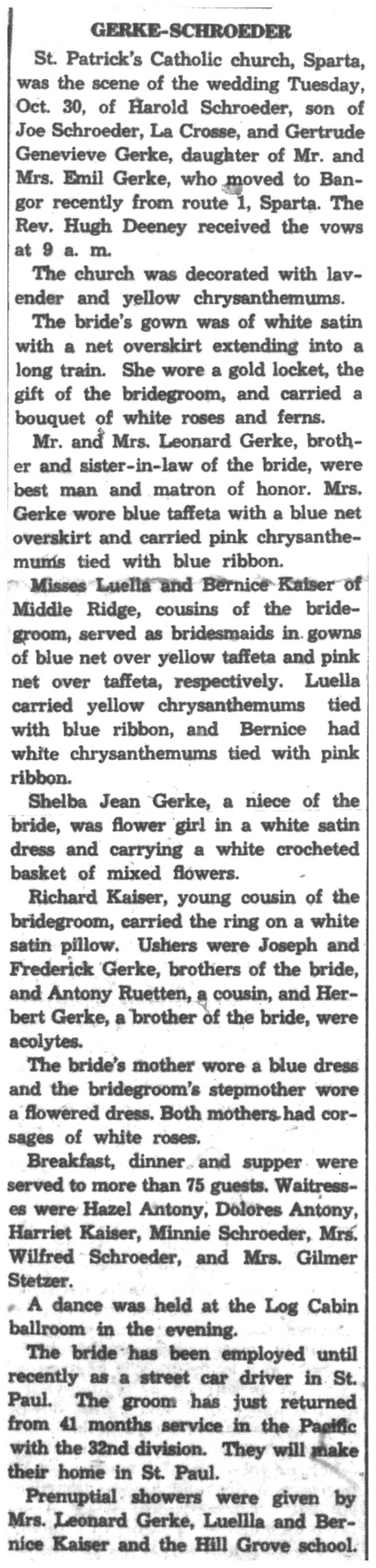 | 1945-11-1 | La Crosse Tribune p20 |