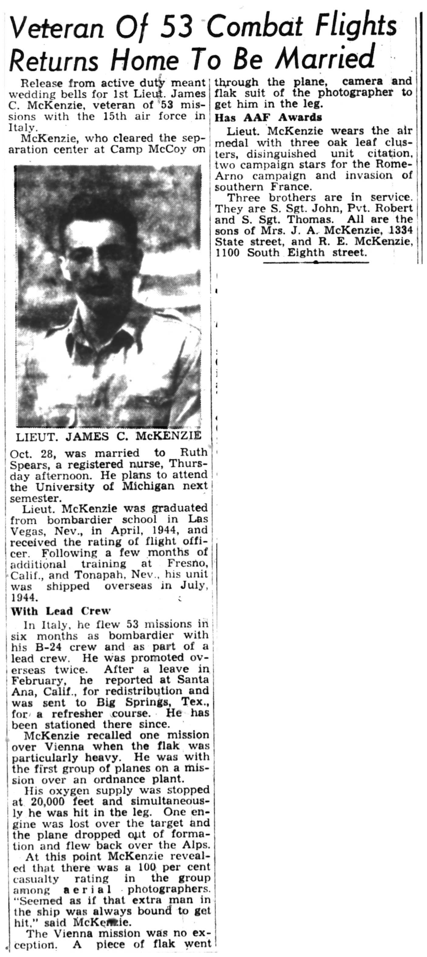 | 1945-11-15 | La Crosse Tribune p13 | |