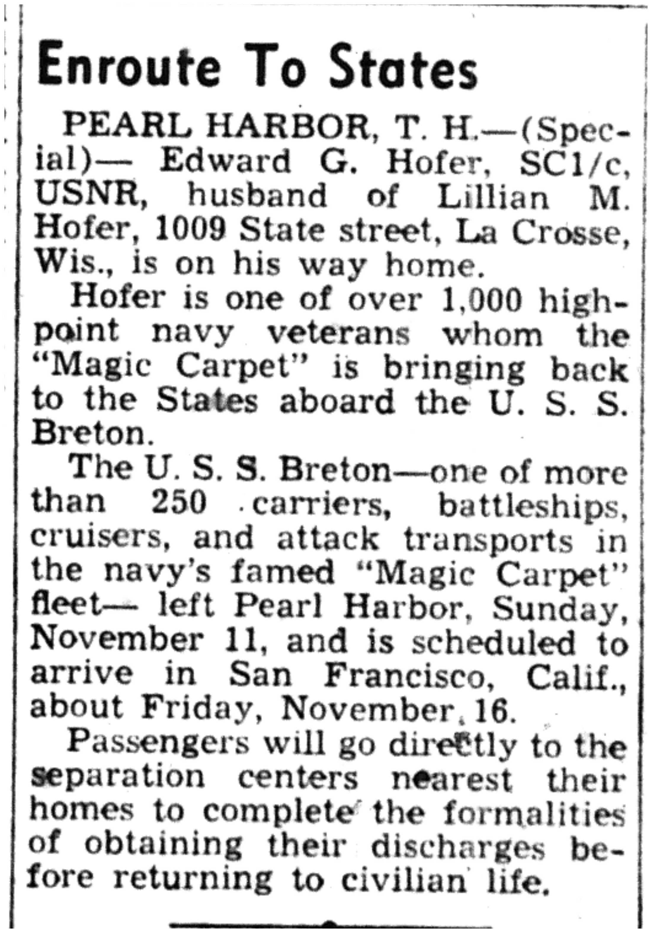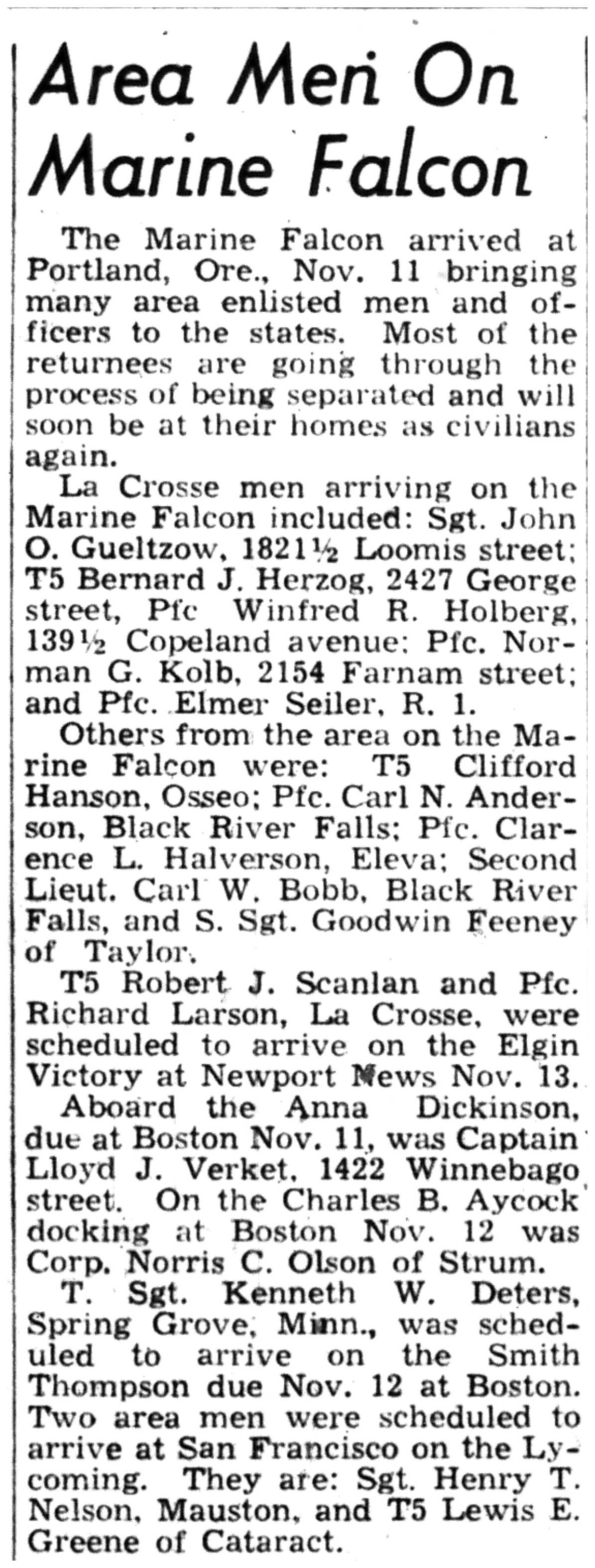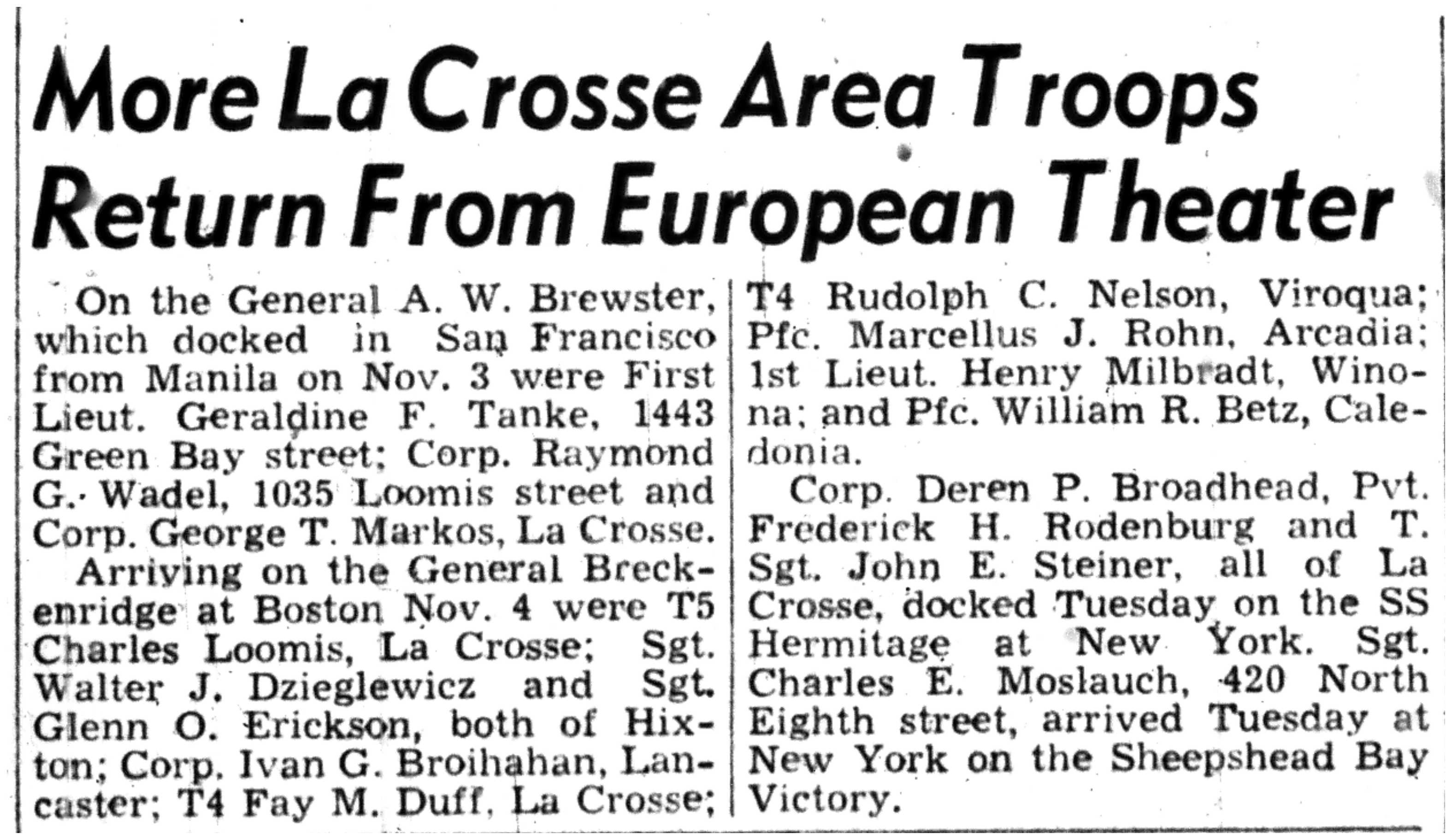 | 1945-11-27 | La Crosse Tribune p10 |