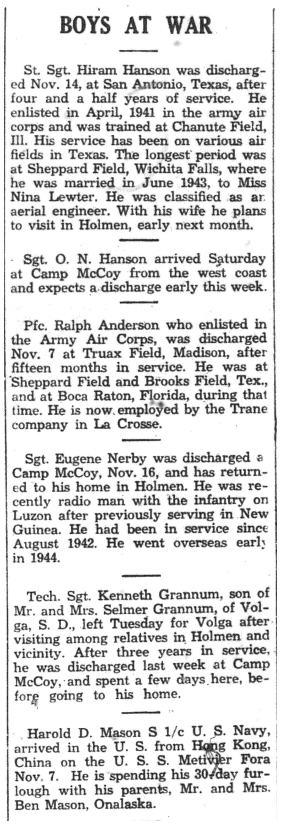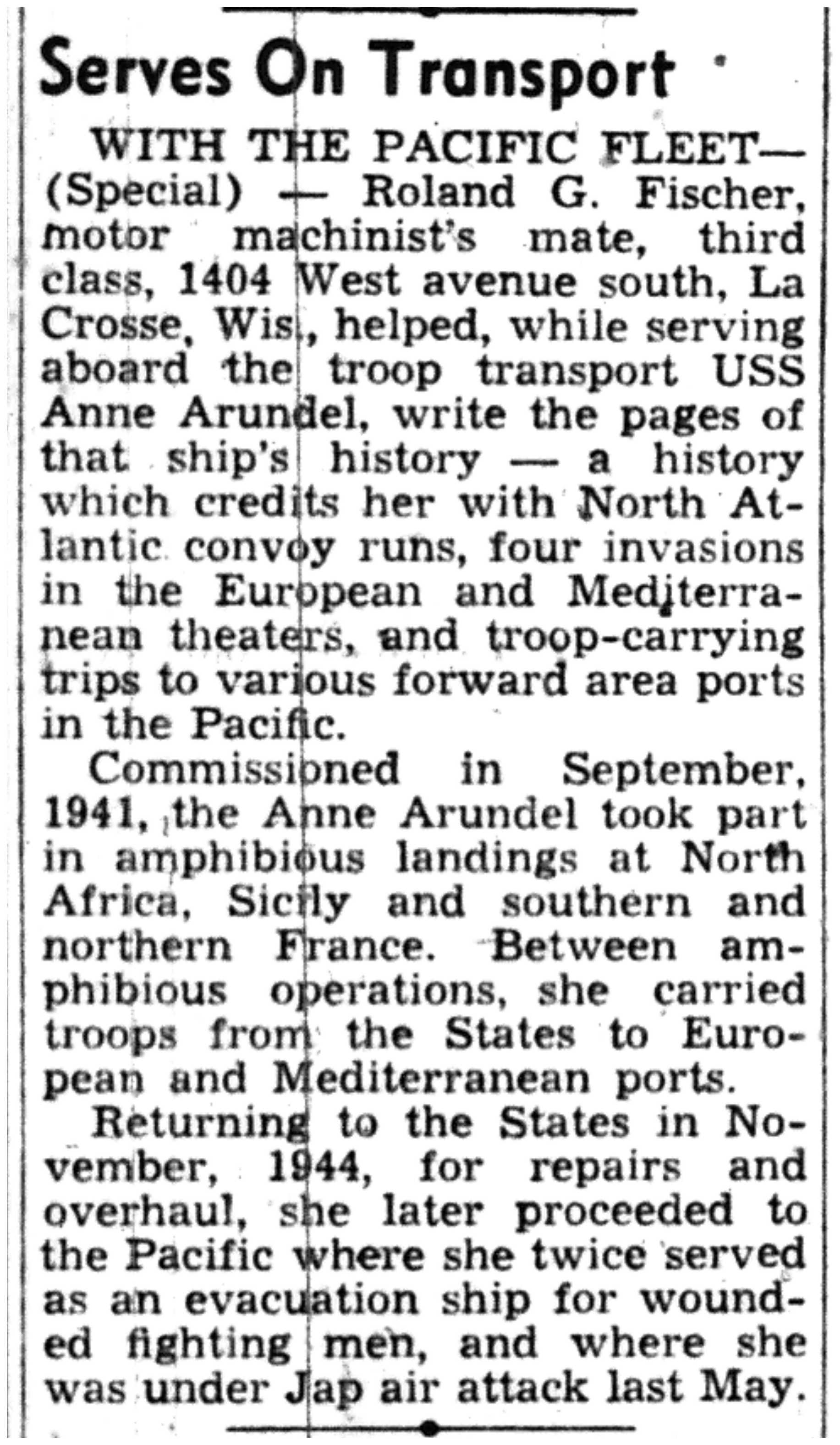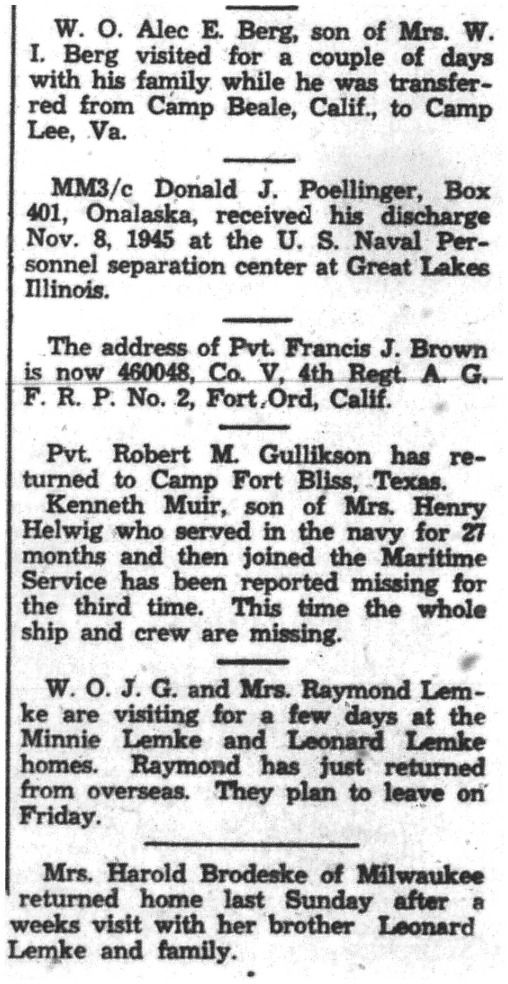 | 1945-11-27 | La Crosse Tribune p10 |