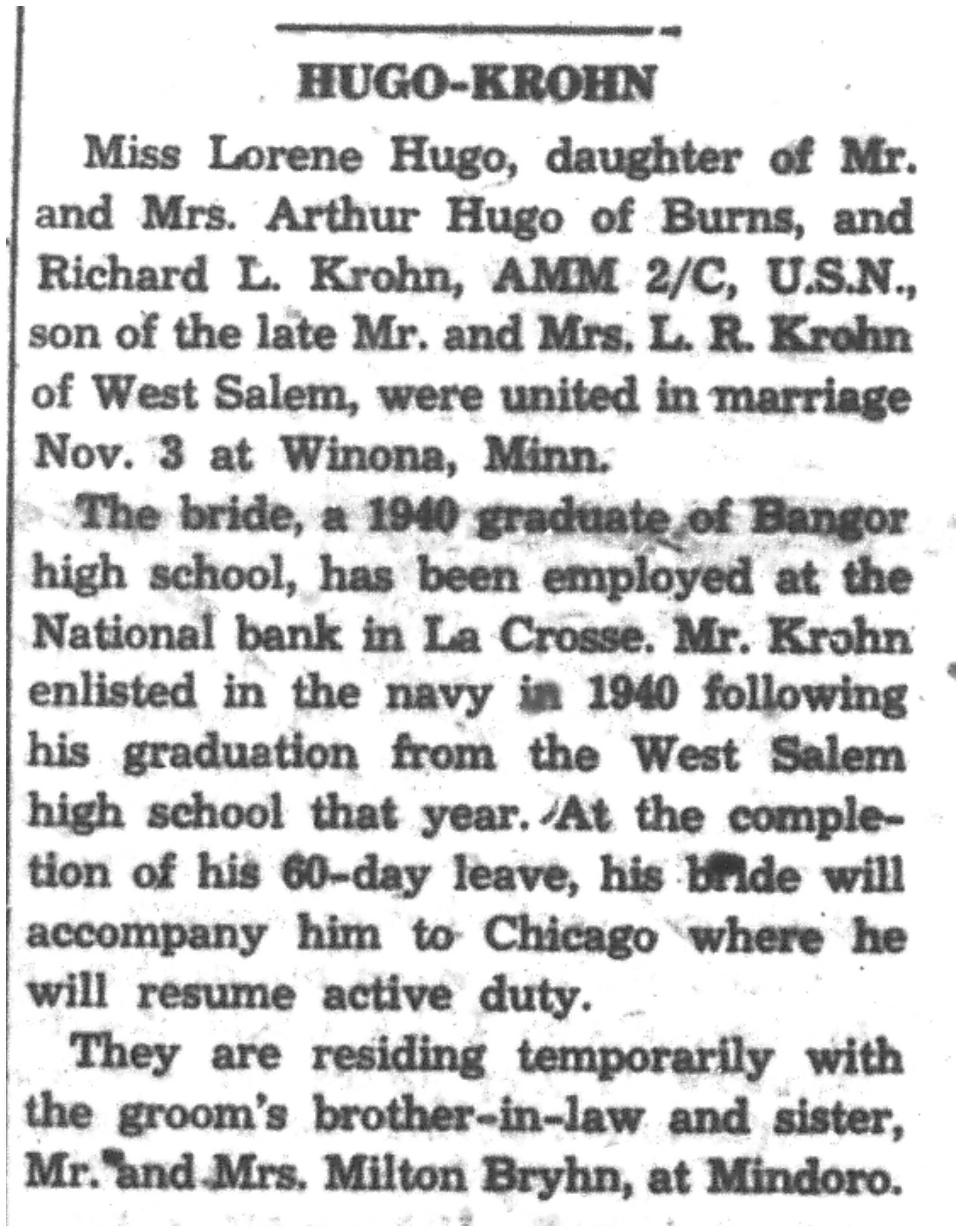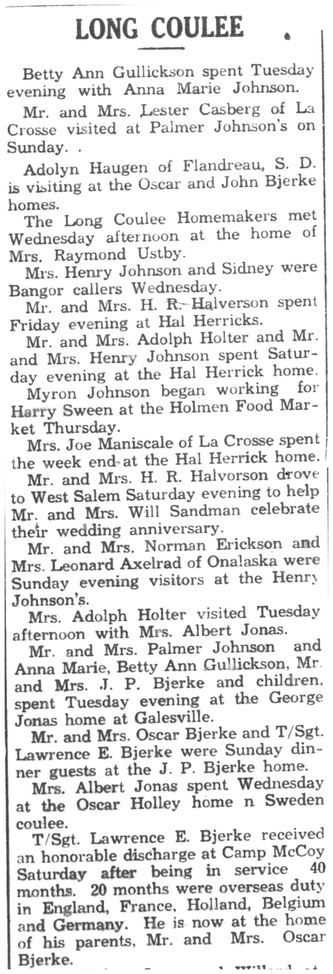 | 1945-11-15 | La Crosse County Record p5 | |