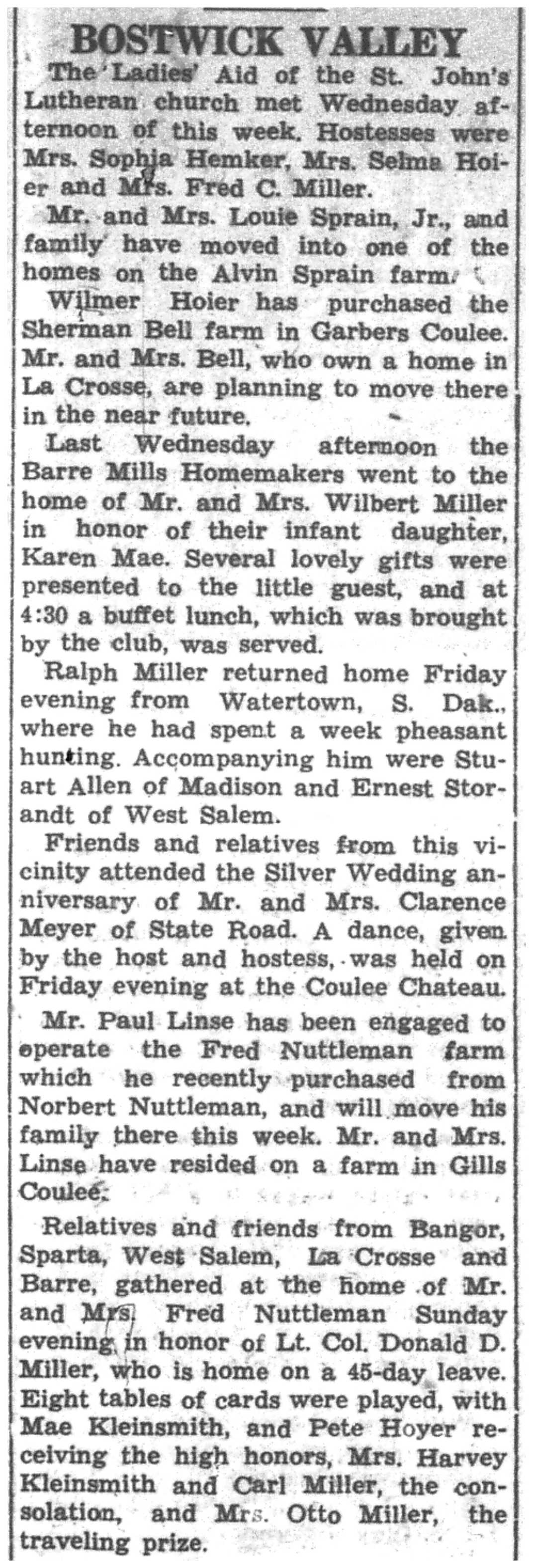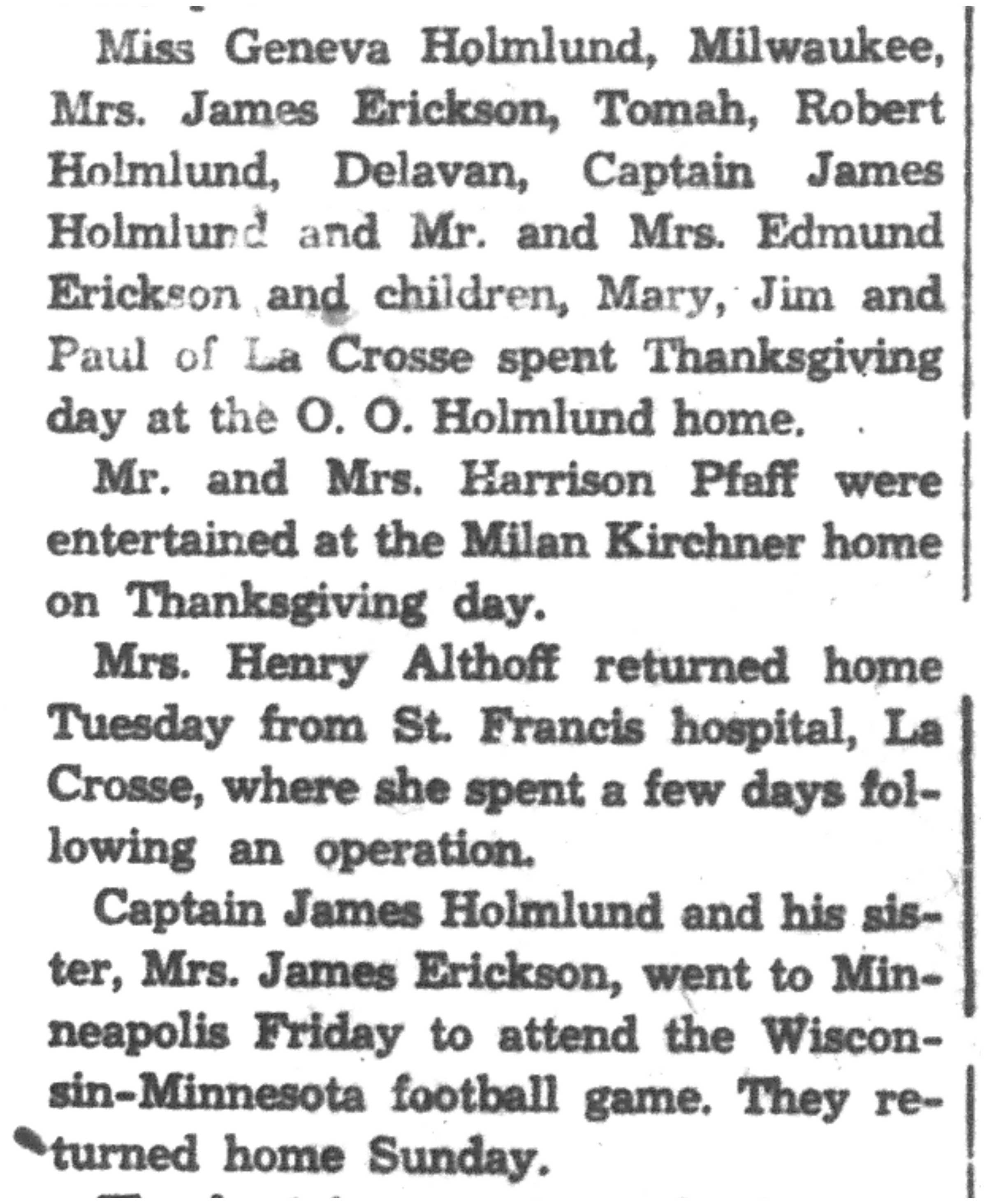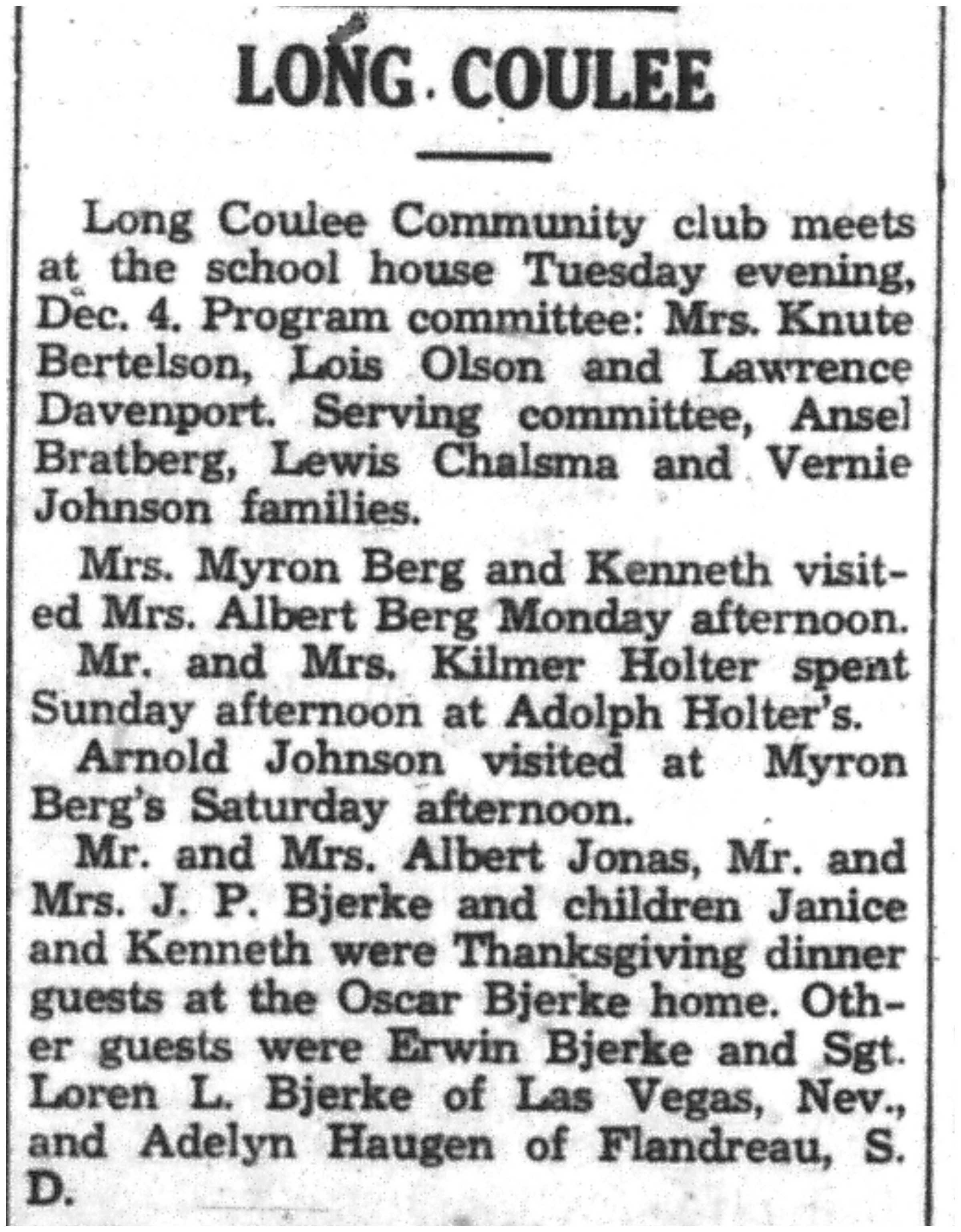 | 1945-11-29 | La Crosse County Record p8 | |
