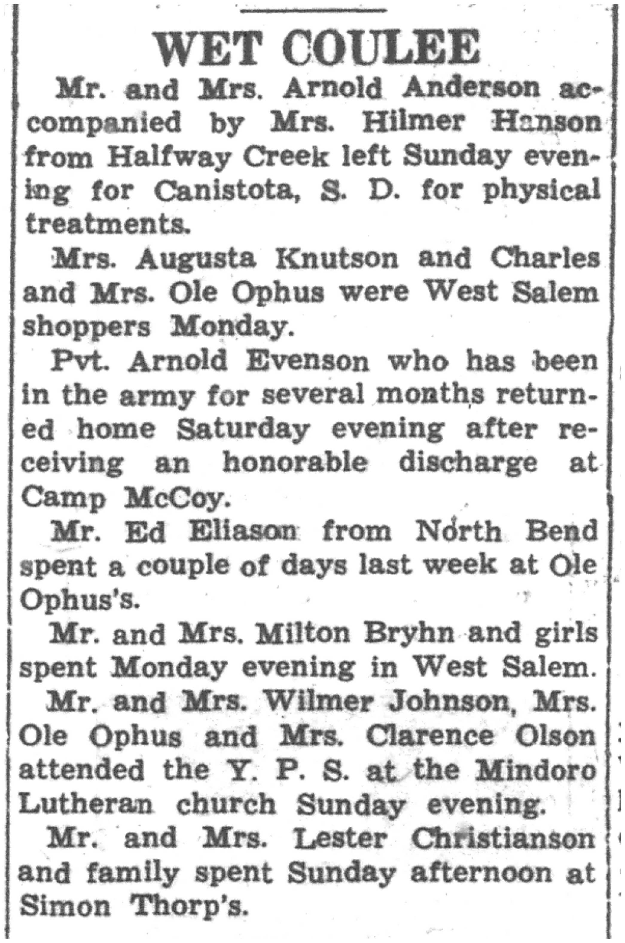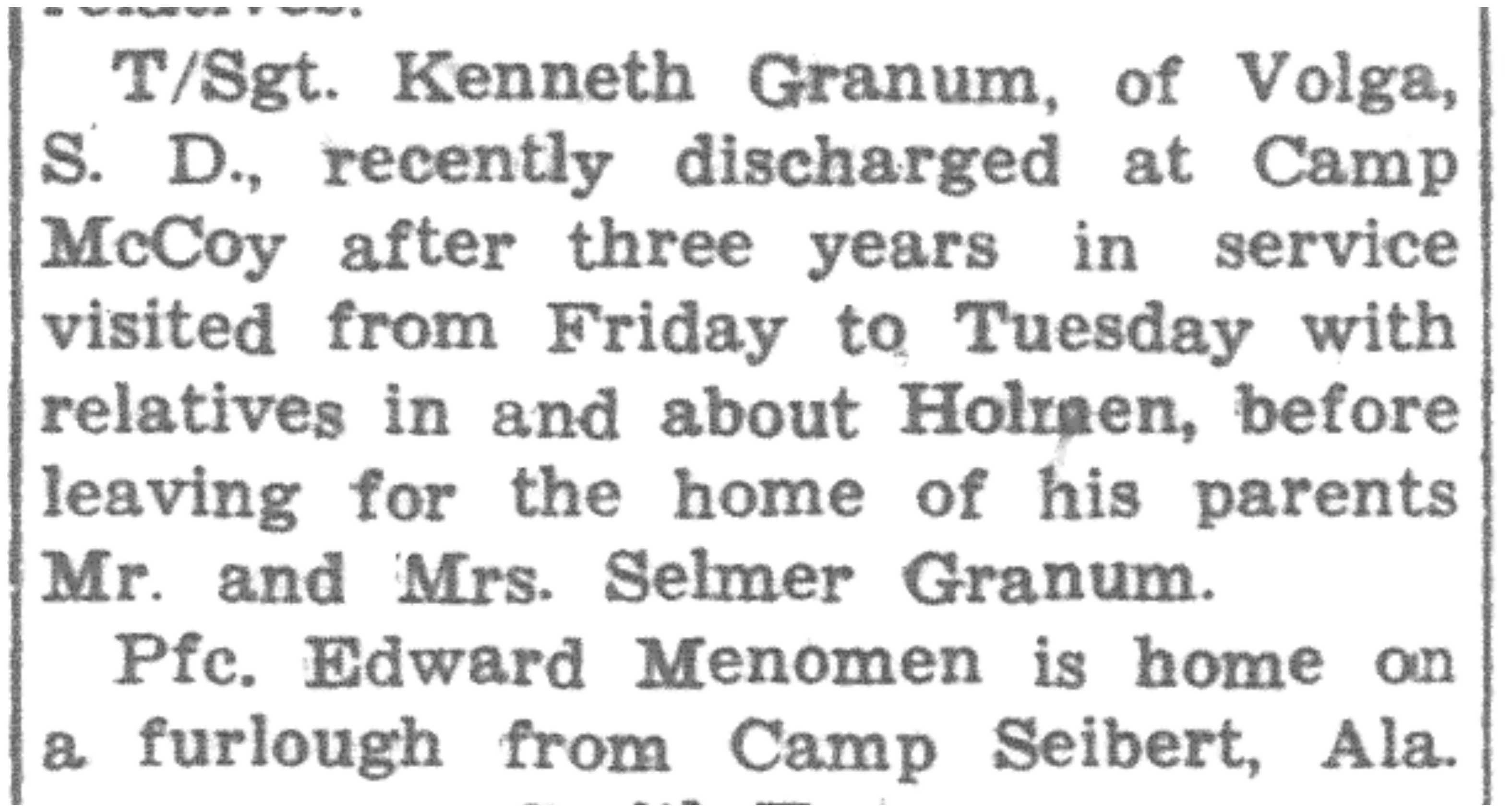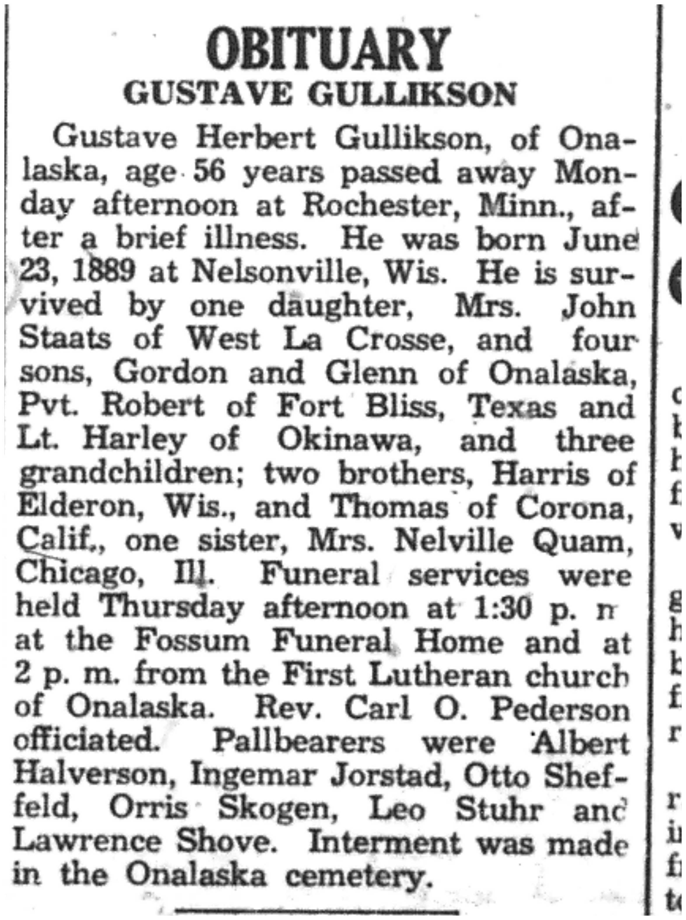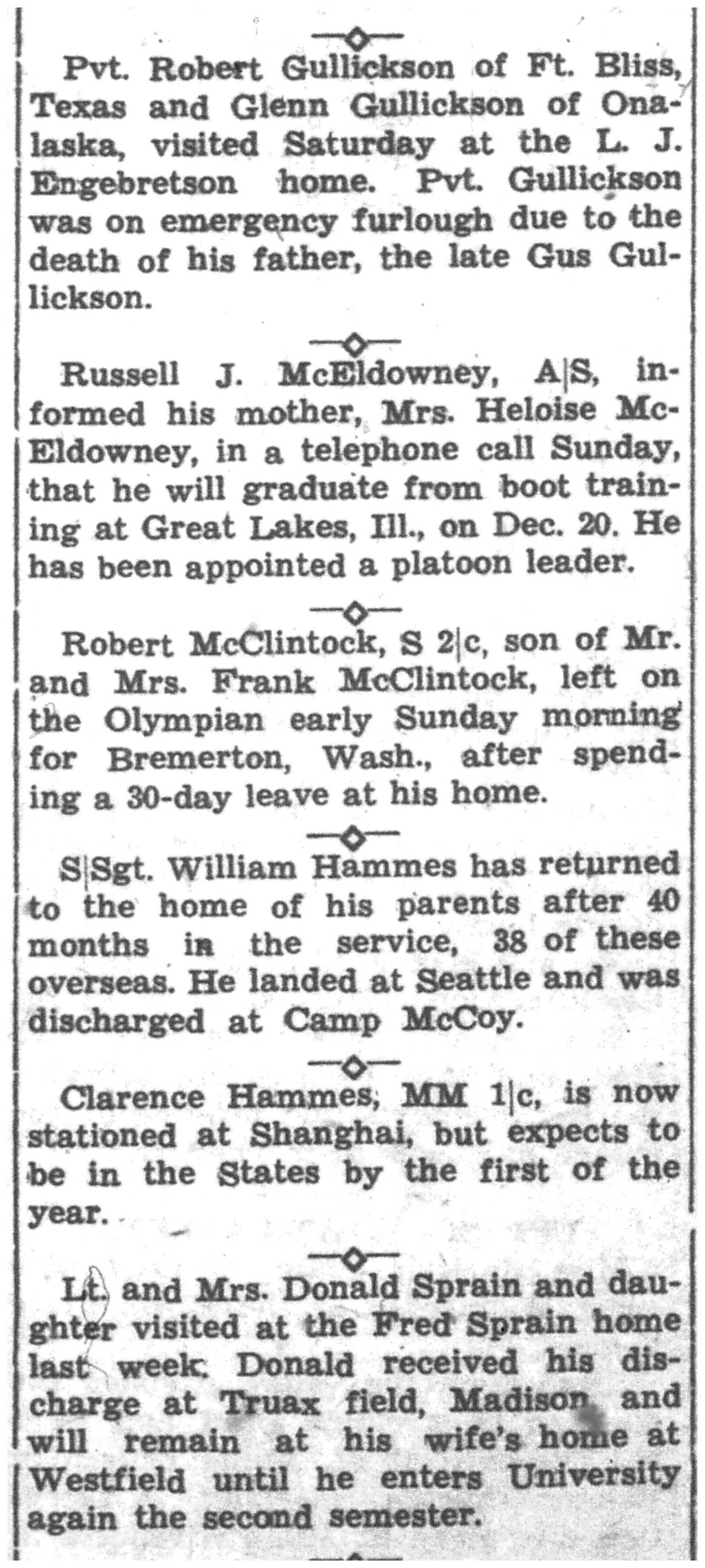 | 1945-11-29 | La Crosse County Record p8 | |
