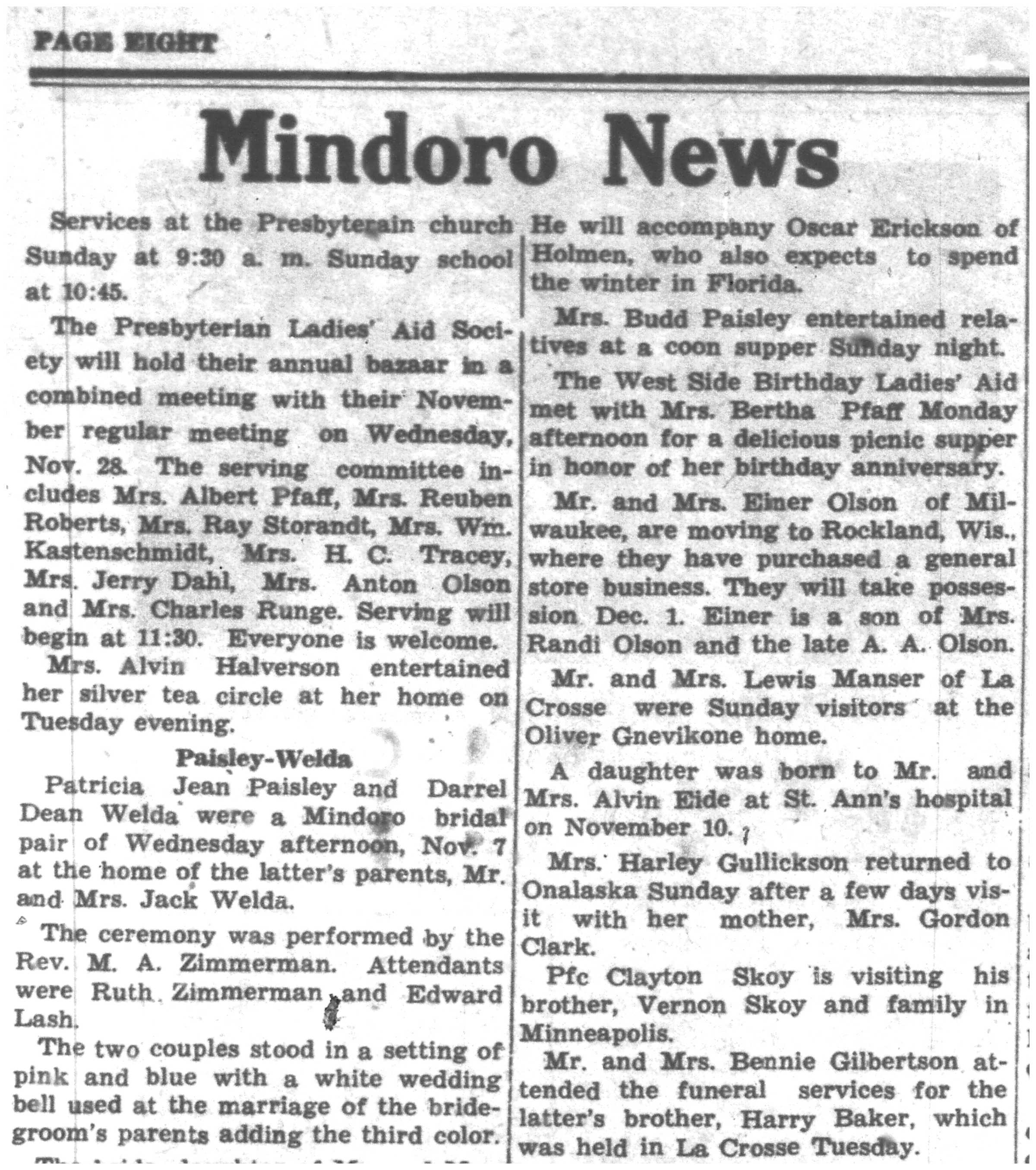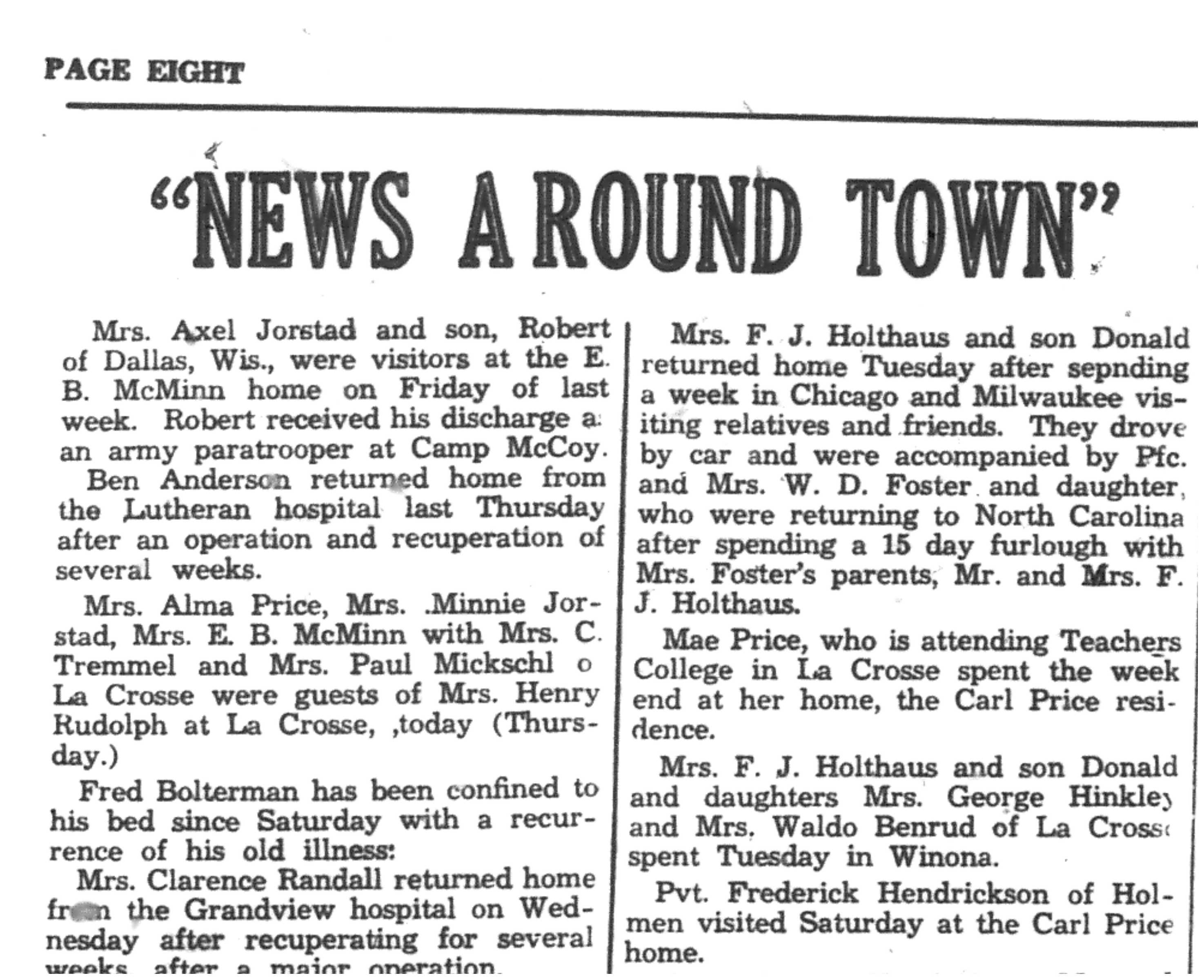 | 1945-11-8 | La Crosse County Record p8 | |