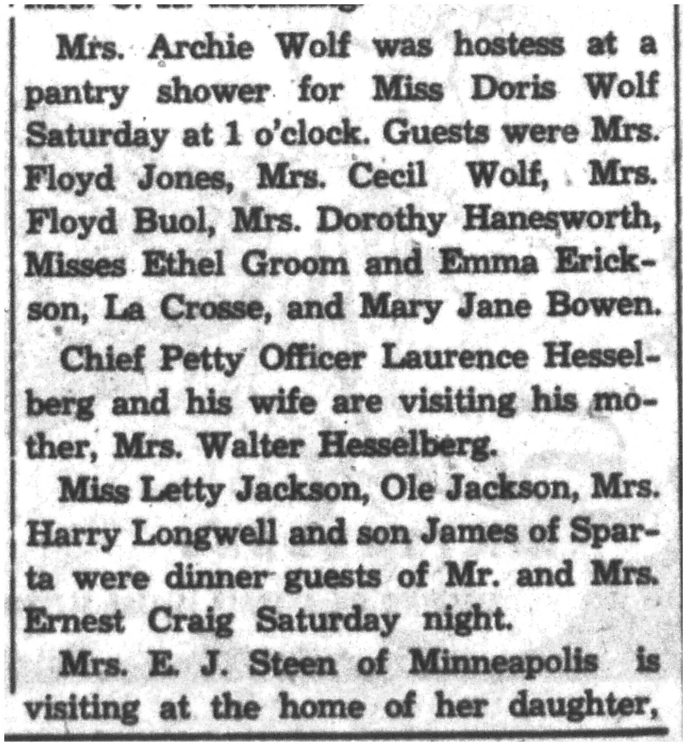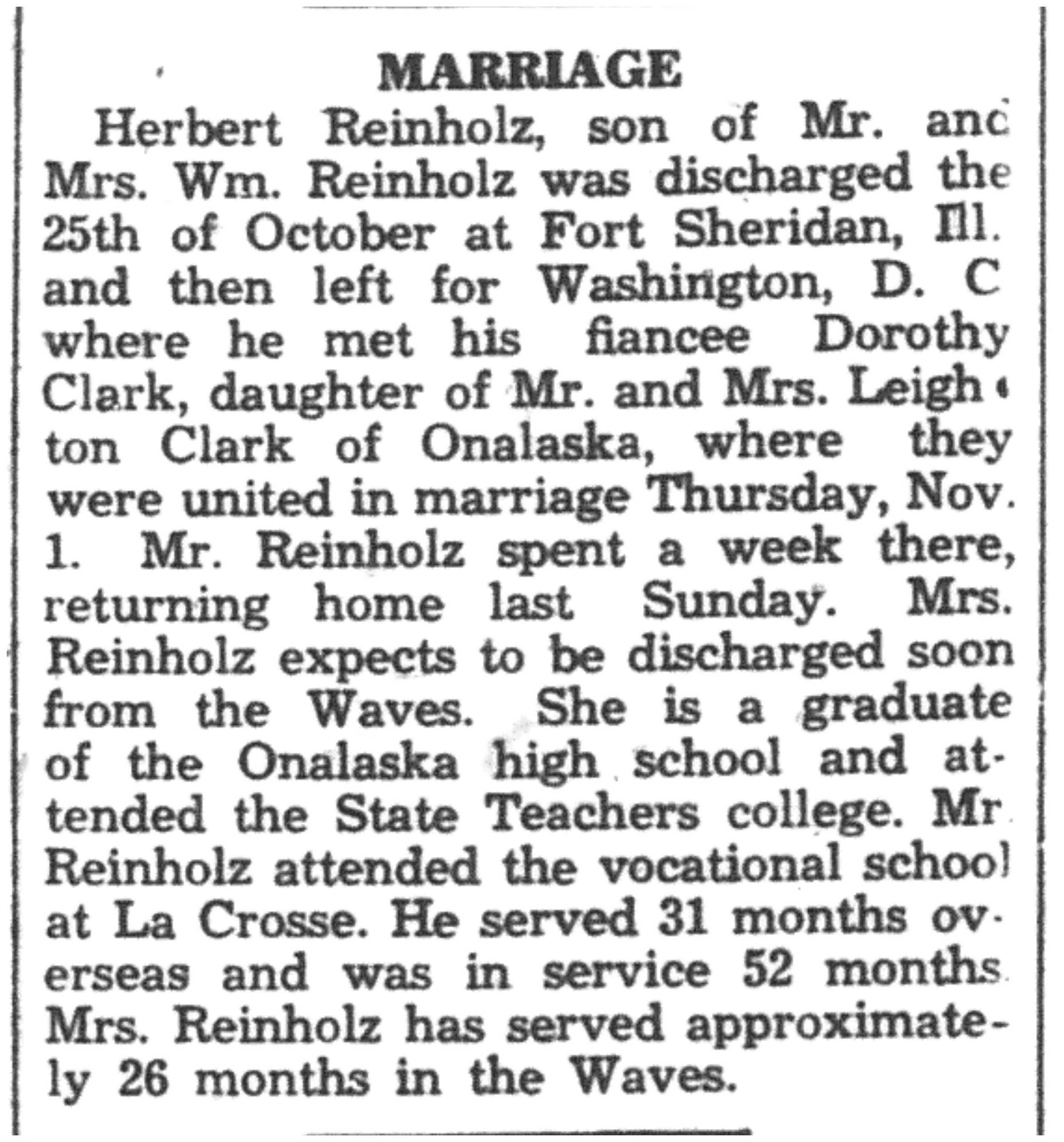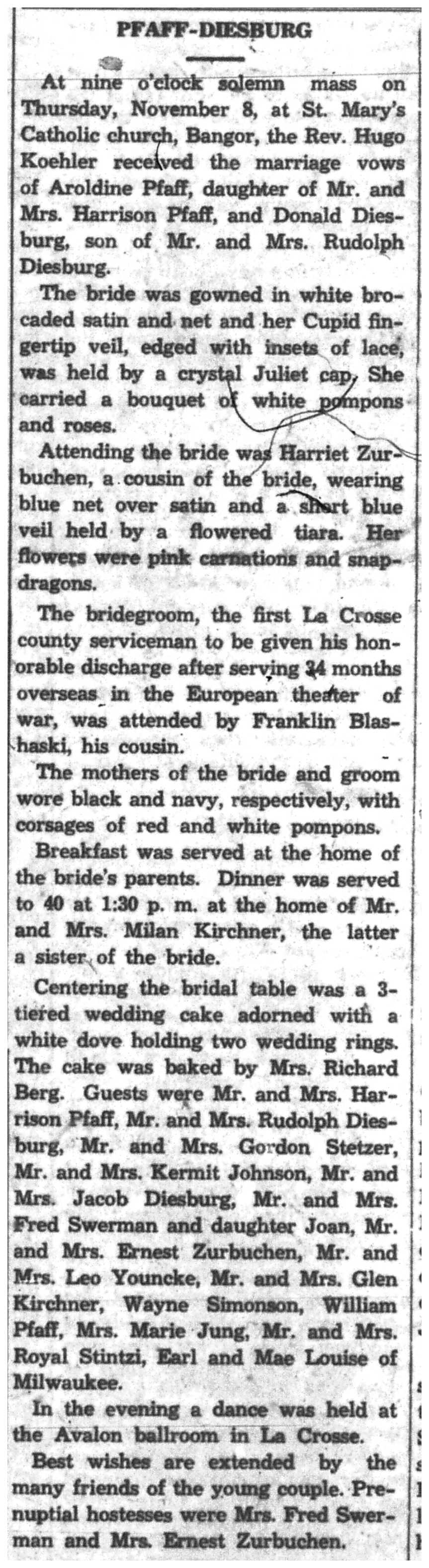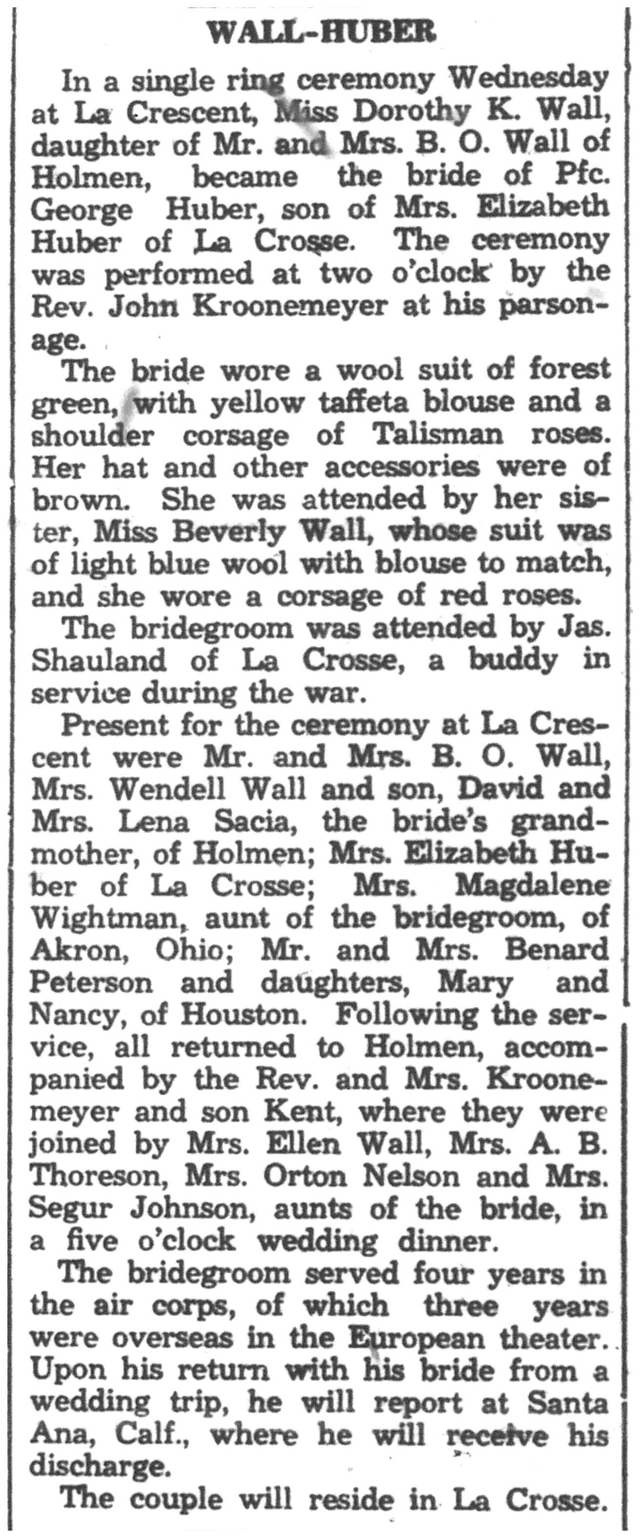 | 1945-11-15 | La Crosse County Record p8 | |